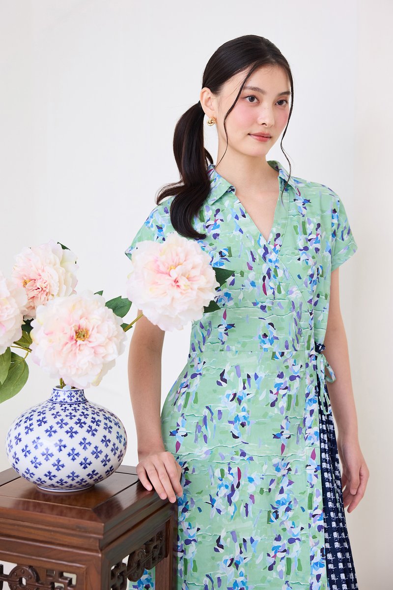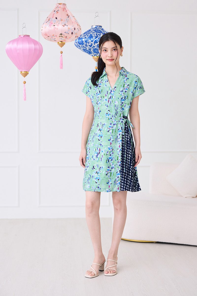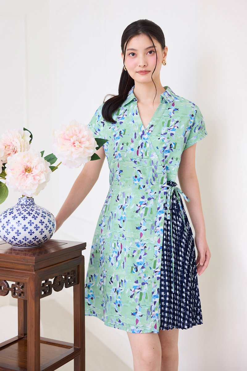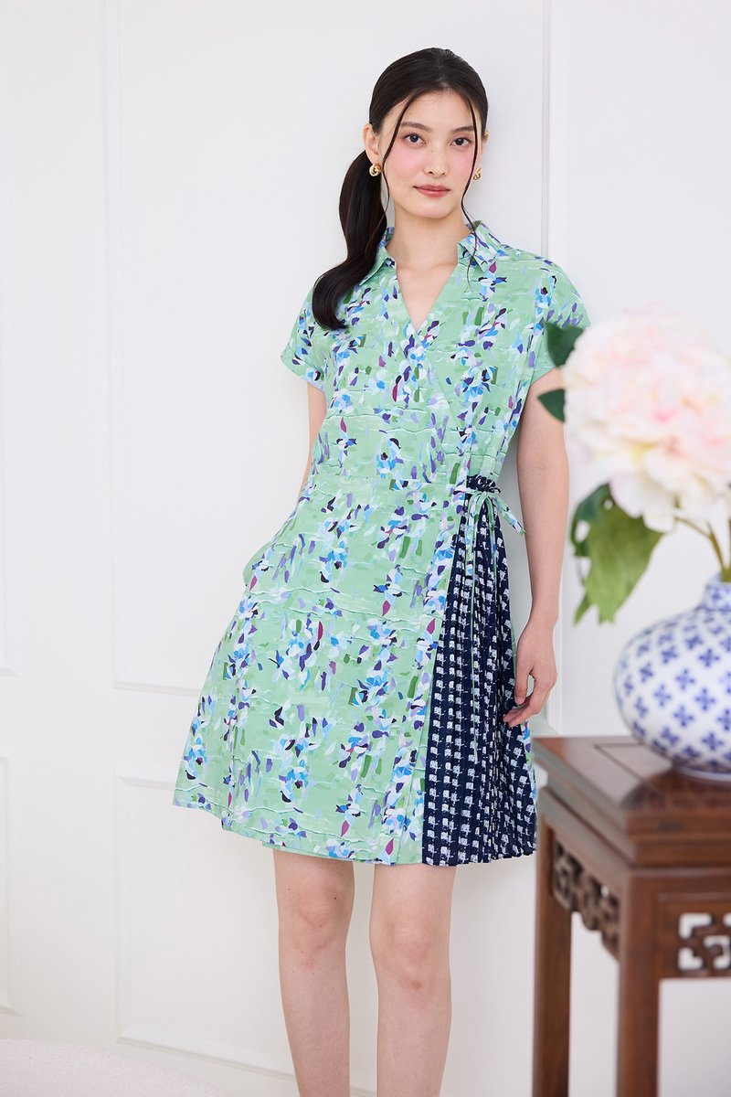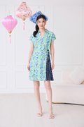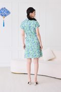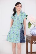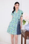 Alessia Dress In Green Blue Prints