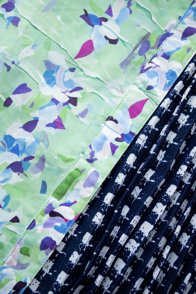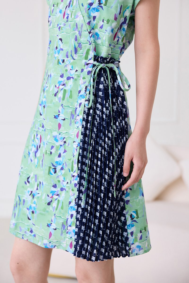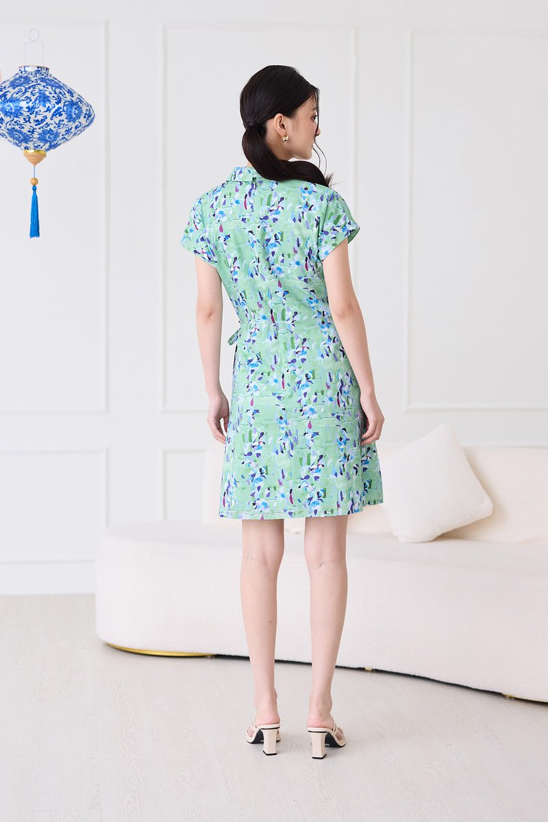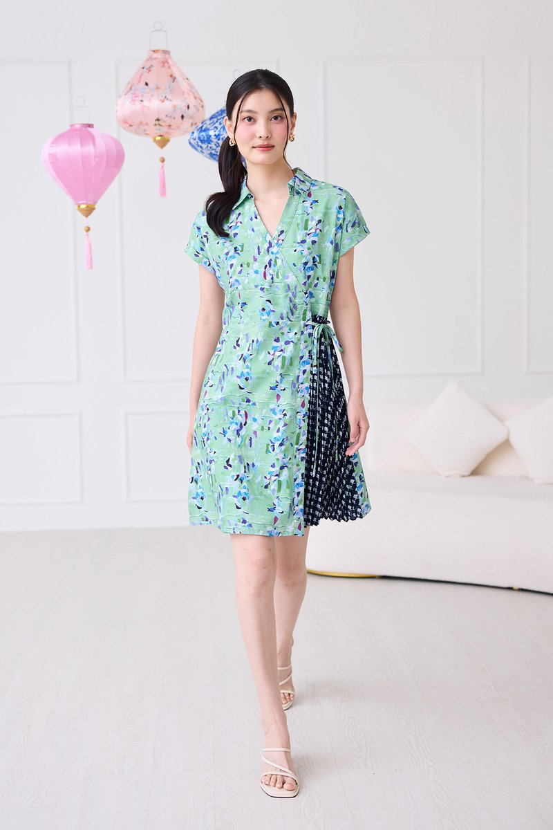 Alessia Dress In Green Blue Prints