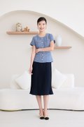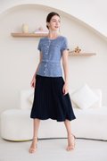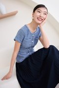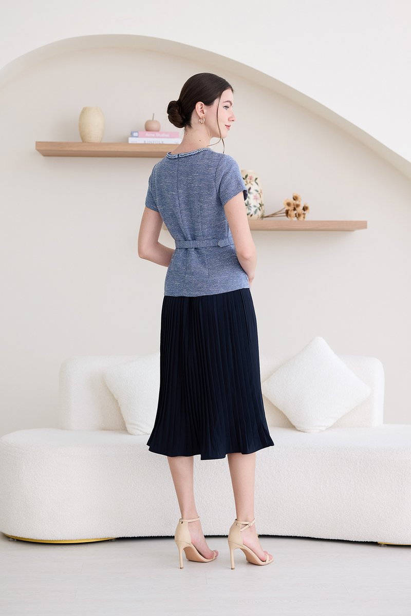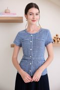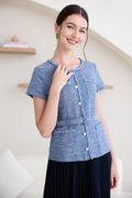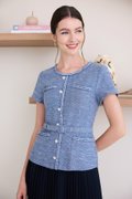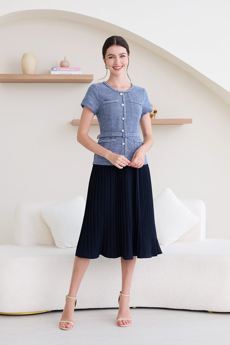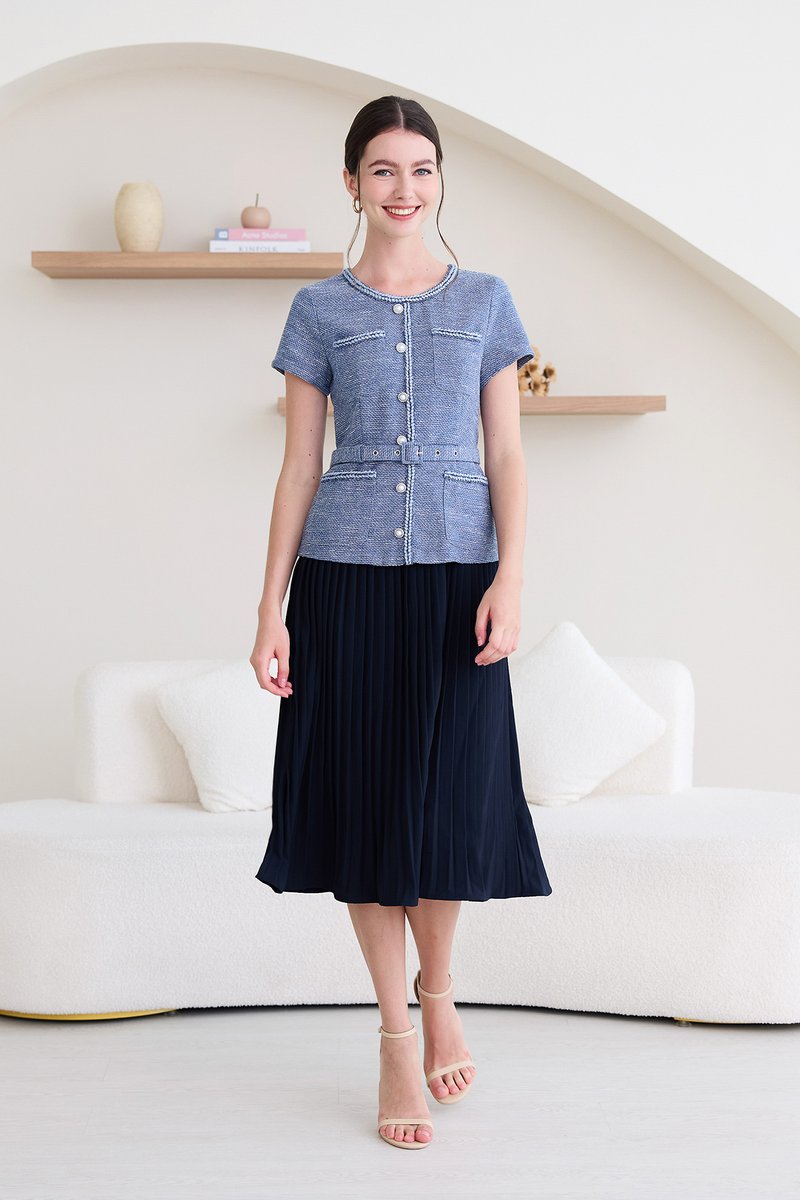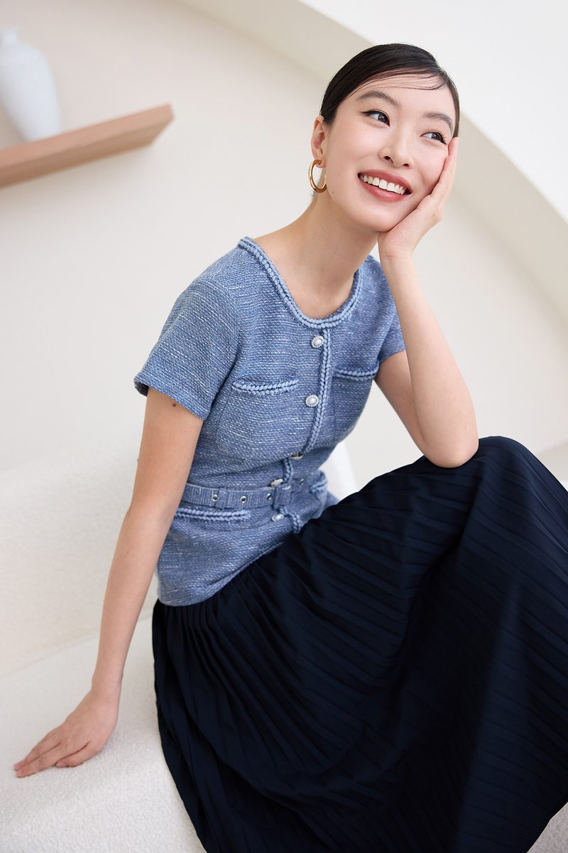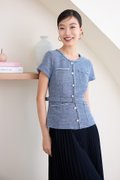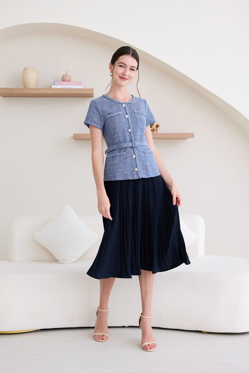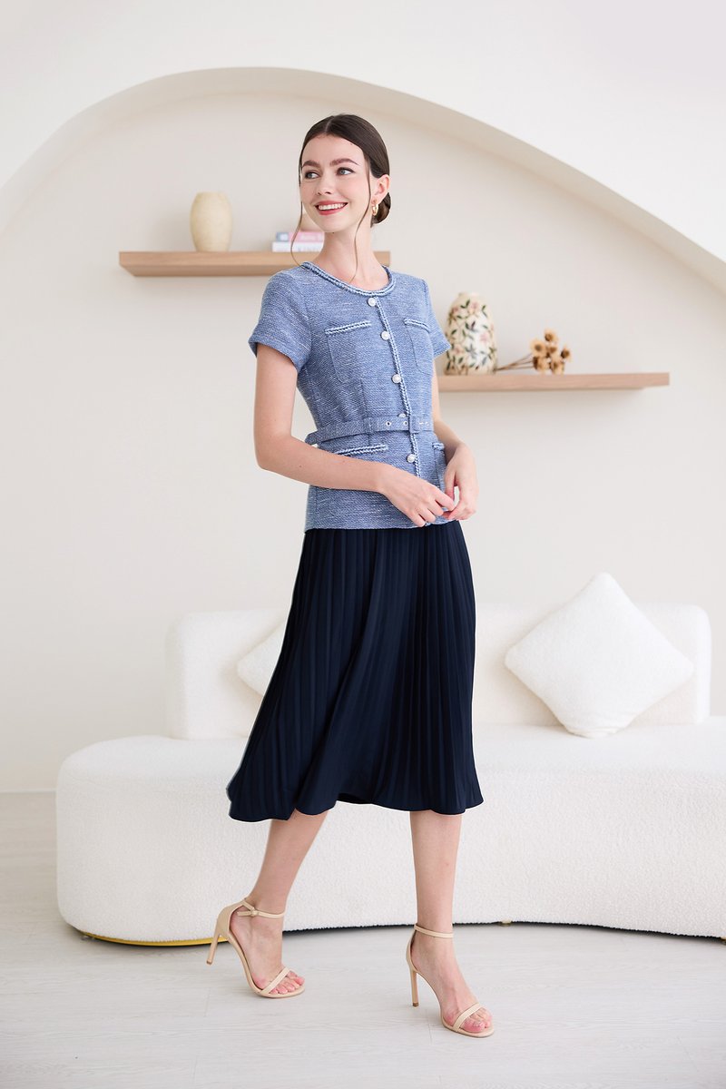top: tweed material, non-stretchable