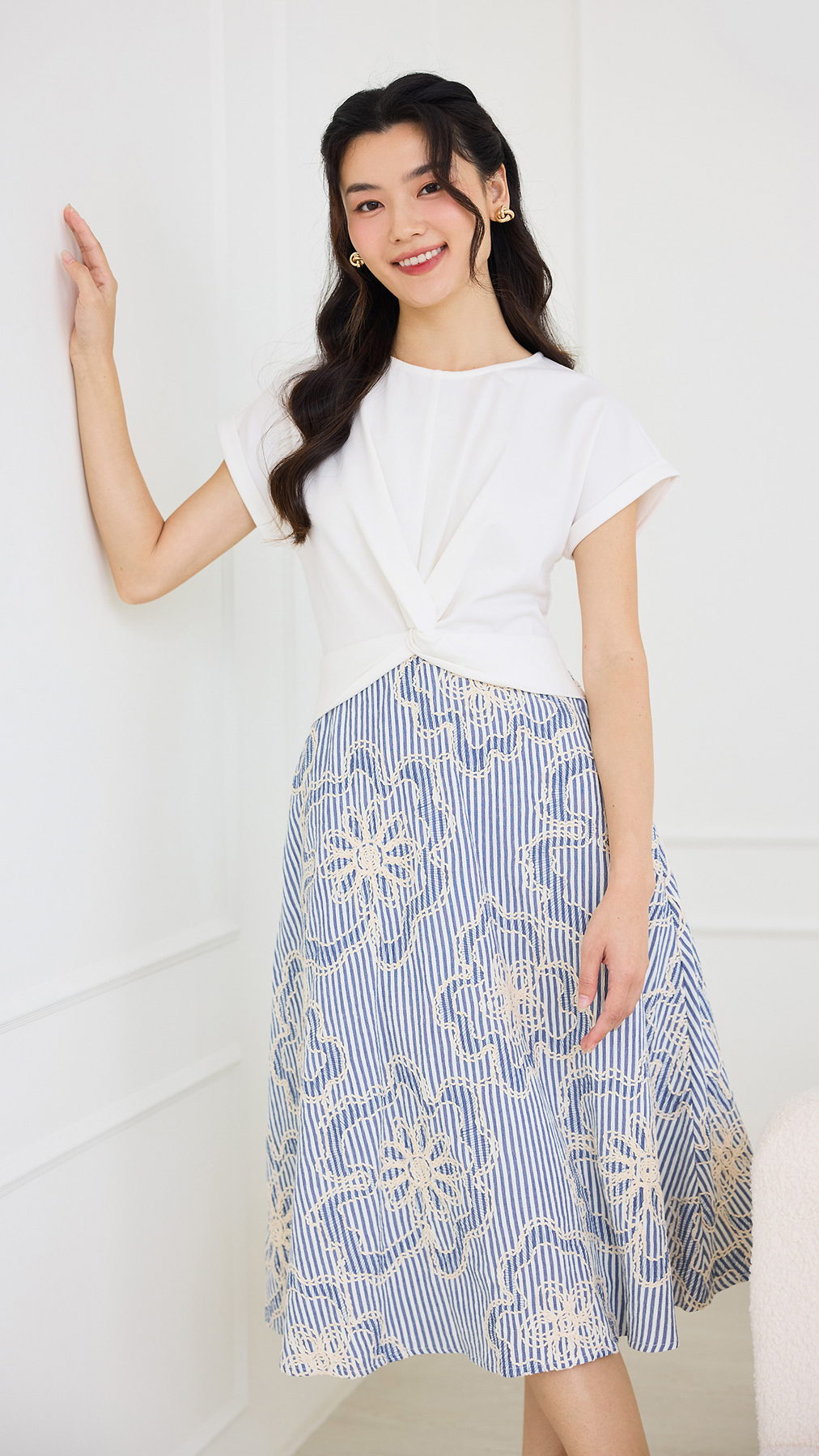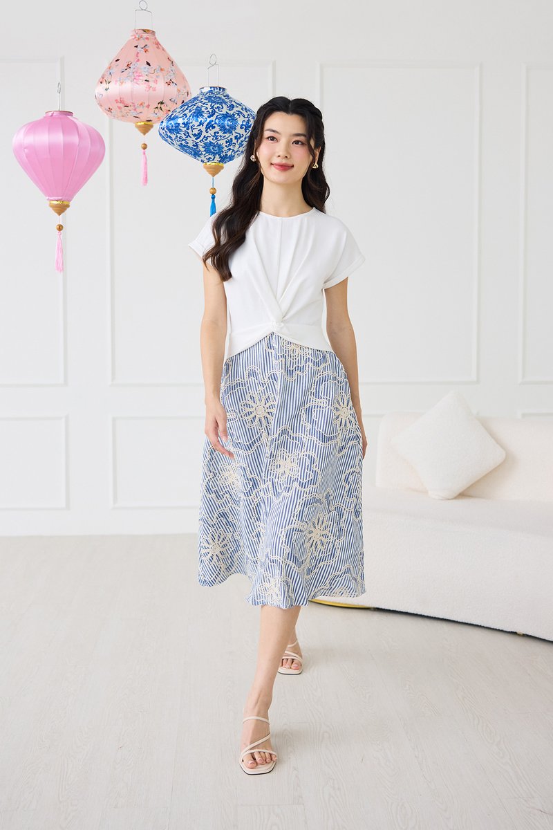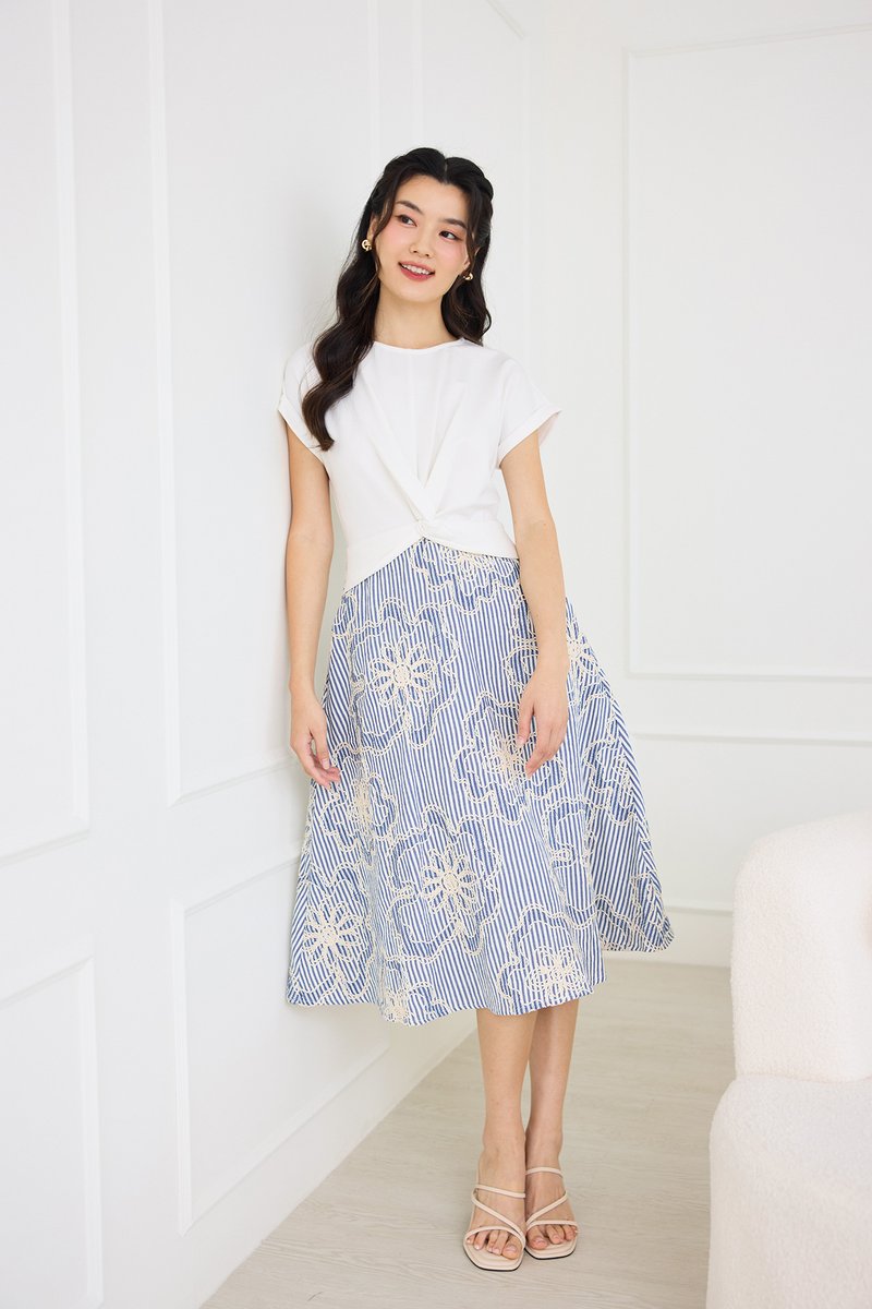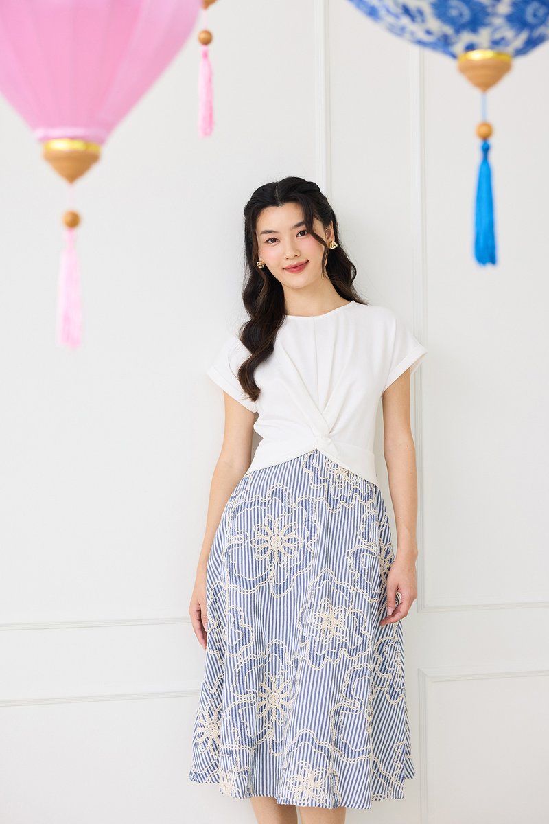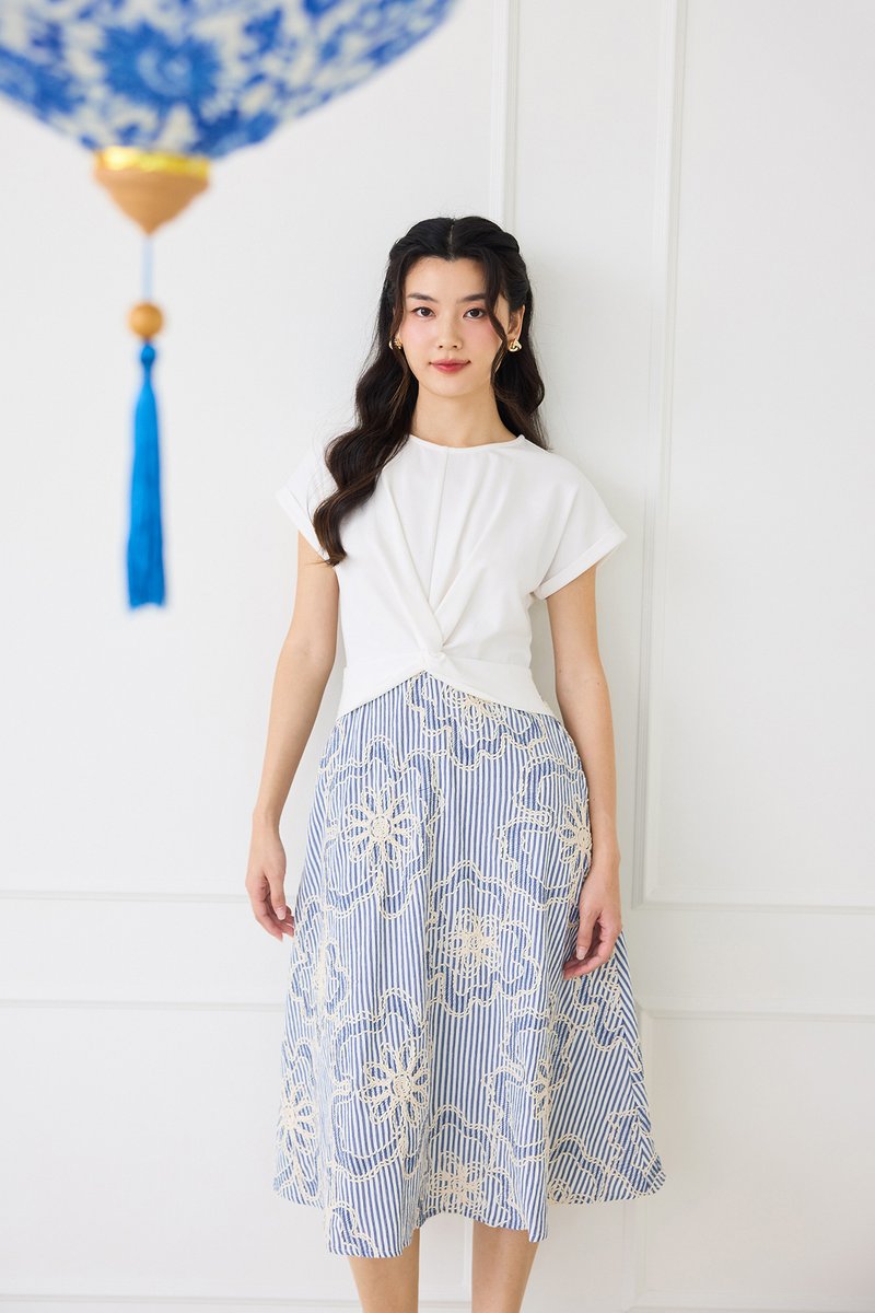 bottom: embroidered textured polyester cotton material, non-stretchable