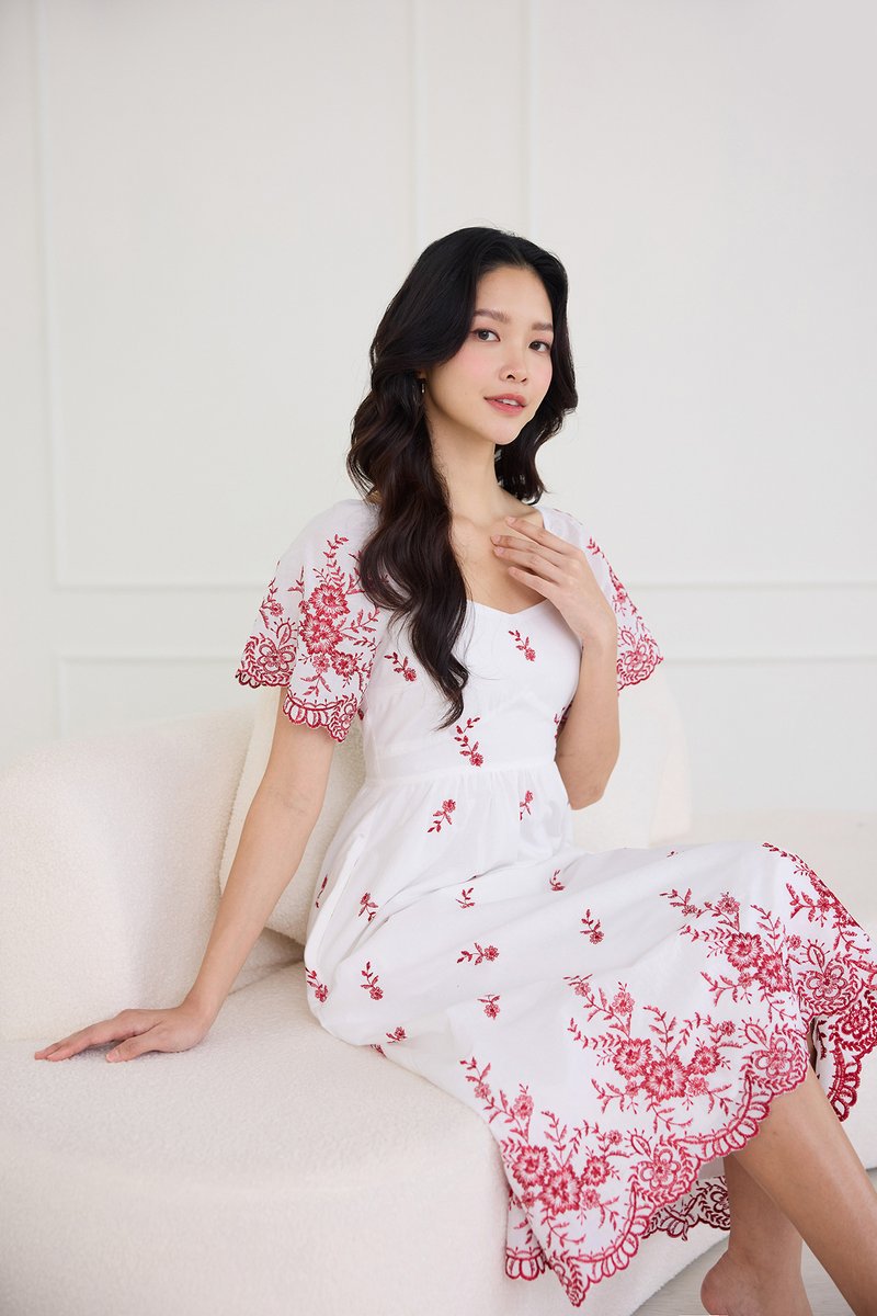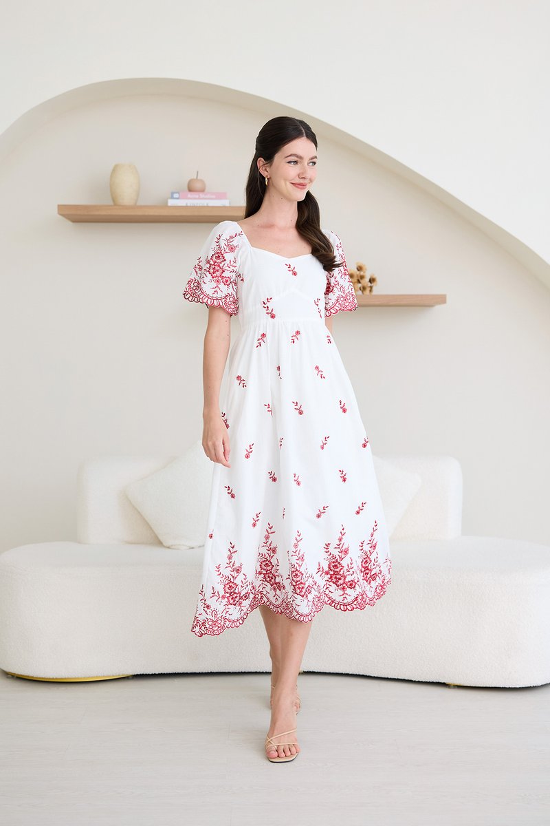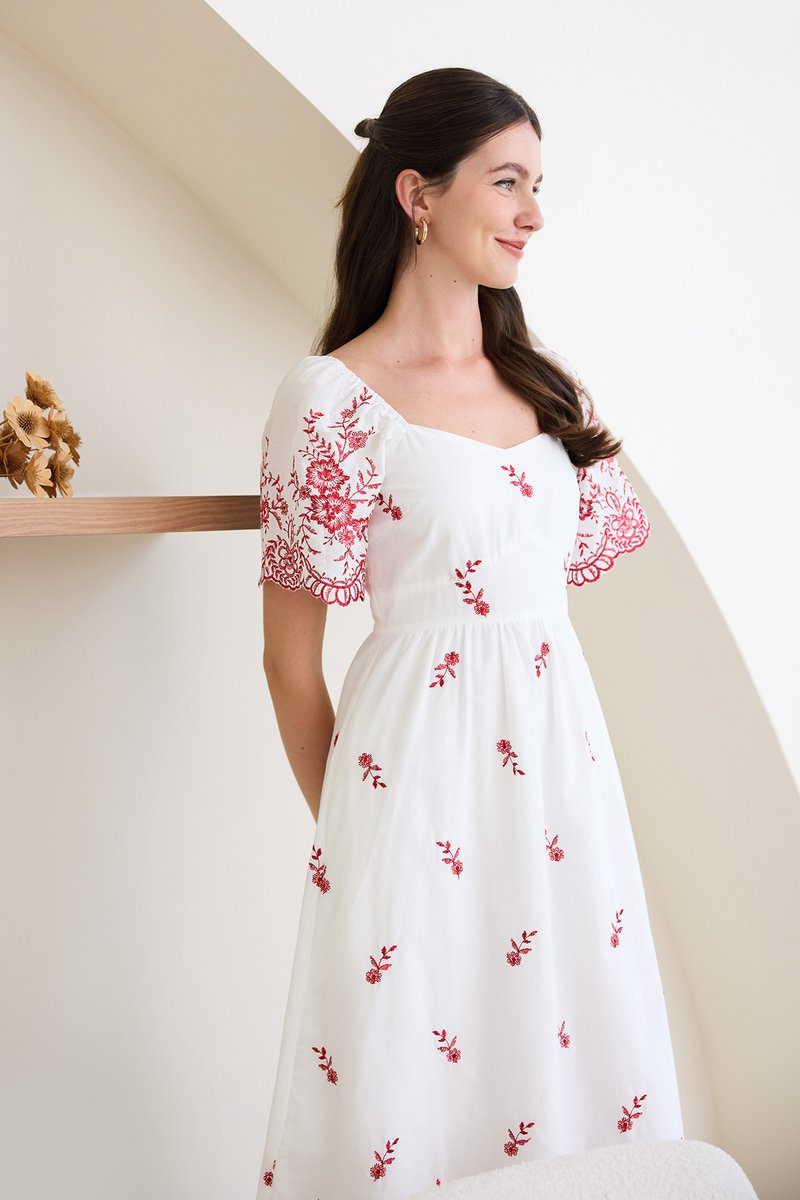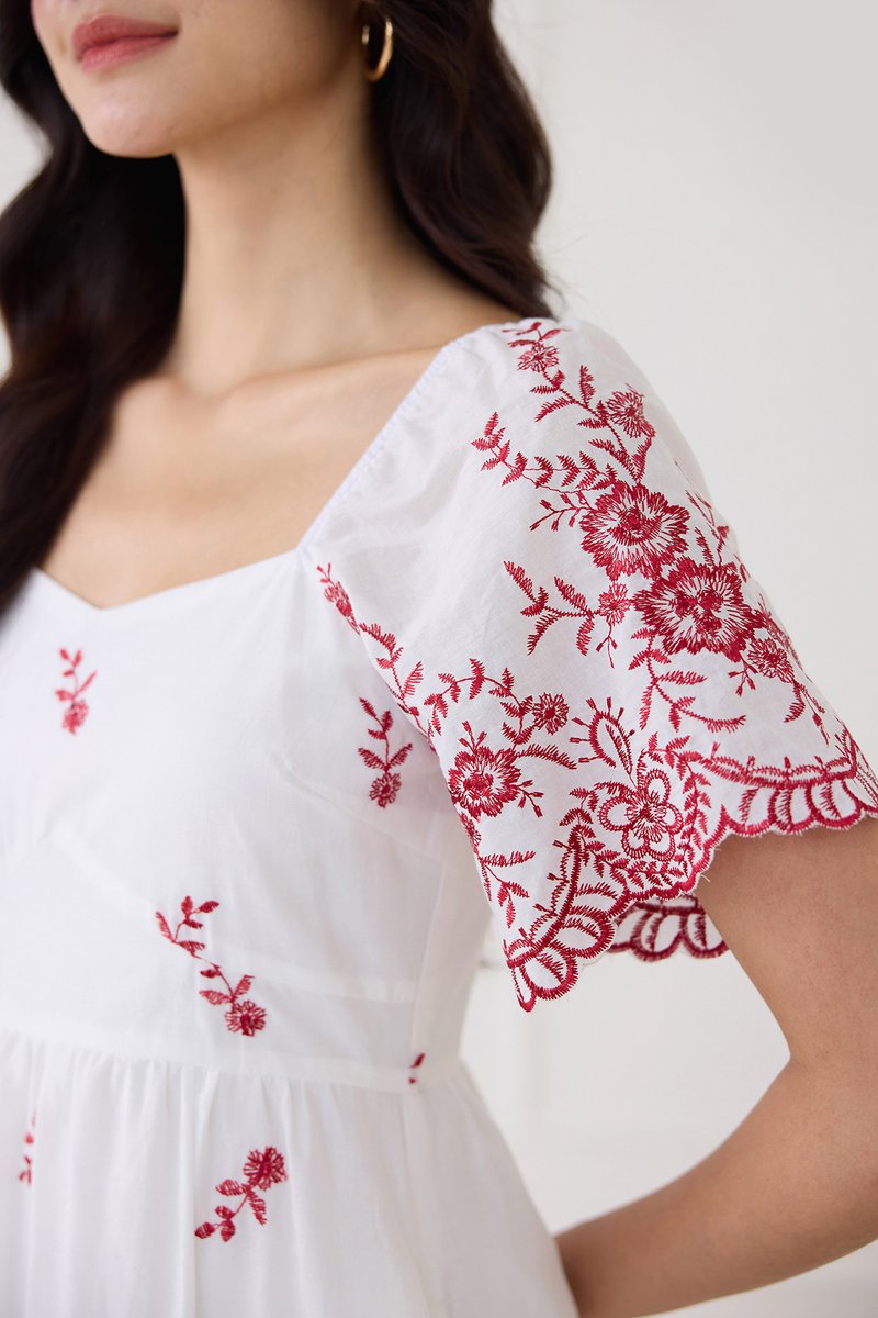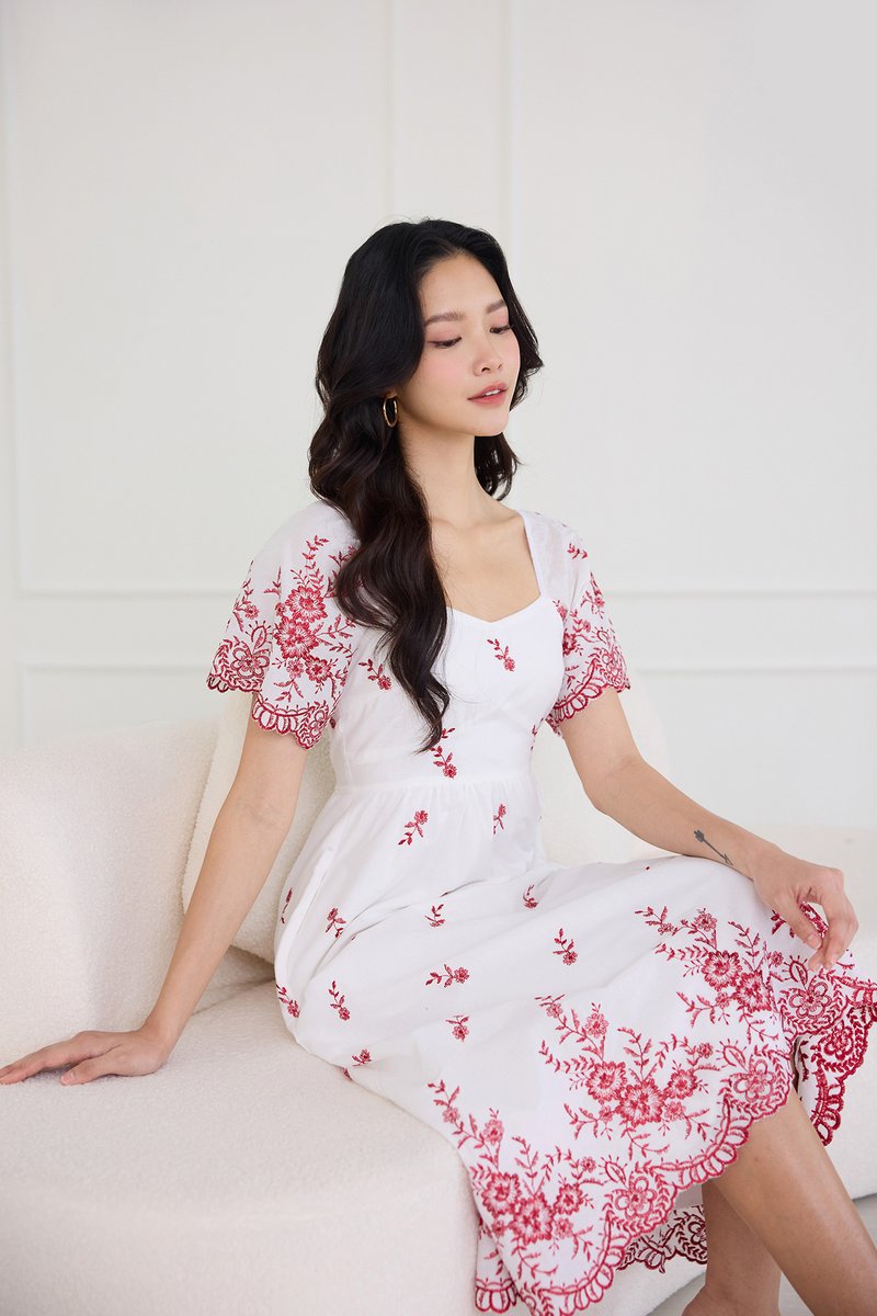 Audrea Dress In Red Embroidery