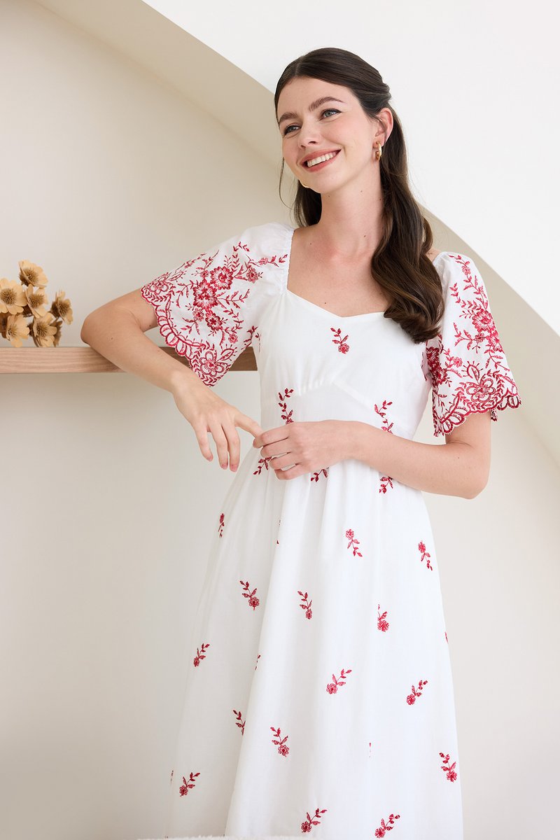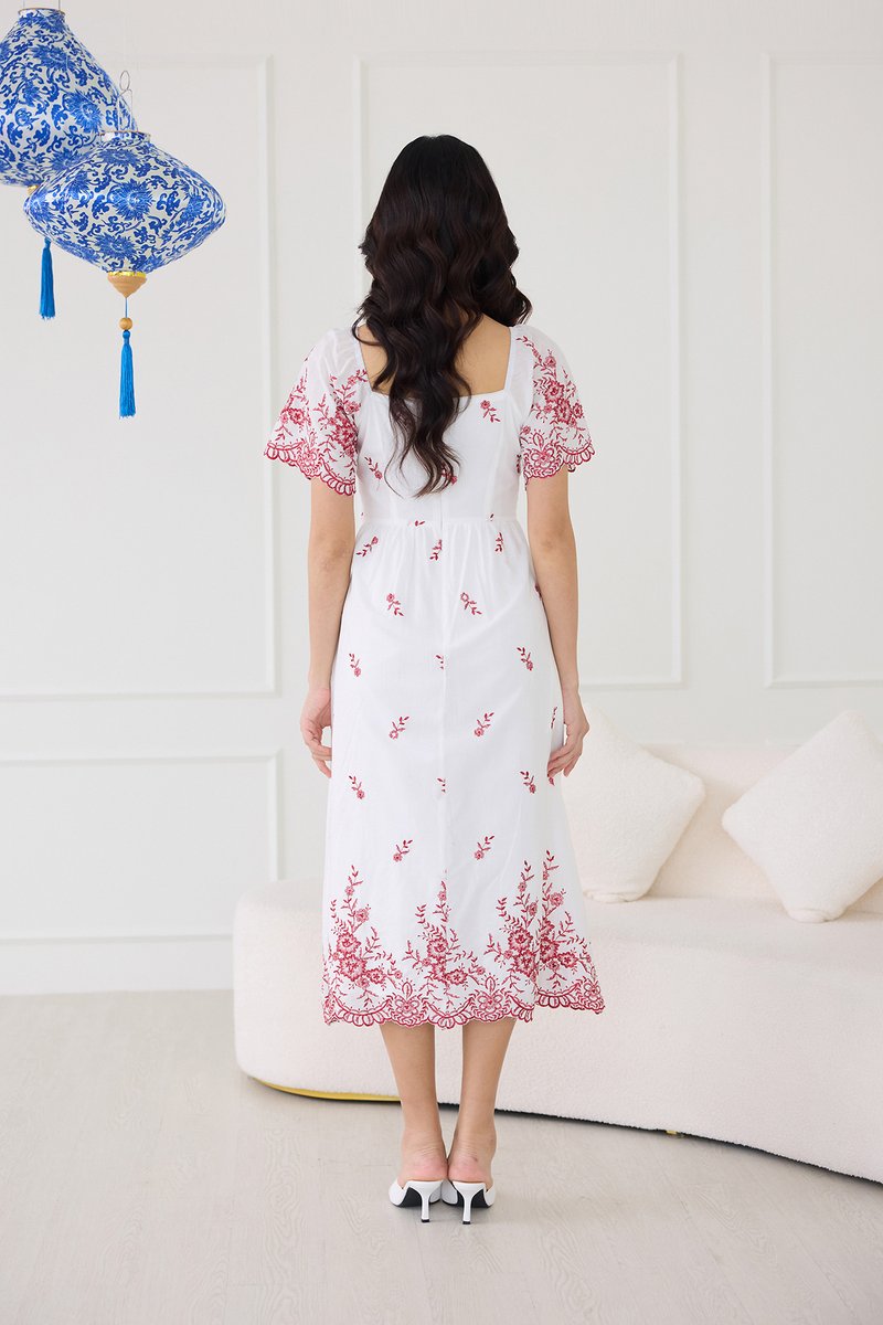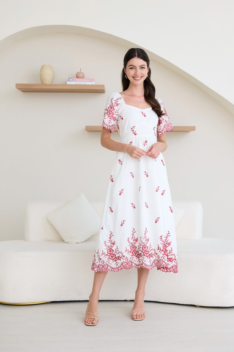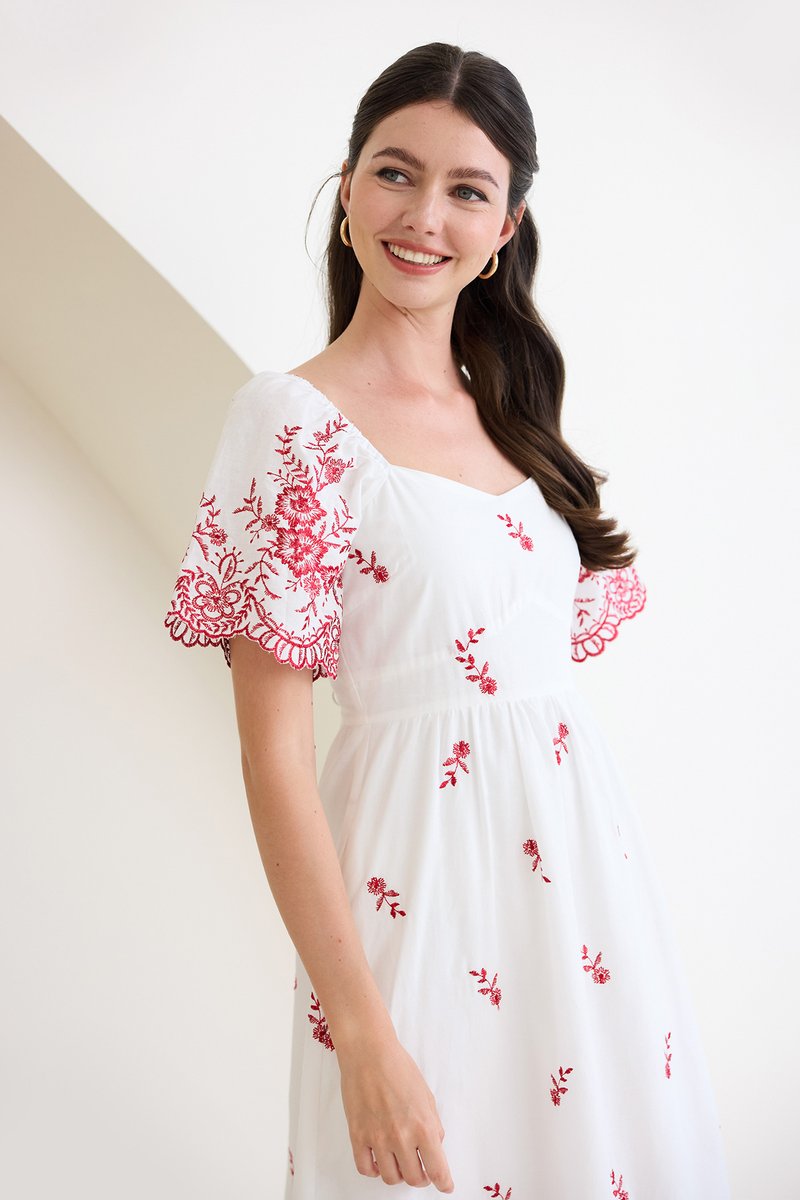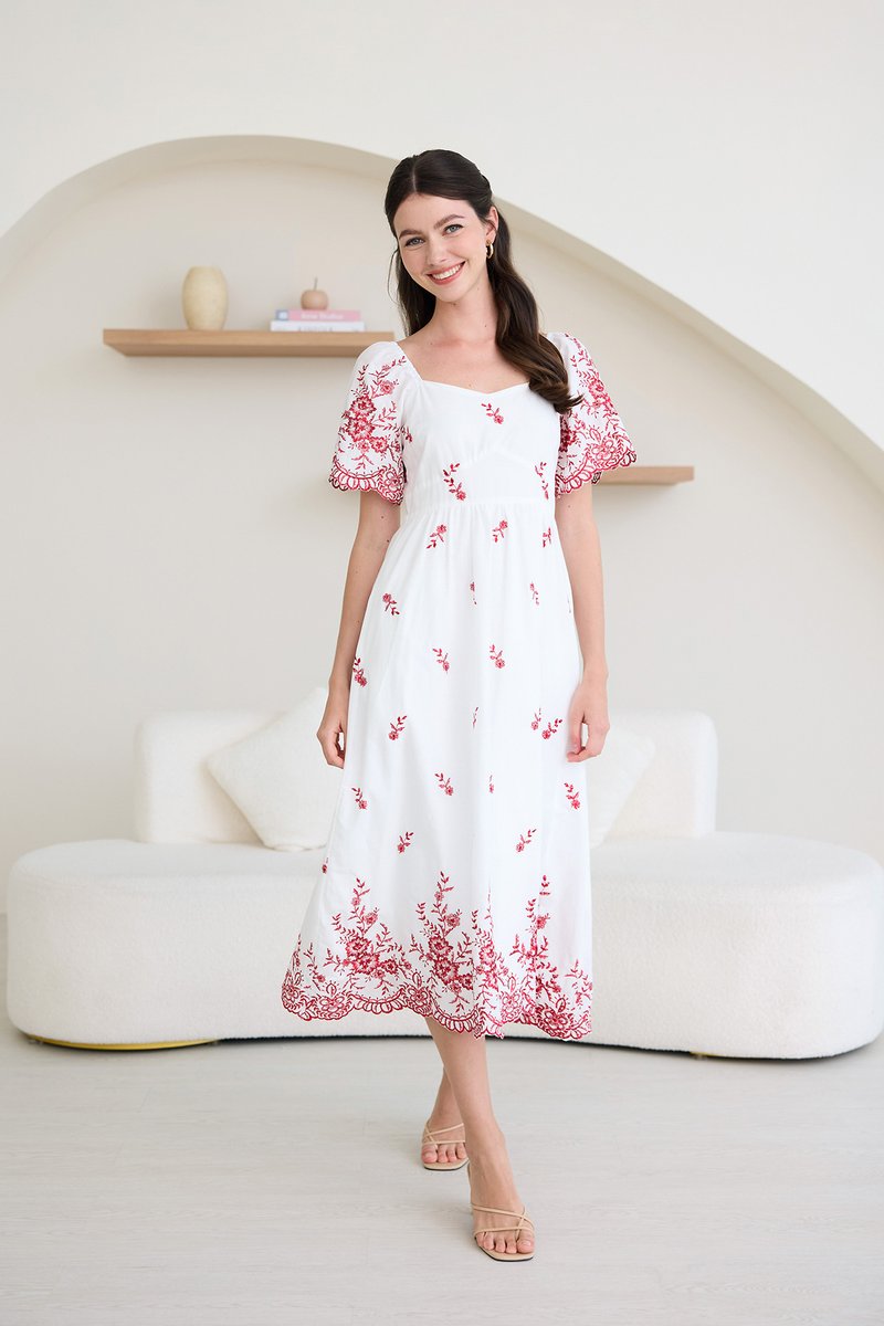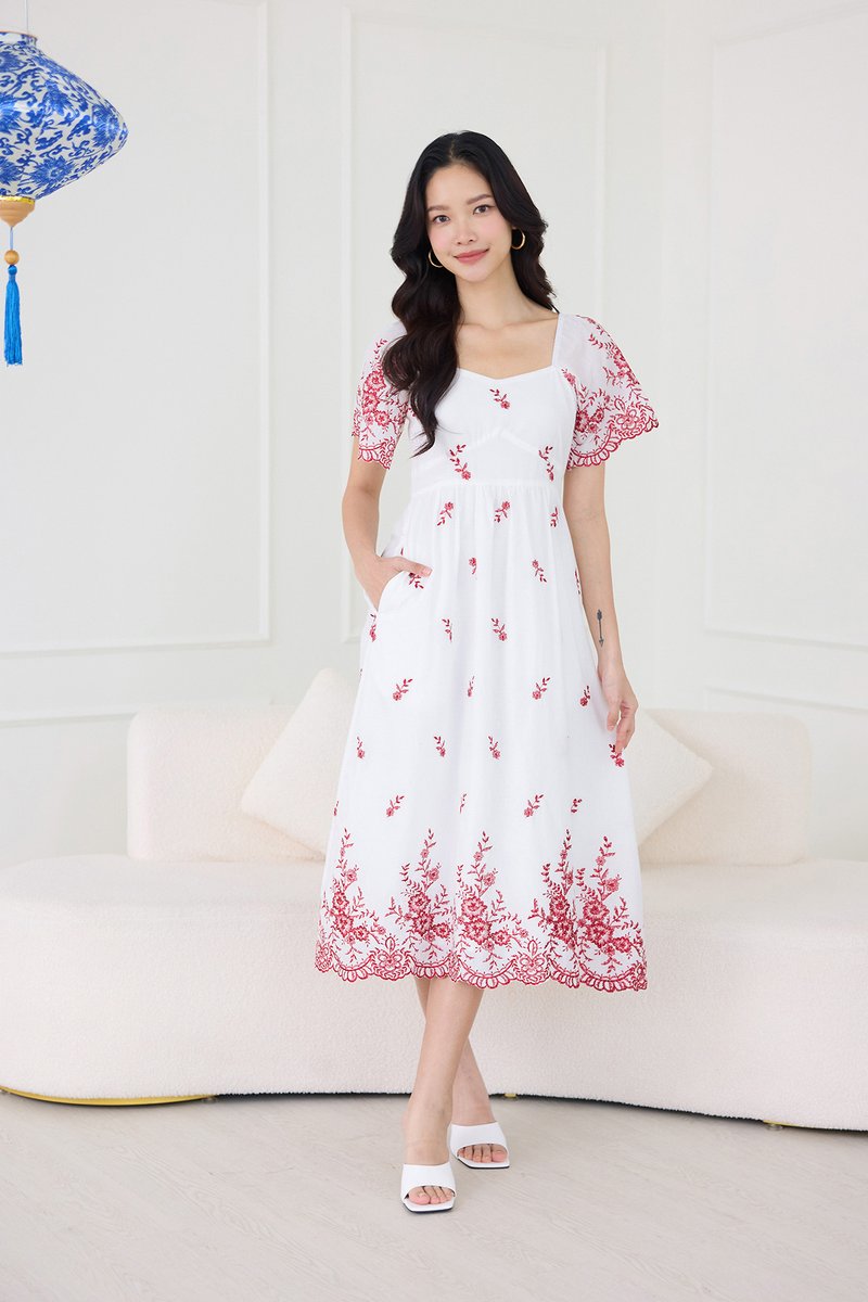 Audrea Dress In Red Embroidery