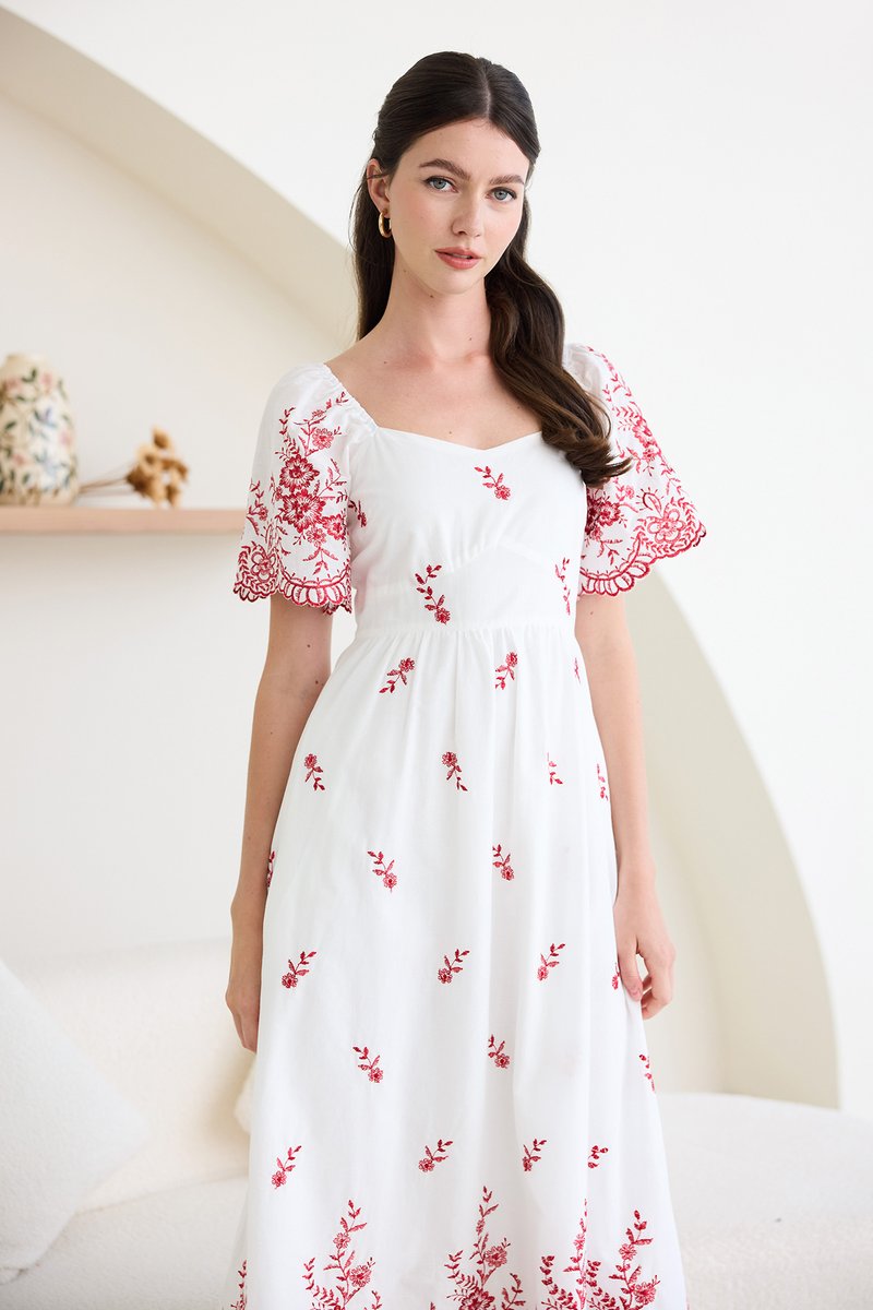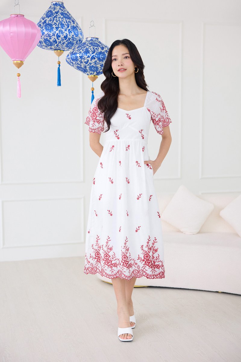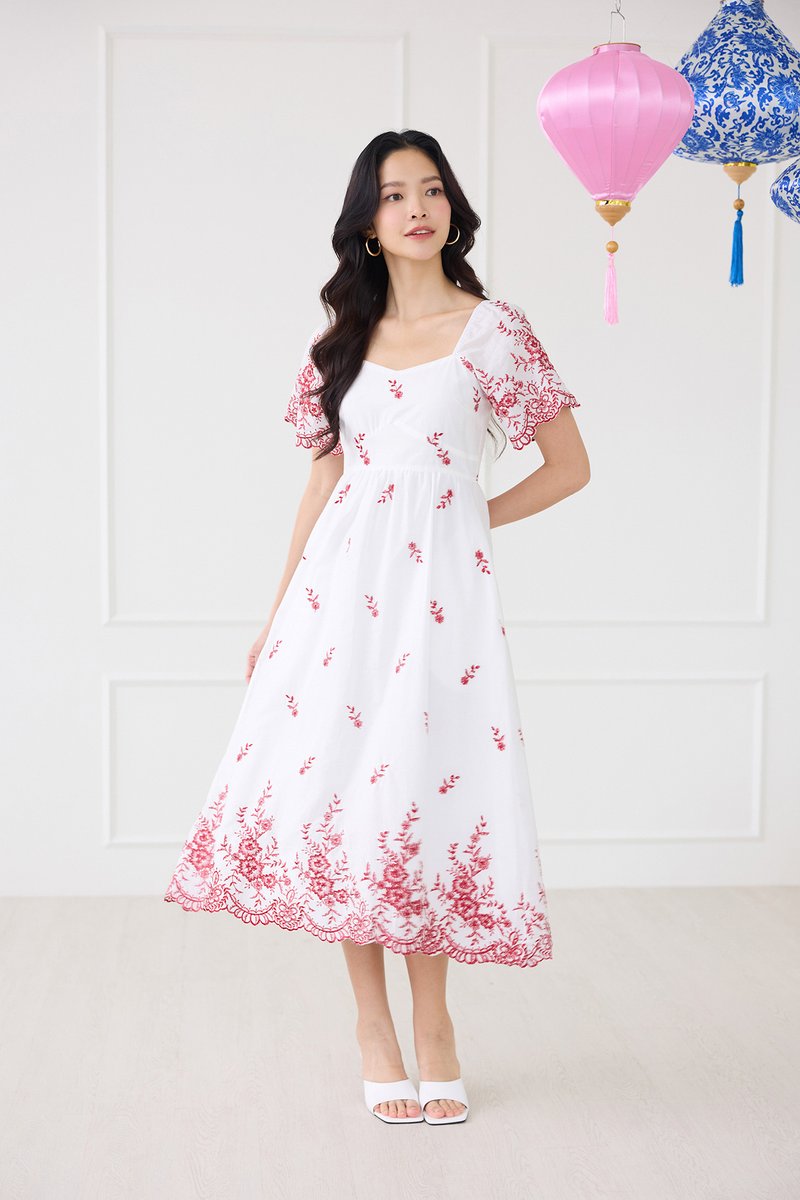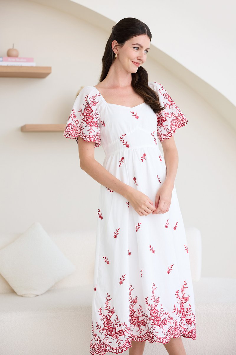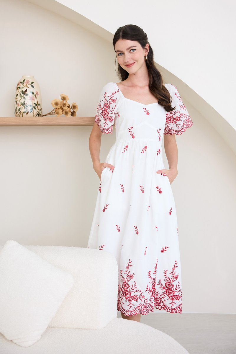Audrea Dress In Red Embroidery