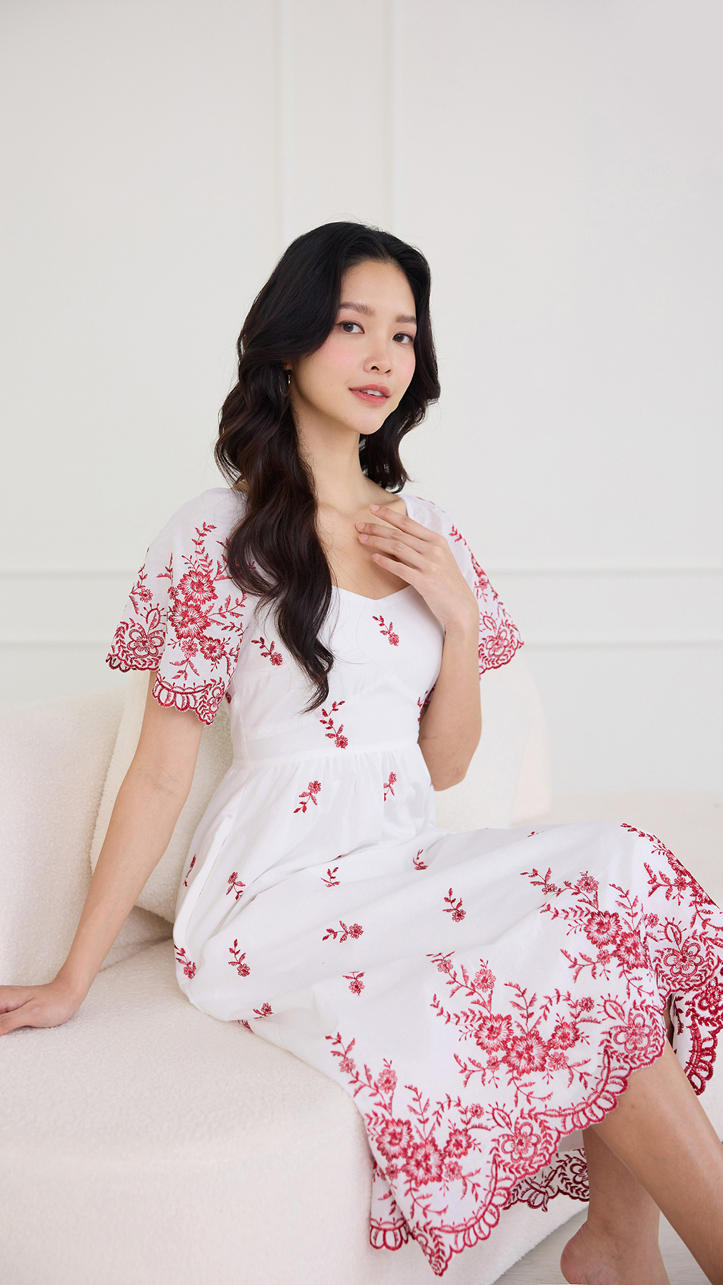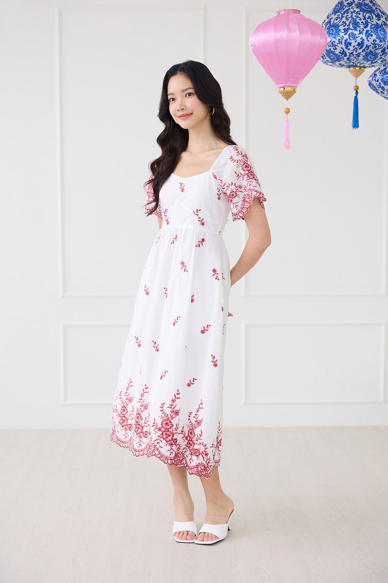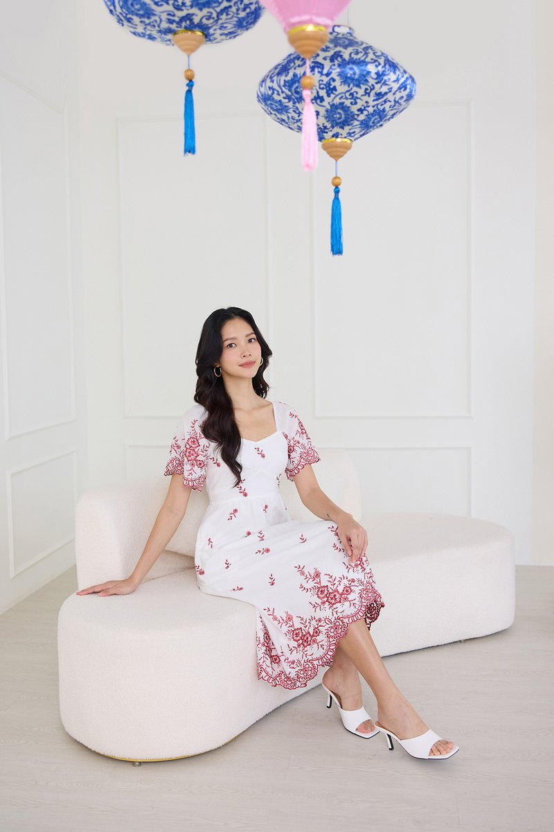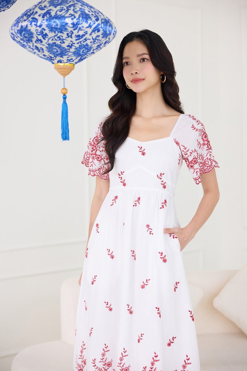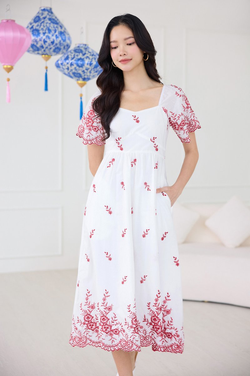 Audrea Dress In Red Embroidery