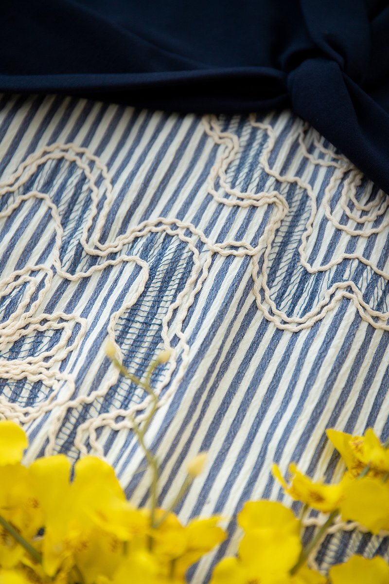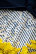bottom: embroidered textured polyester cotton material, non-stretchable