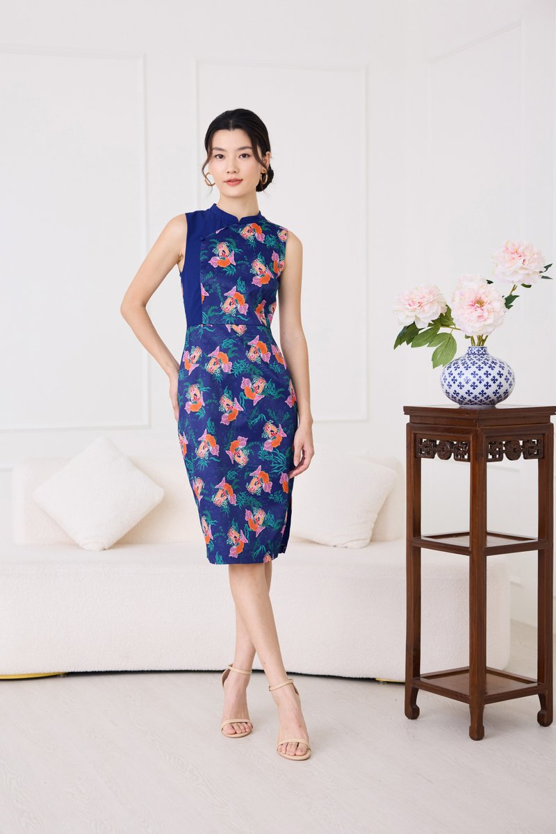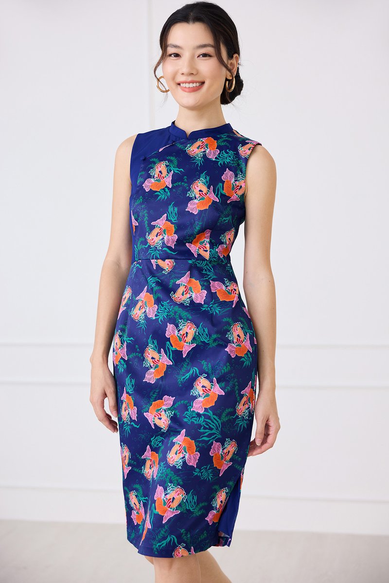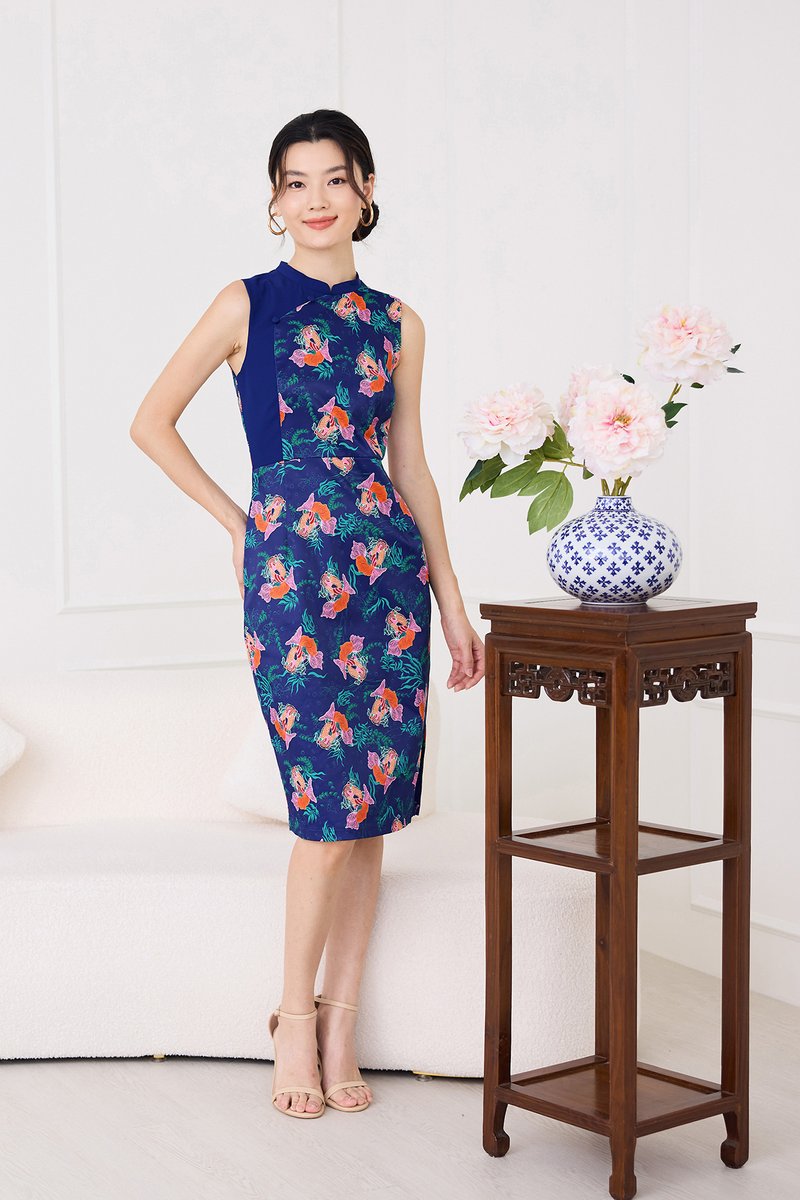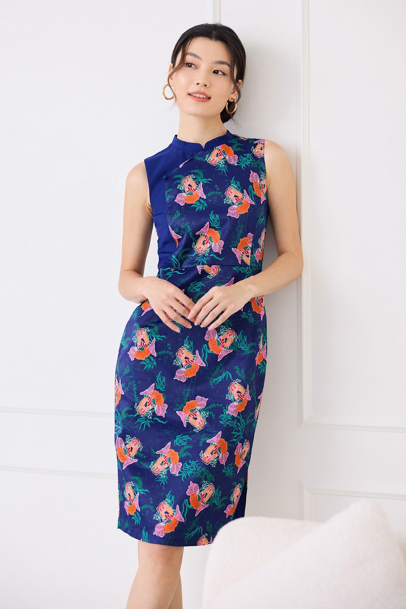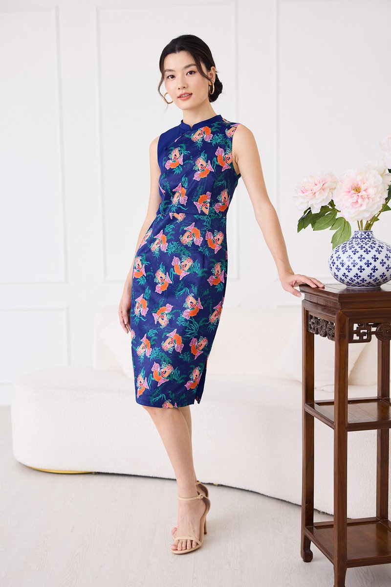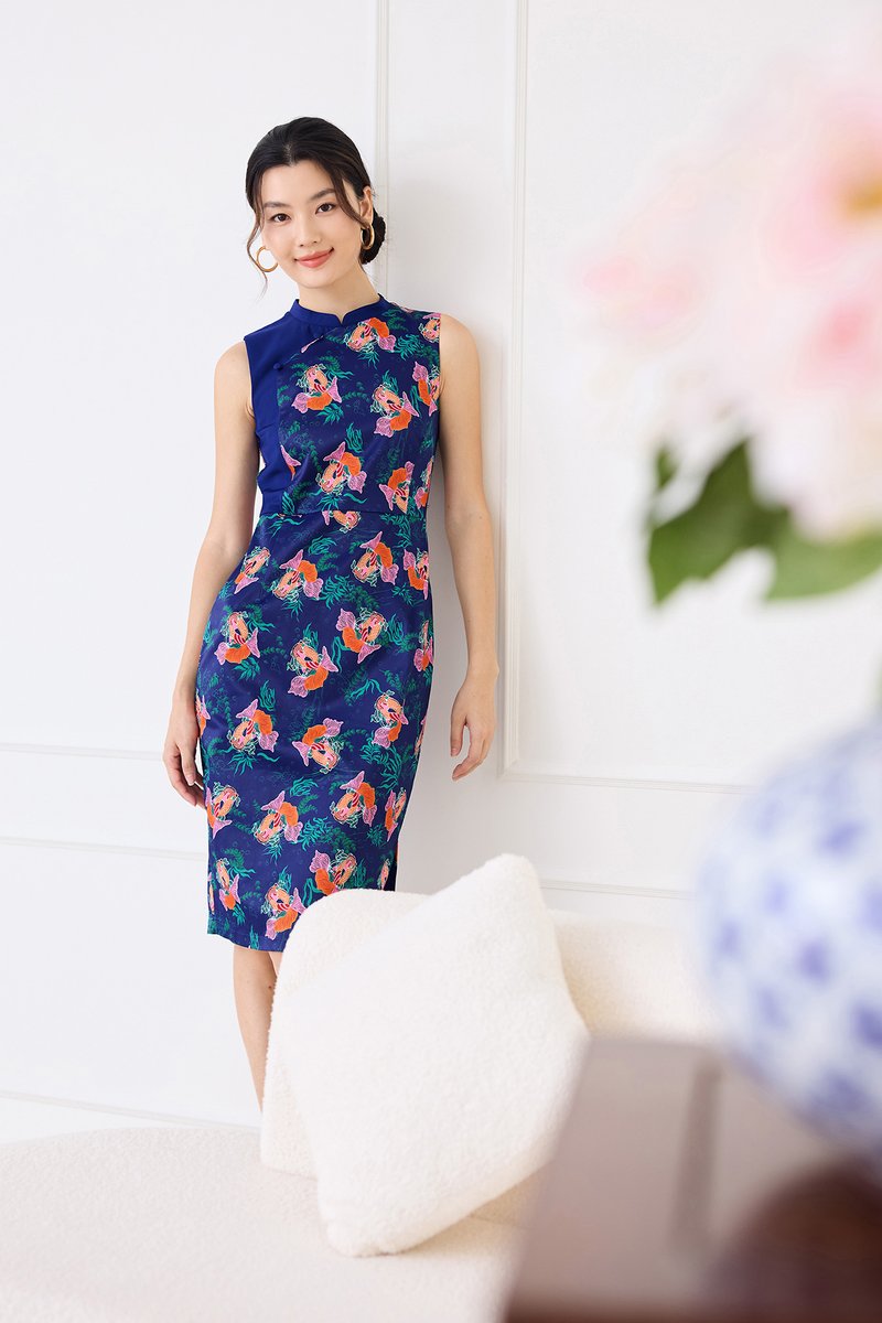 Bountiful Blessings Cheongsam Dress In Cobalt Blue