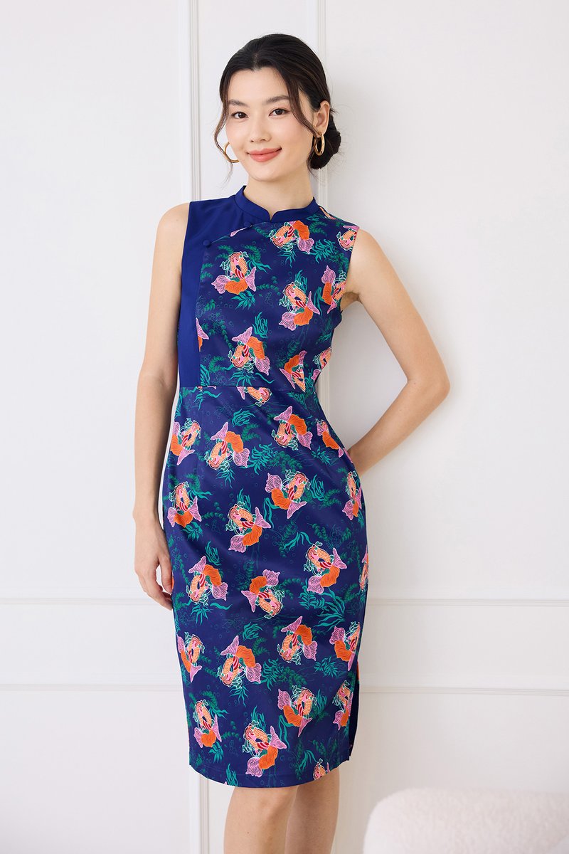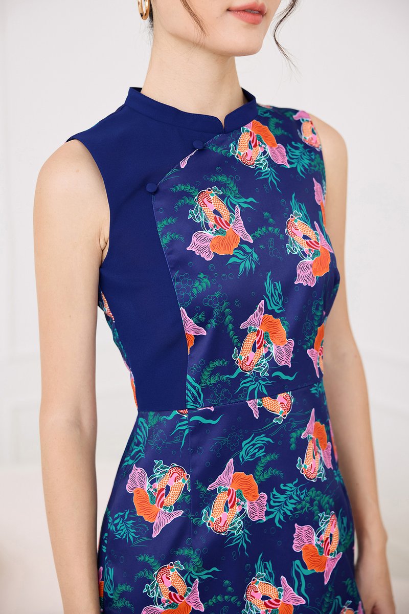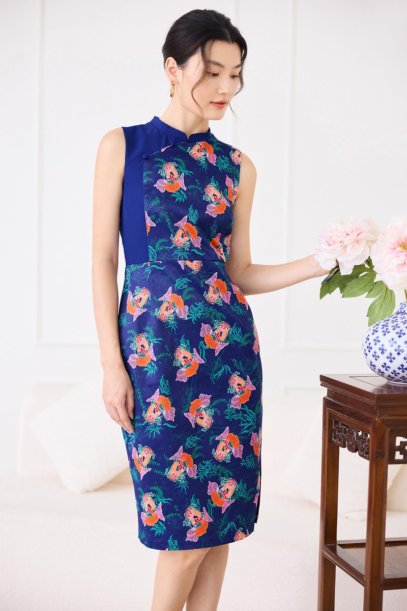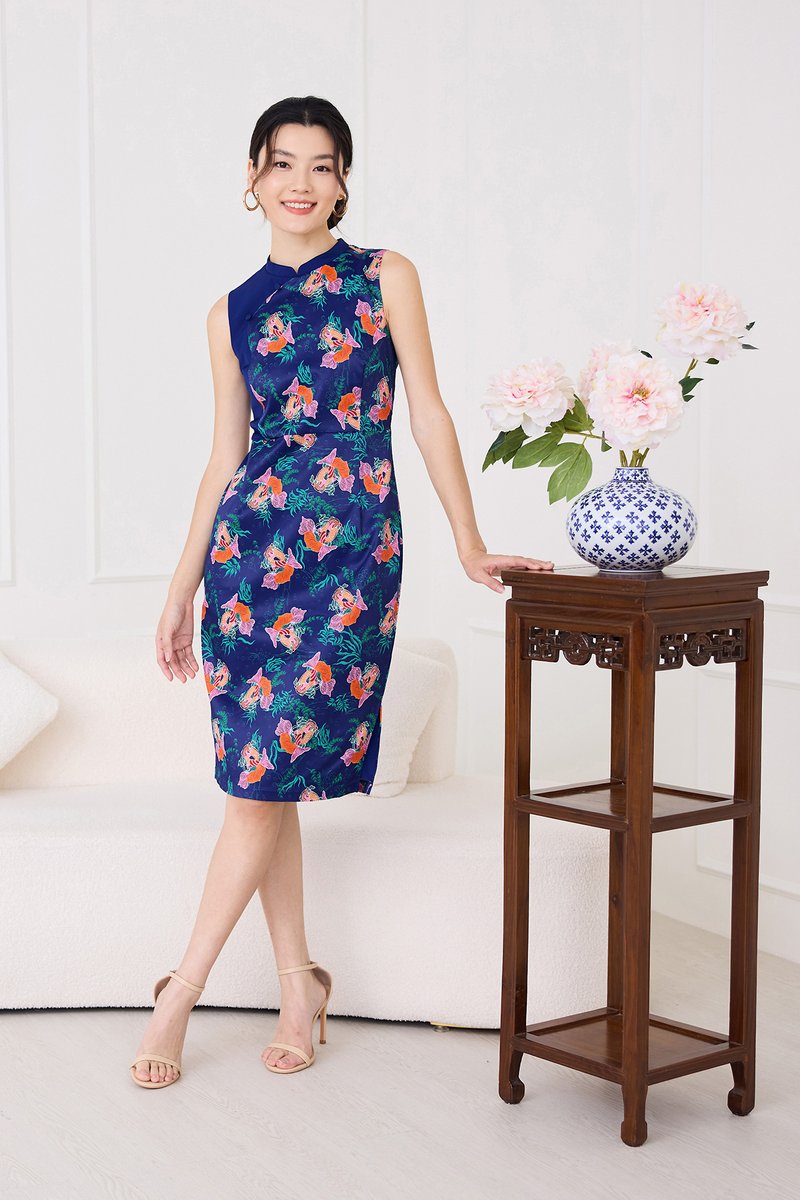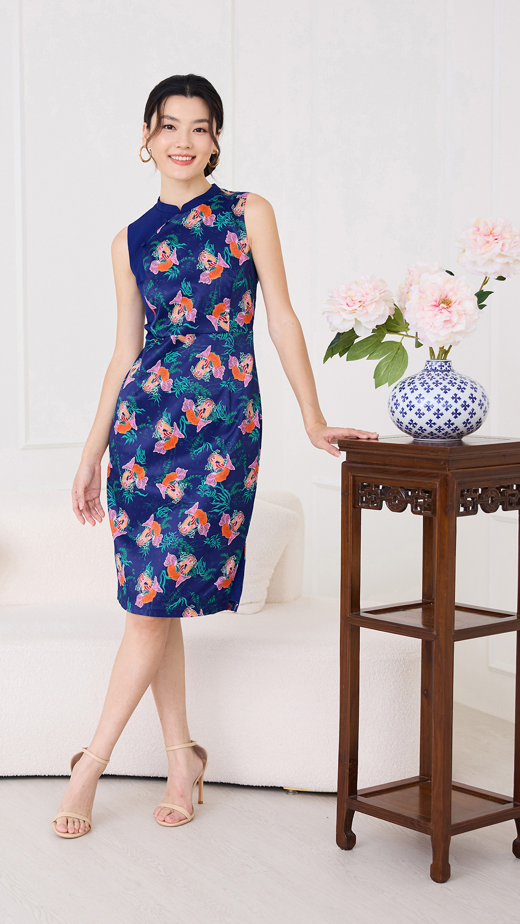 Bountiful Blessings Cheongsam Dress In Cobalt Blue
