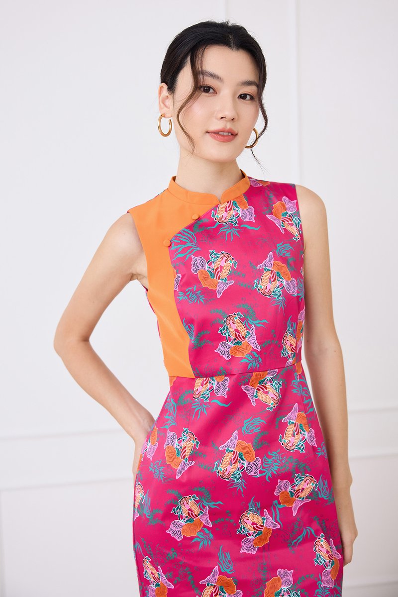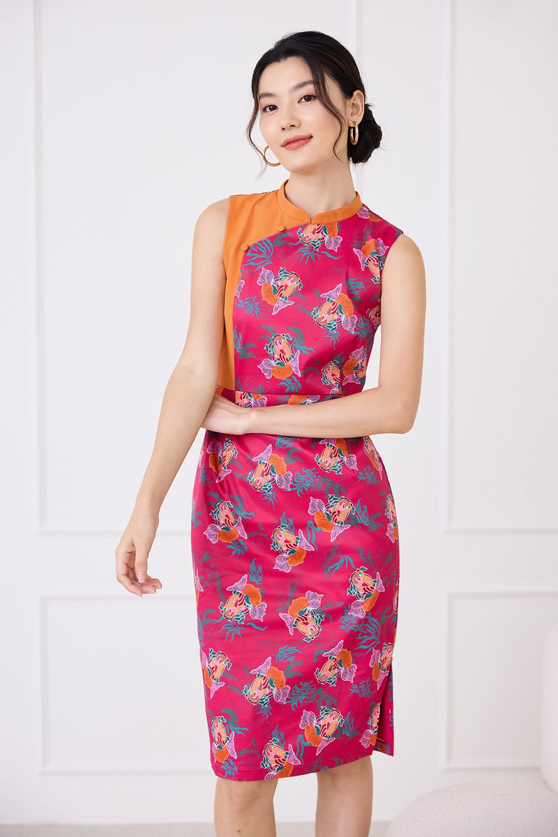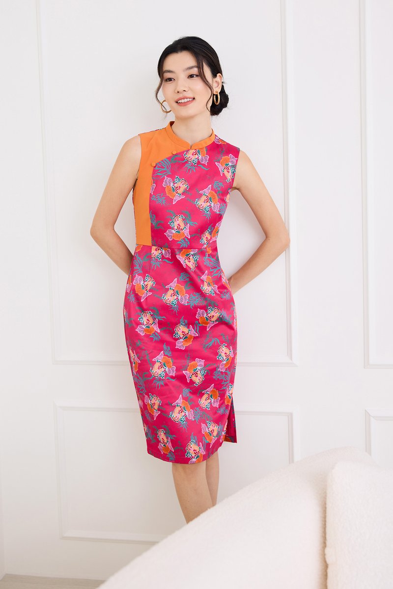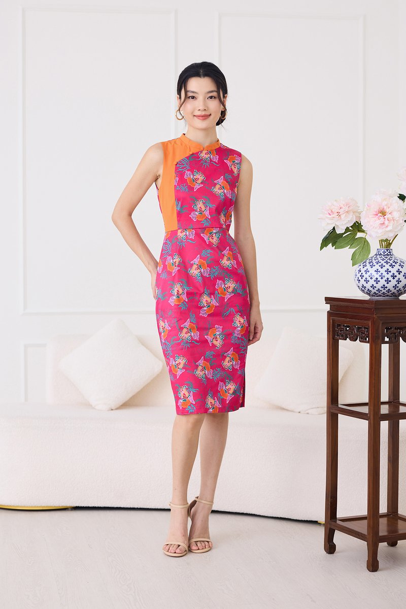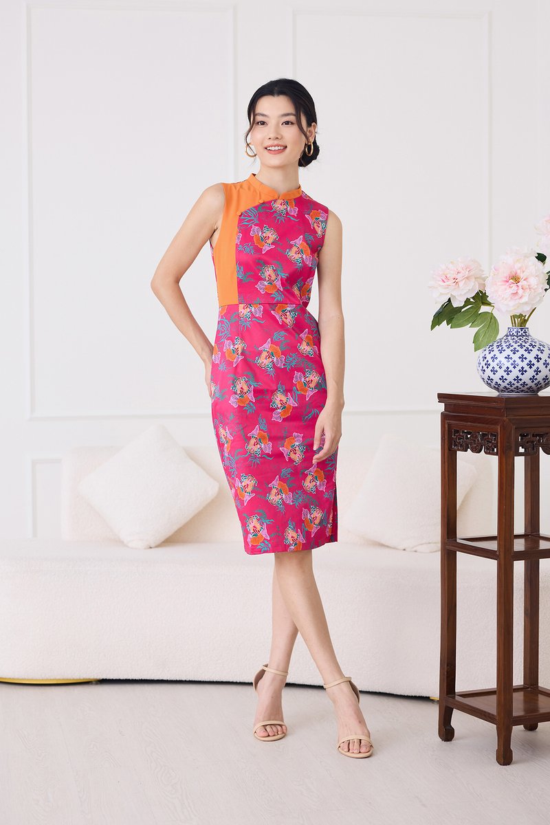 Bountiful Blessings Cheongsam Dress In Magenta Pink