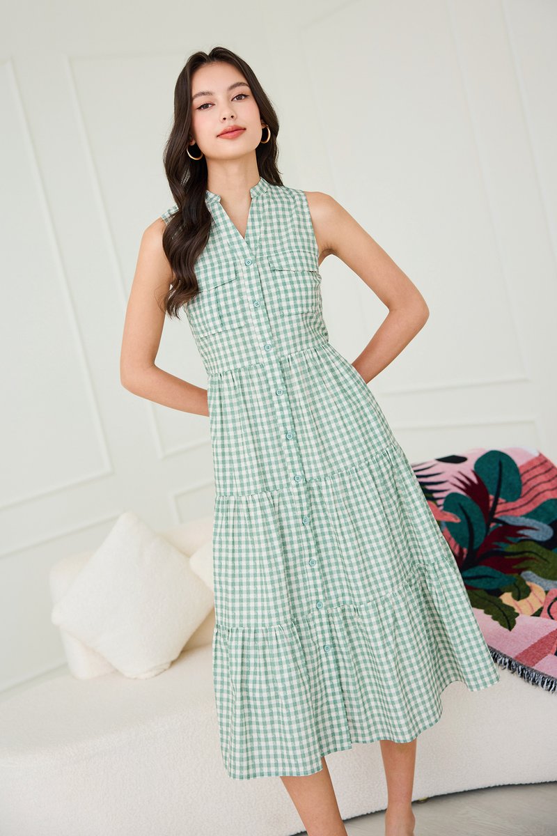 Cheyenne Dress In Sage Checks