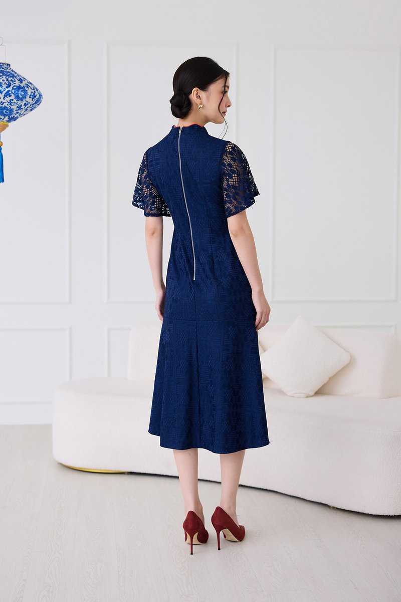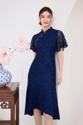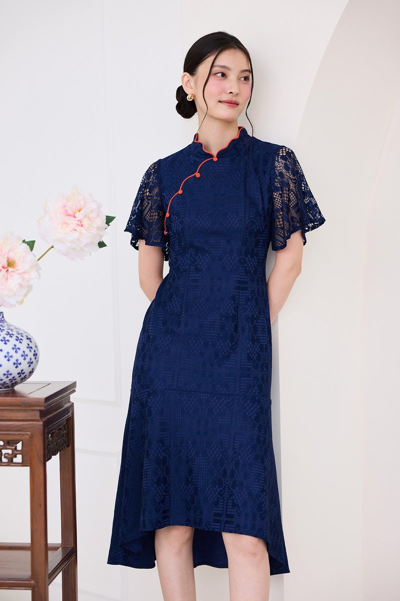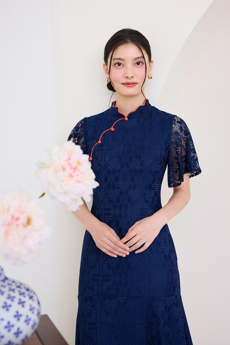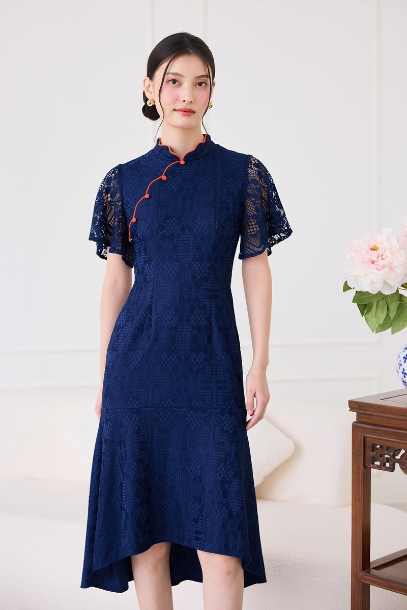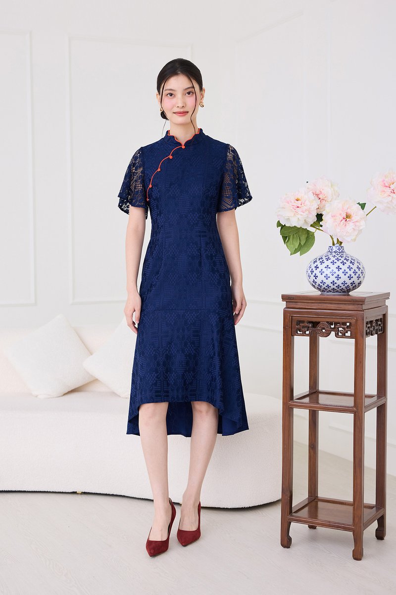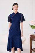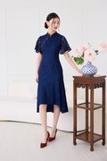 Fresh Beginnings Cheongsam Dress In Navy Blue