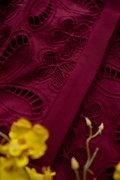 top: cotton eyelet material, non-stretchable