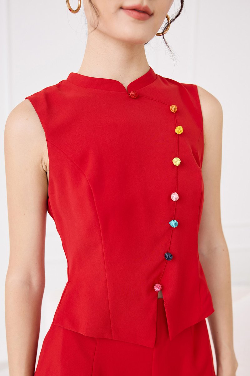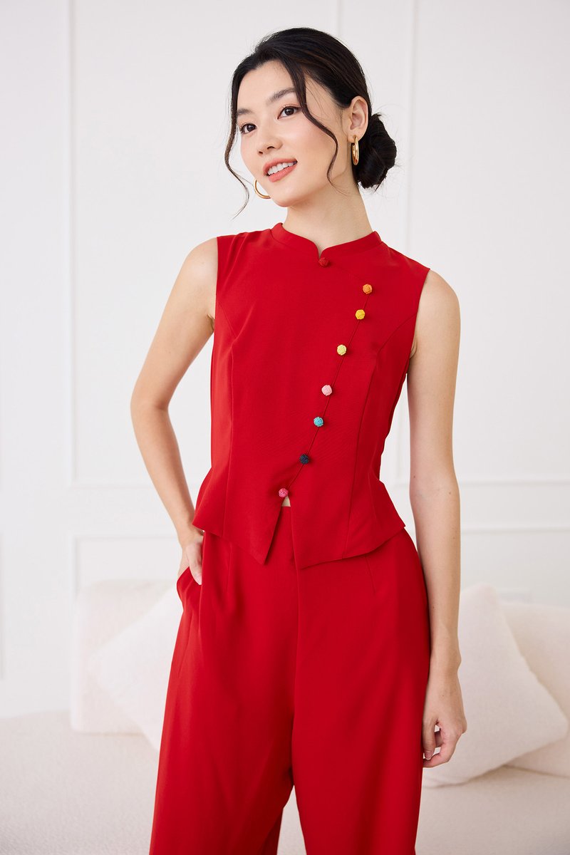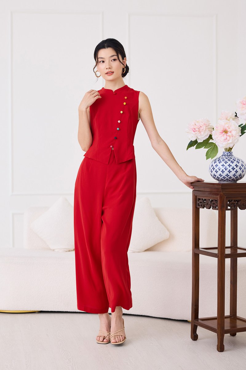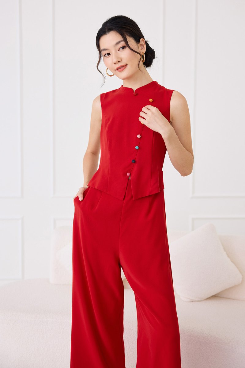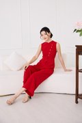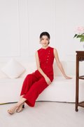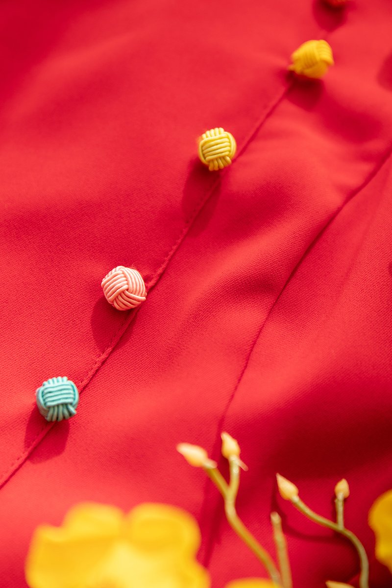 Knots Of Love Cheongsam Romper In Festive Red