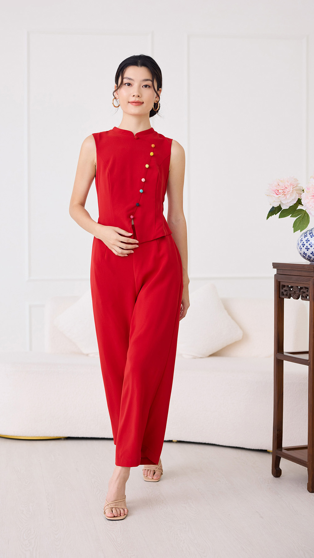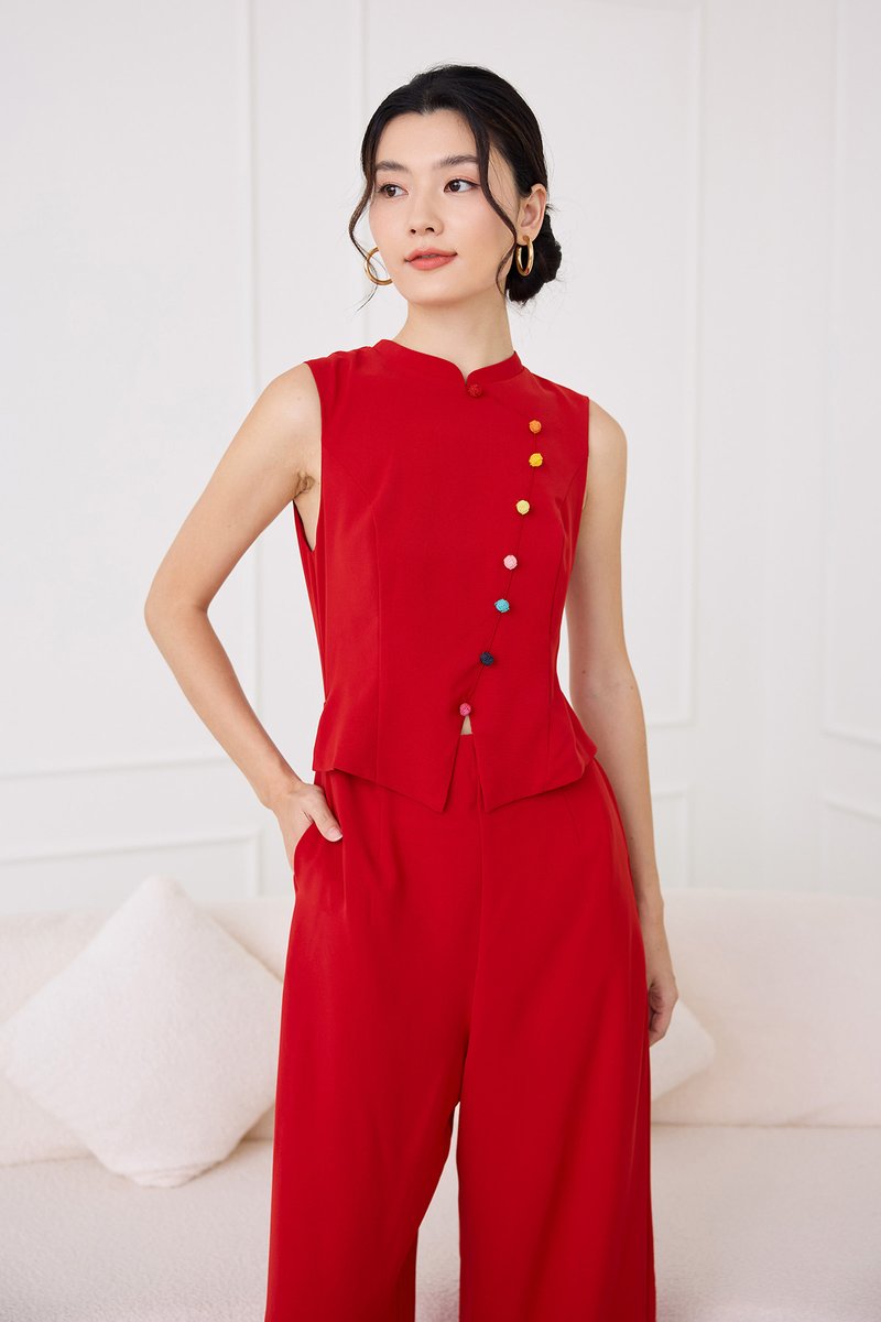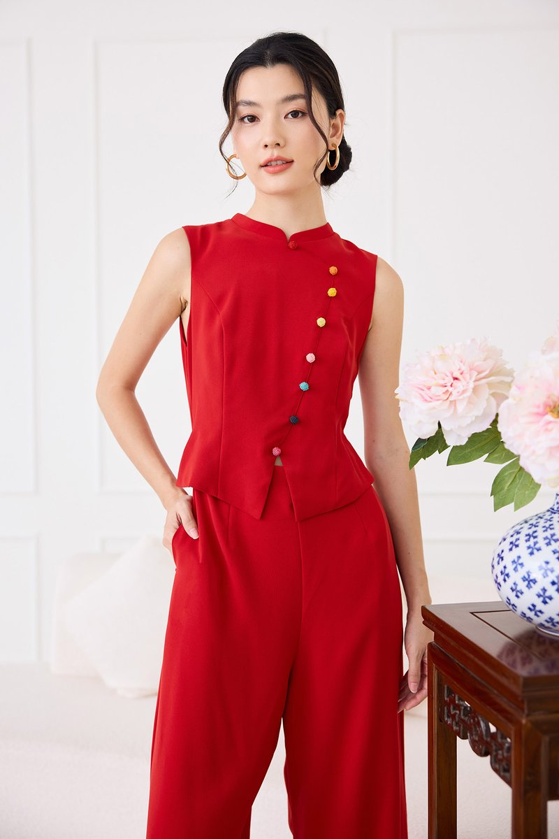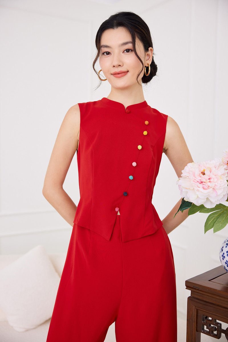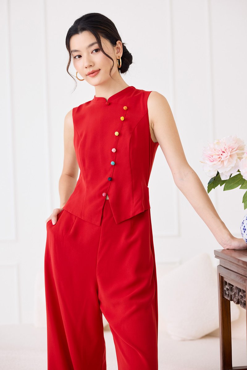 Knots Of Love Cheongsam Romper In Festive Red