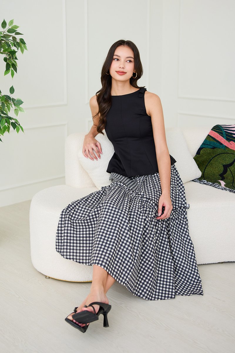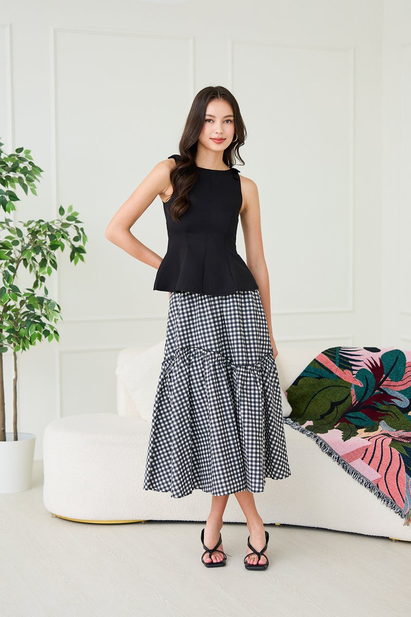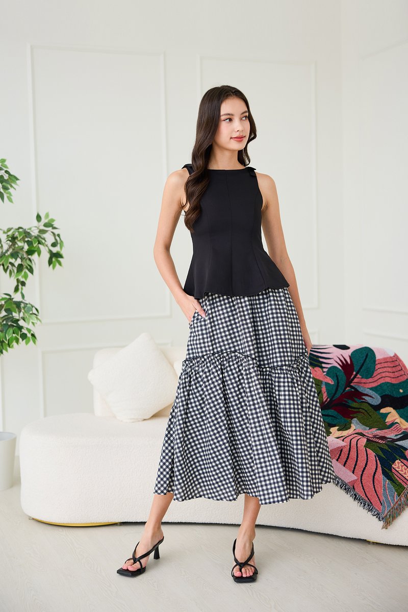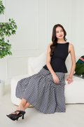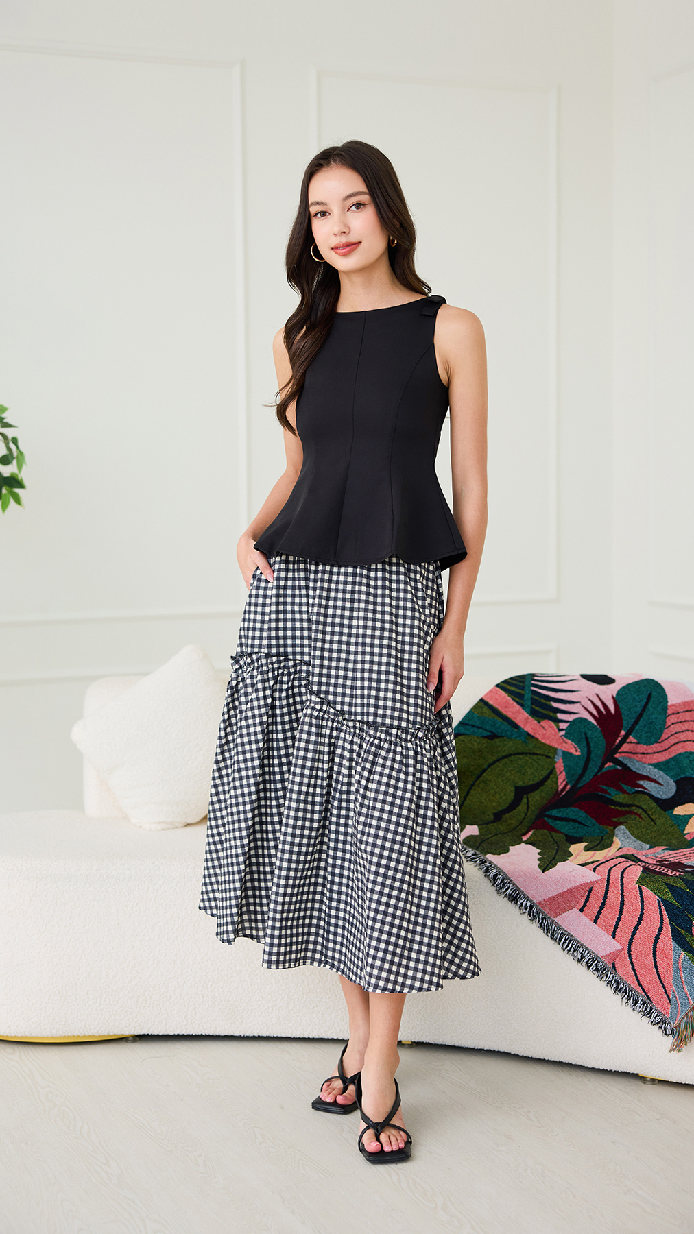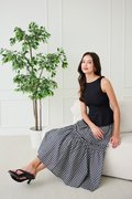 Megan is a UK6/8, 1.75m. She wears a size XS.