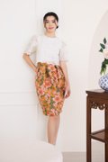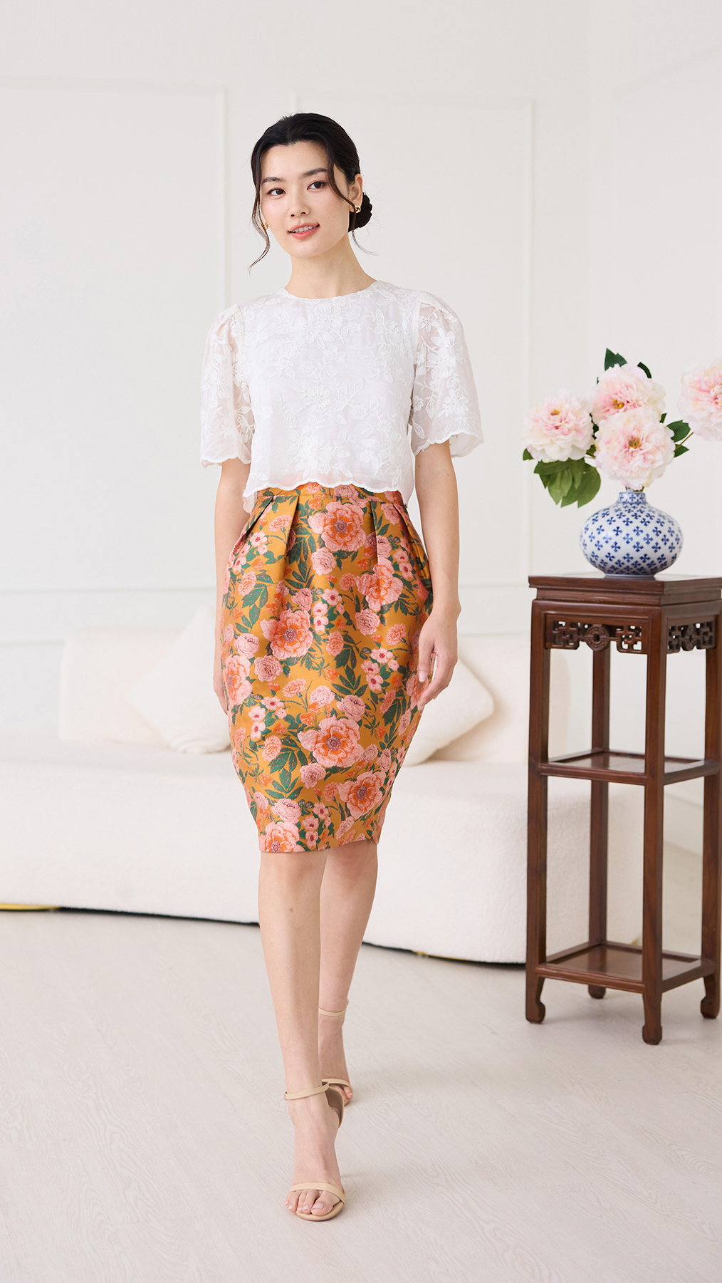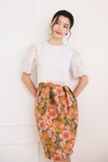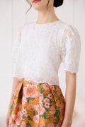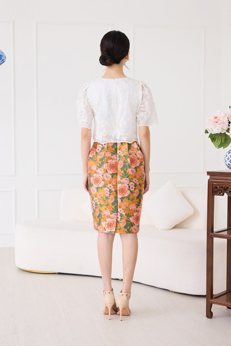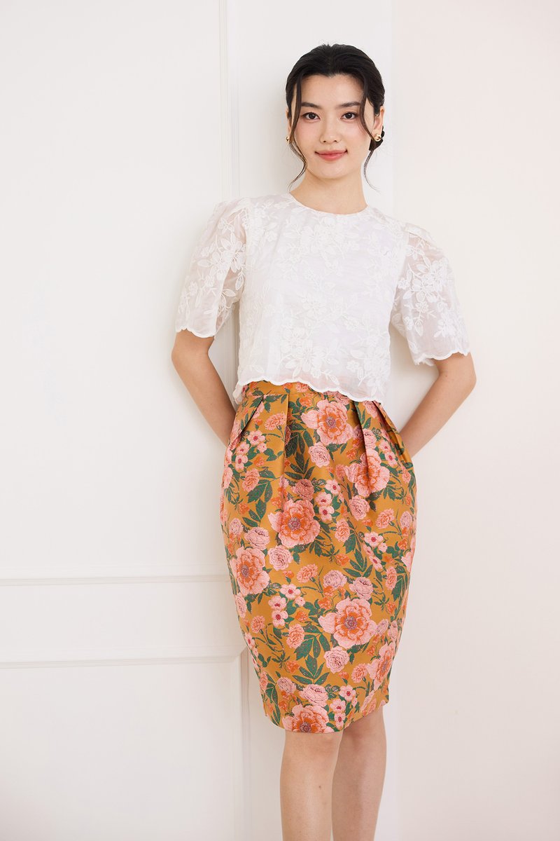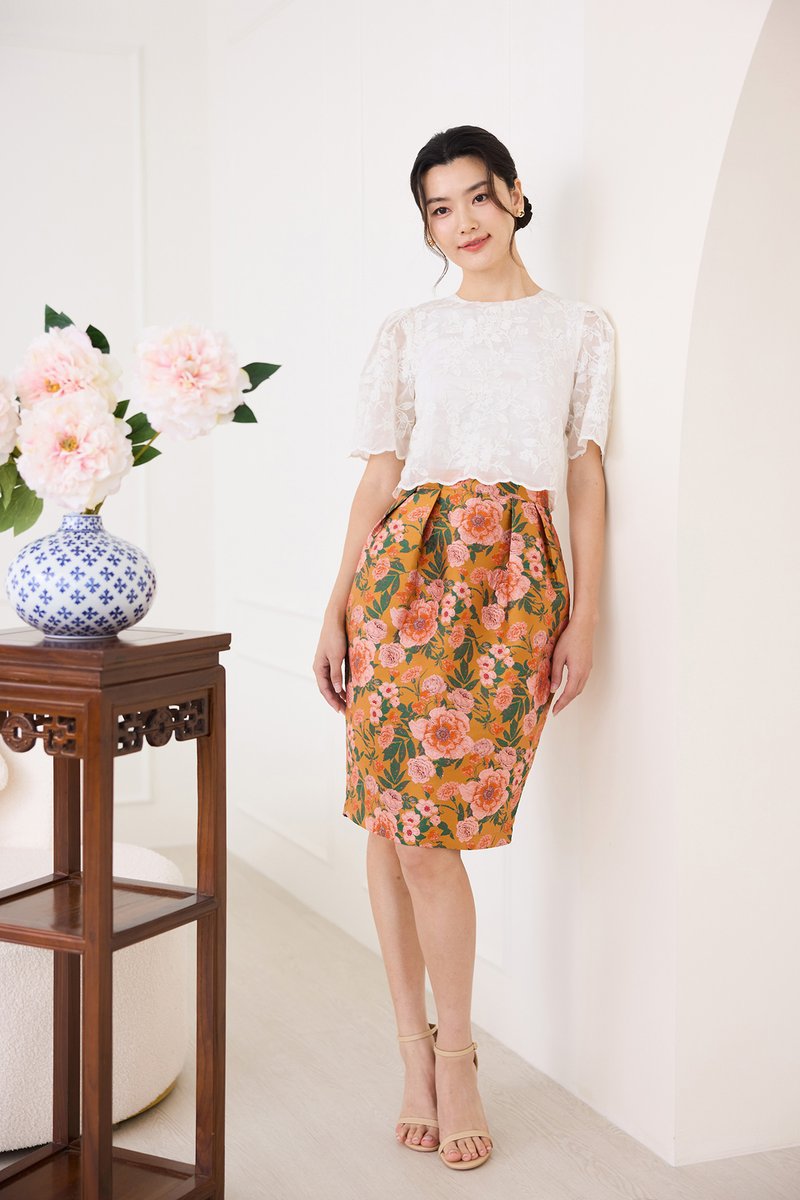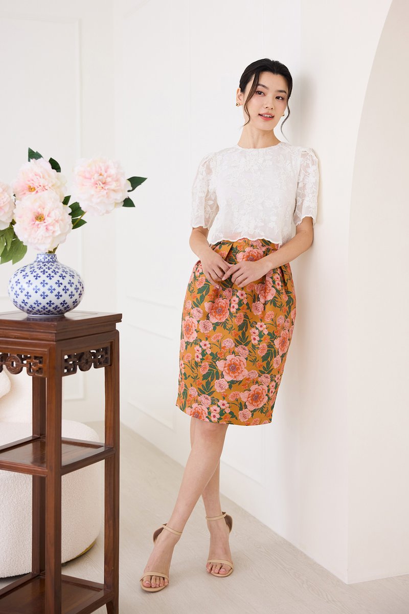 top: embroidered cotton material, non-stretchable