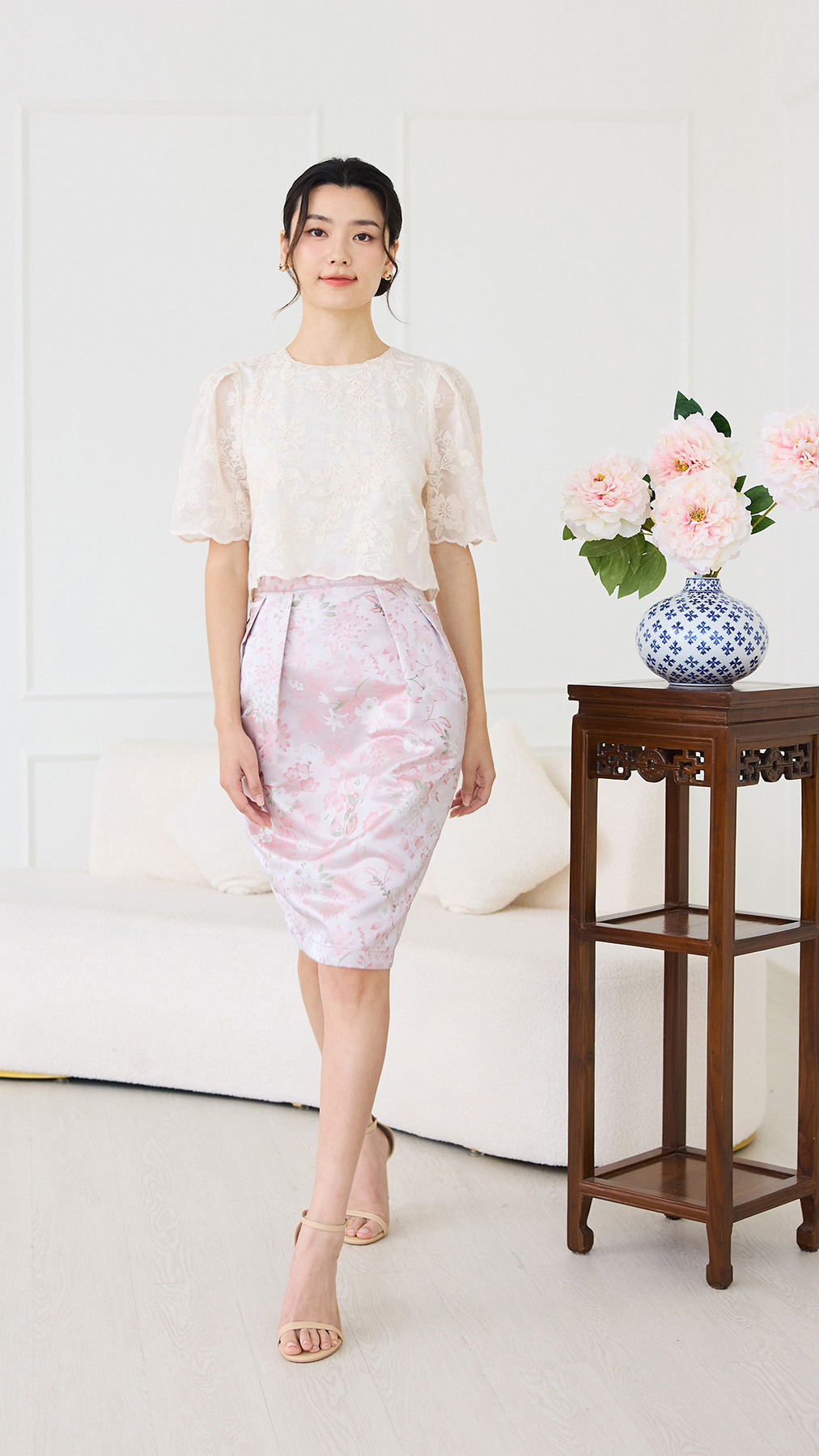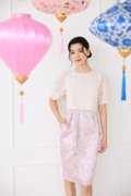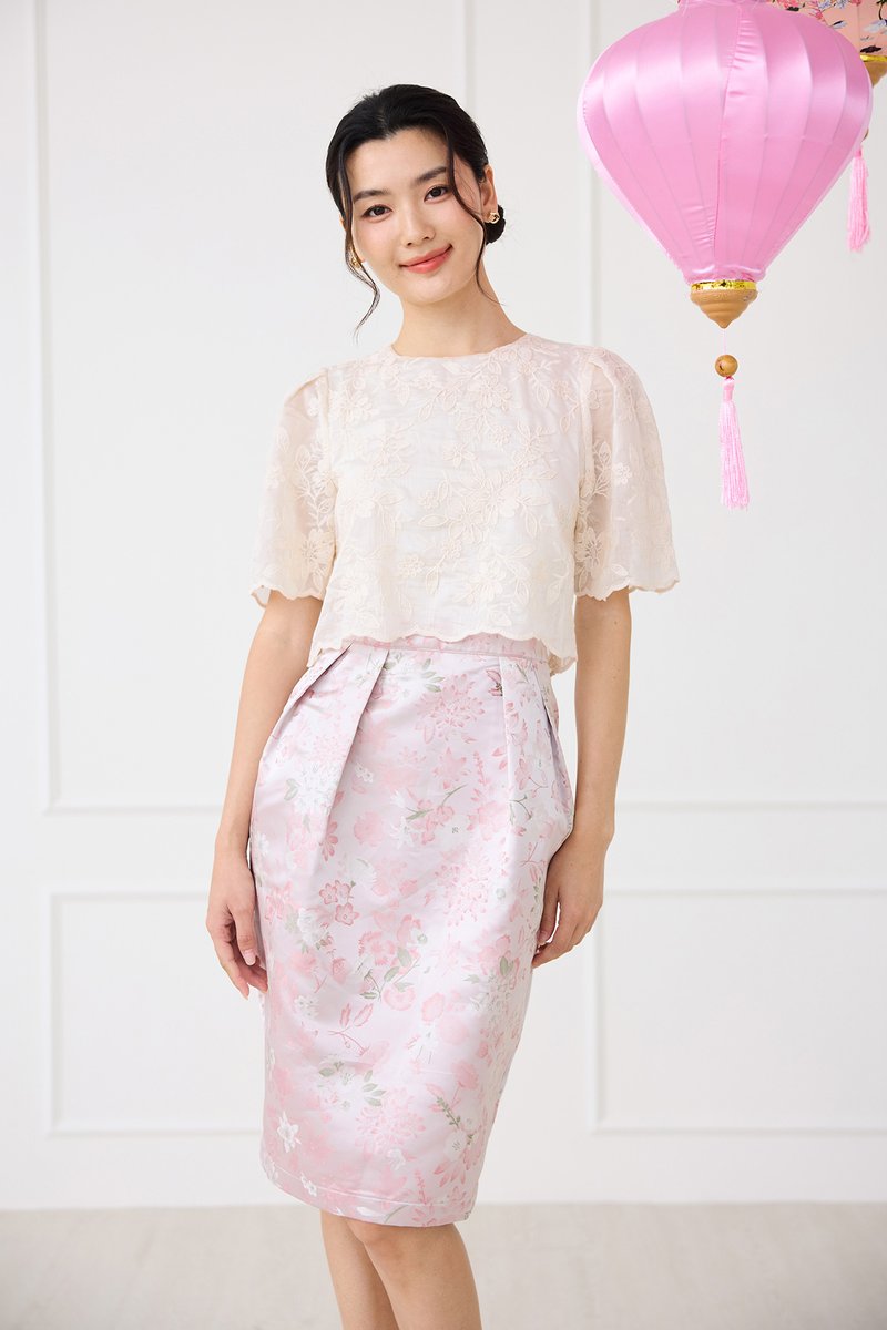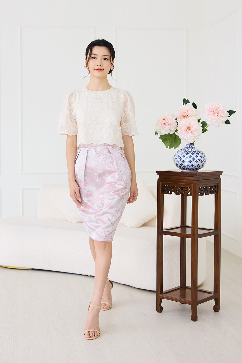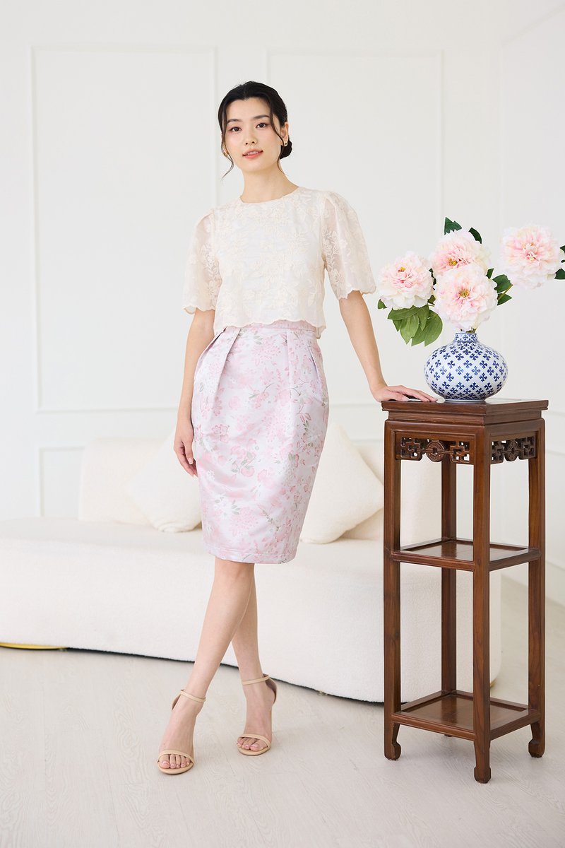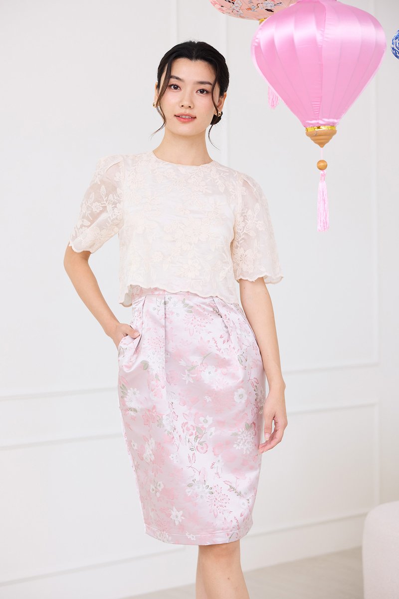 top: embroidered cotton material, non-stretchable