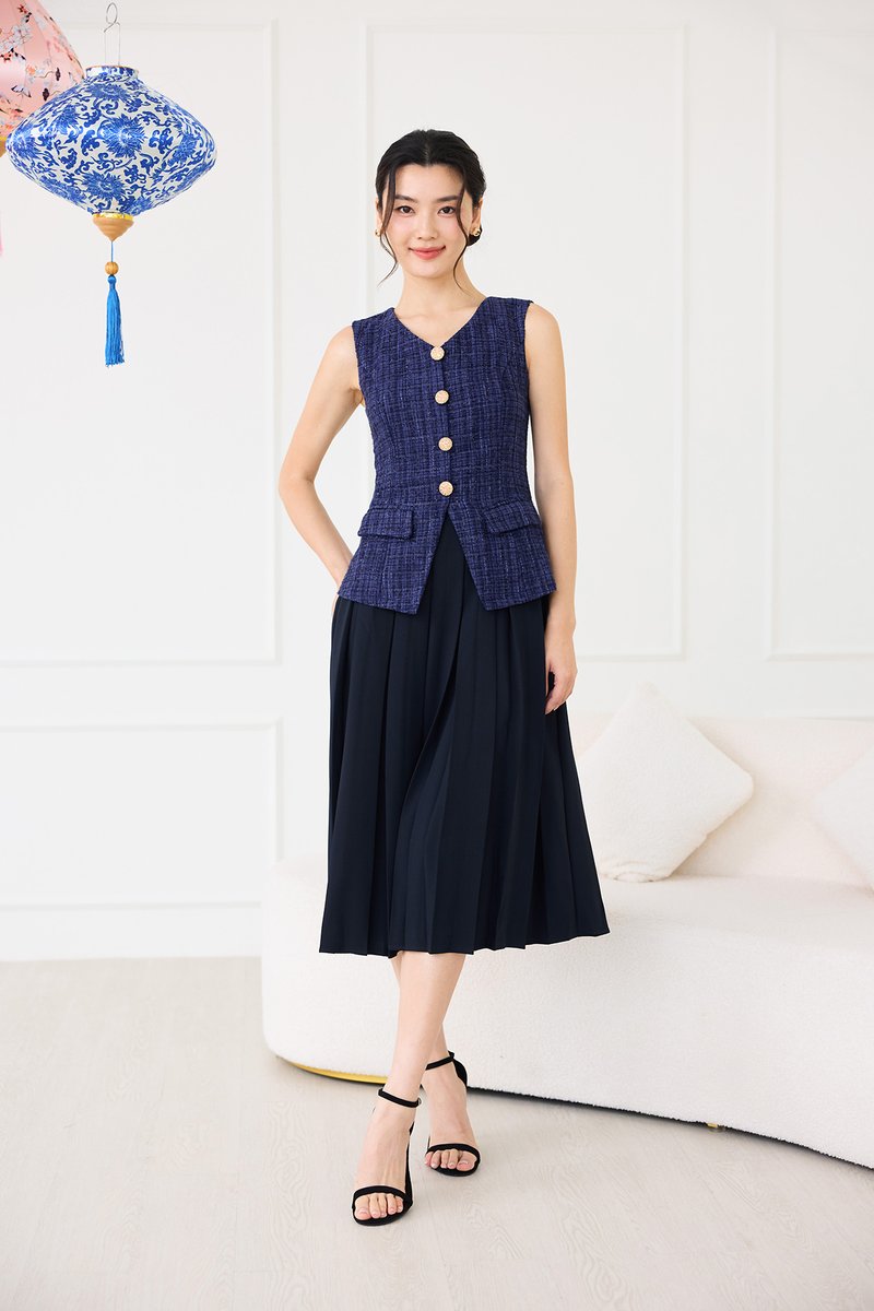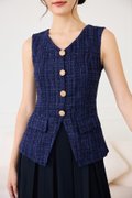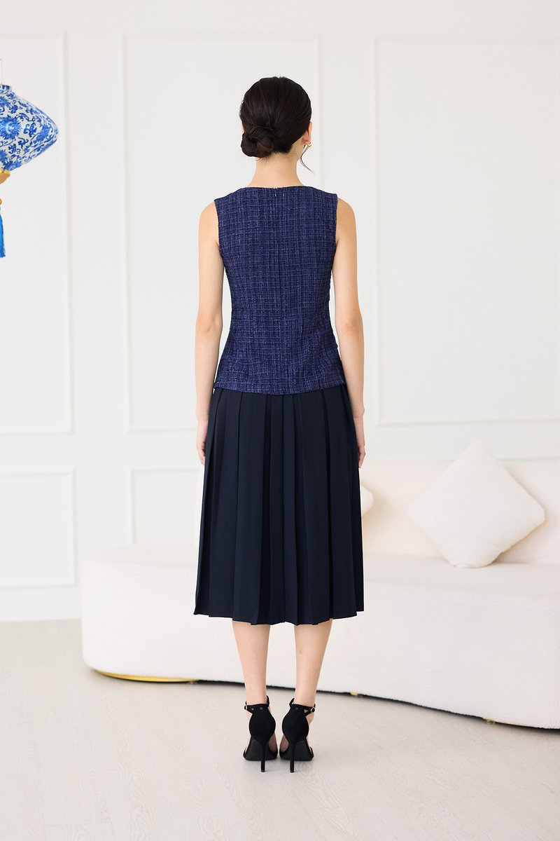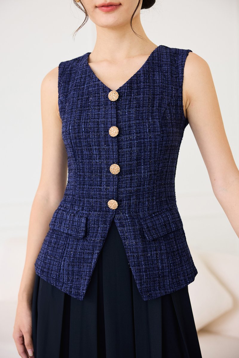 top: tweed material, non-stretchable