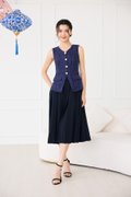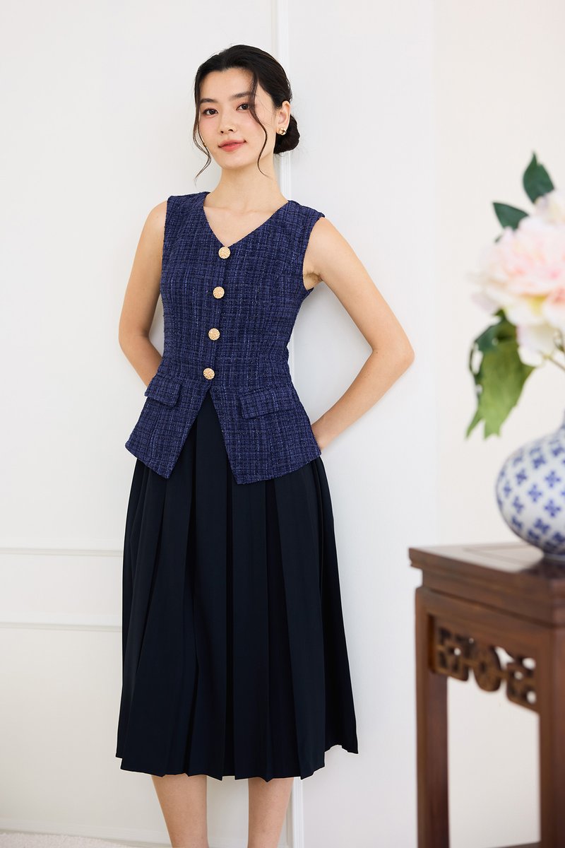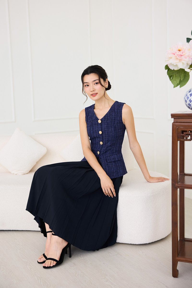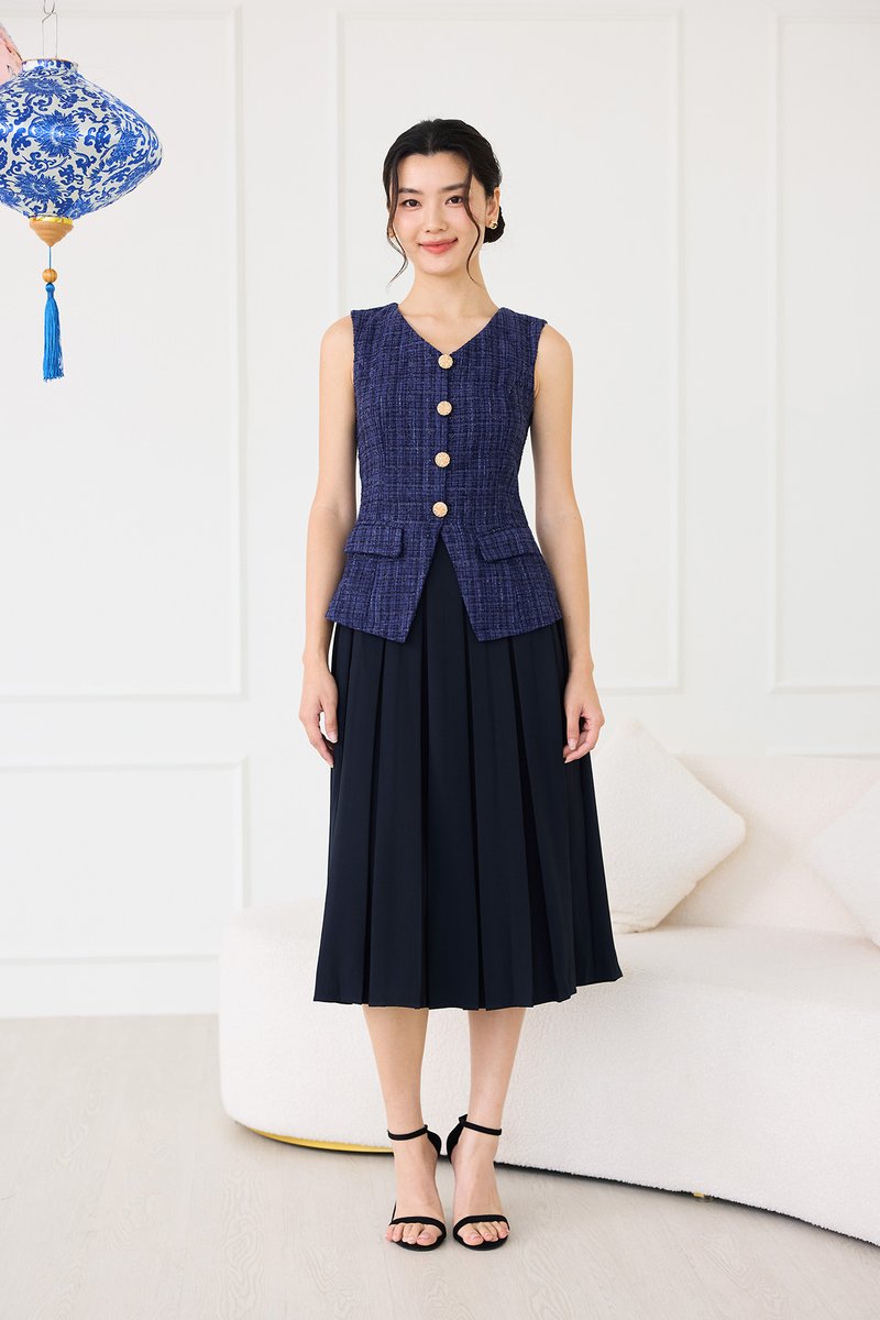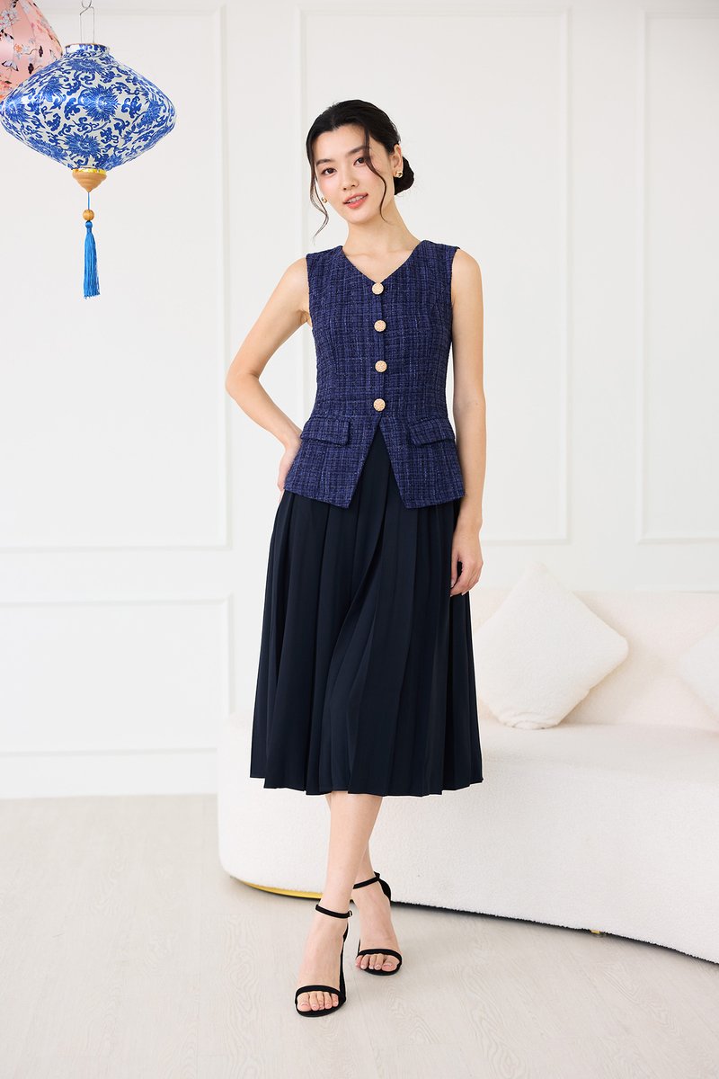 top: tweed material, non-stretchable
