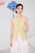 top: tweed material, non-stretchable