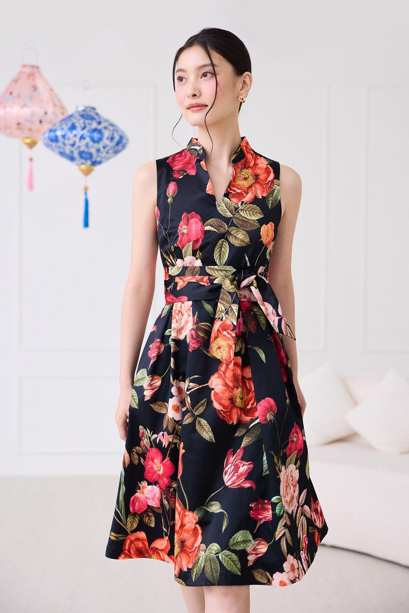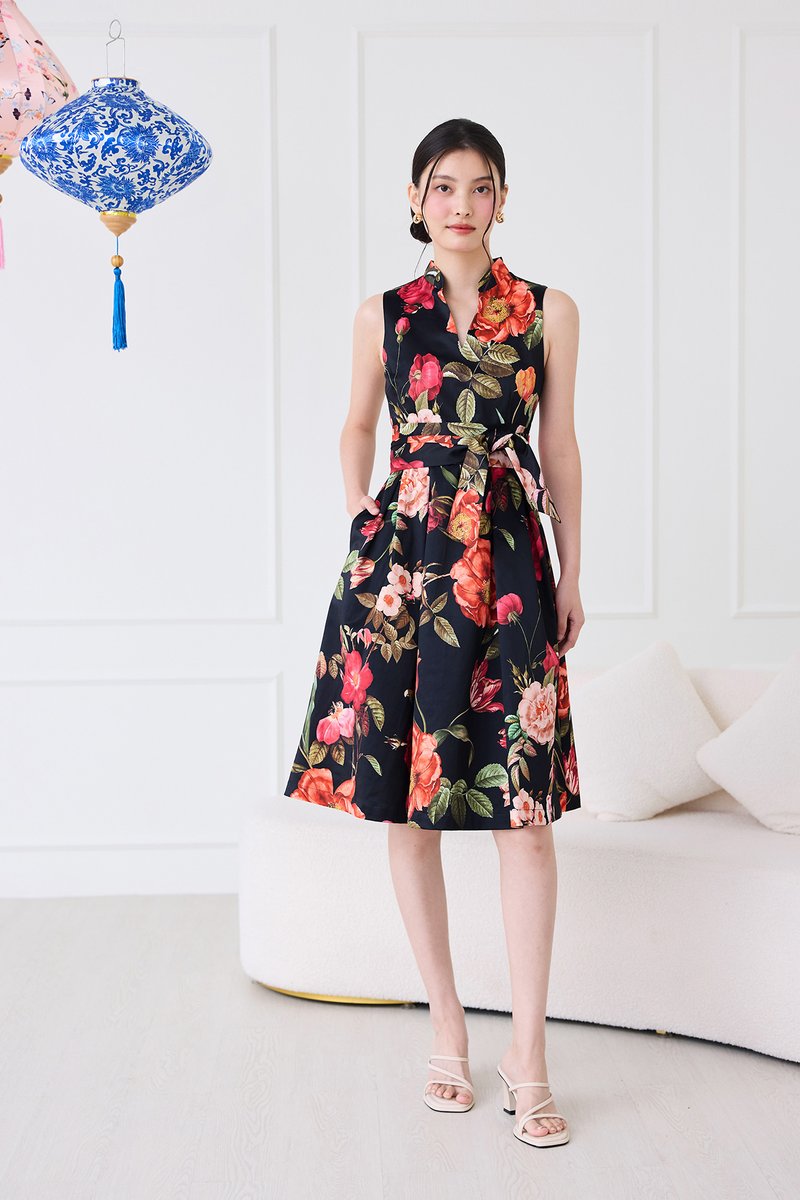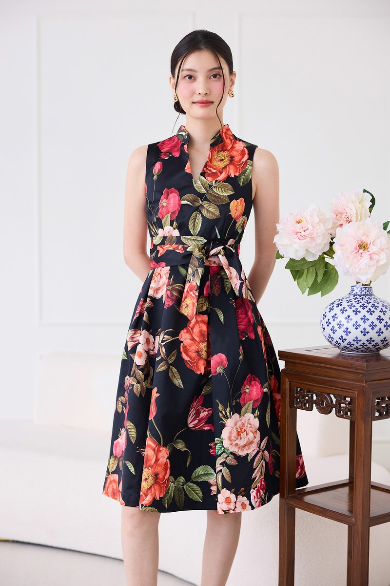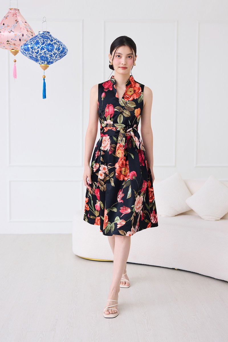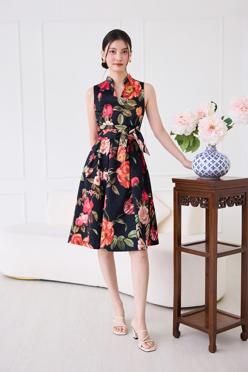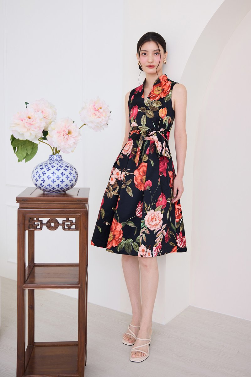 Montgomery Dress In Black Florals