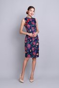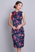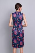 Oriental Blooms Cheongsam Dress In Blue Florals