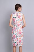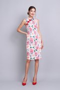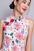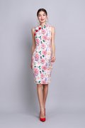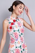 Oriental Blooms Cheongsam Dress In Ivory Florals