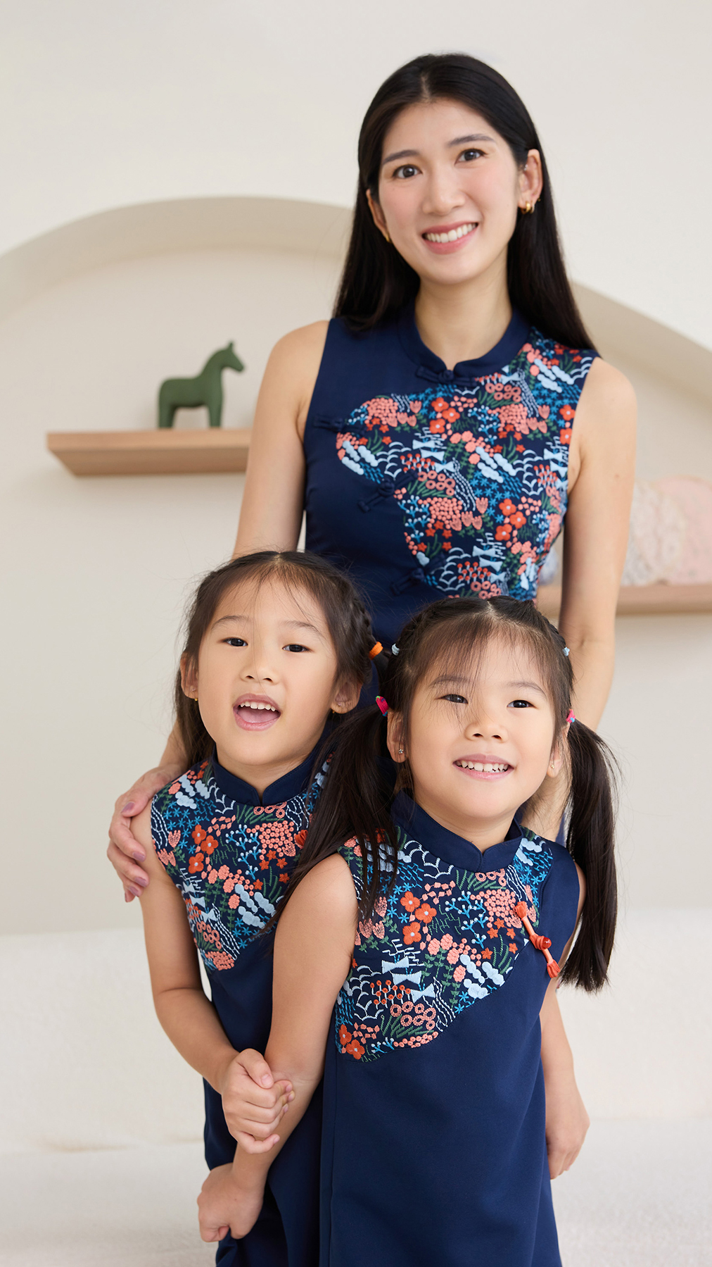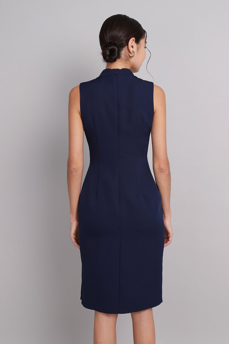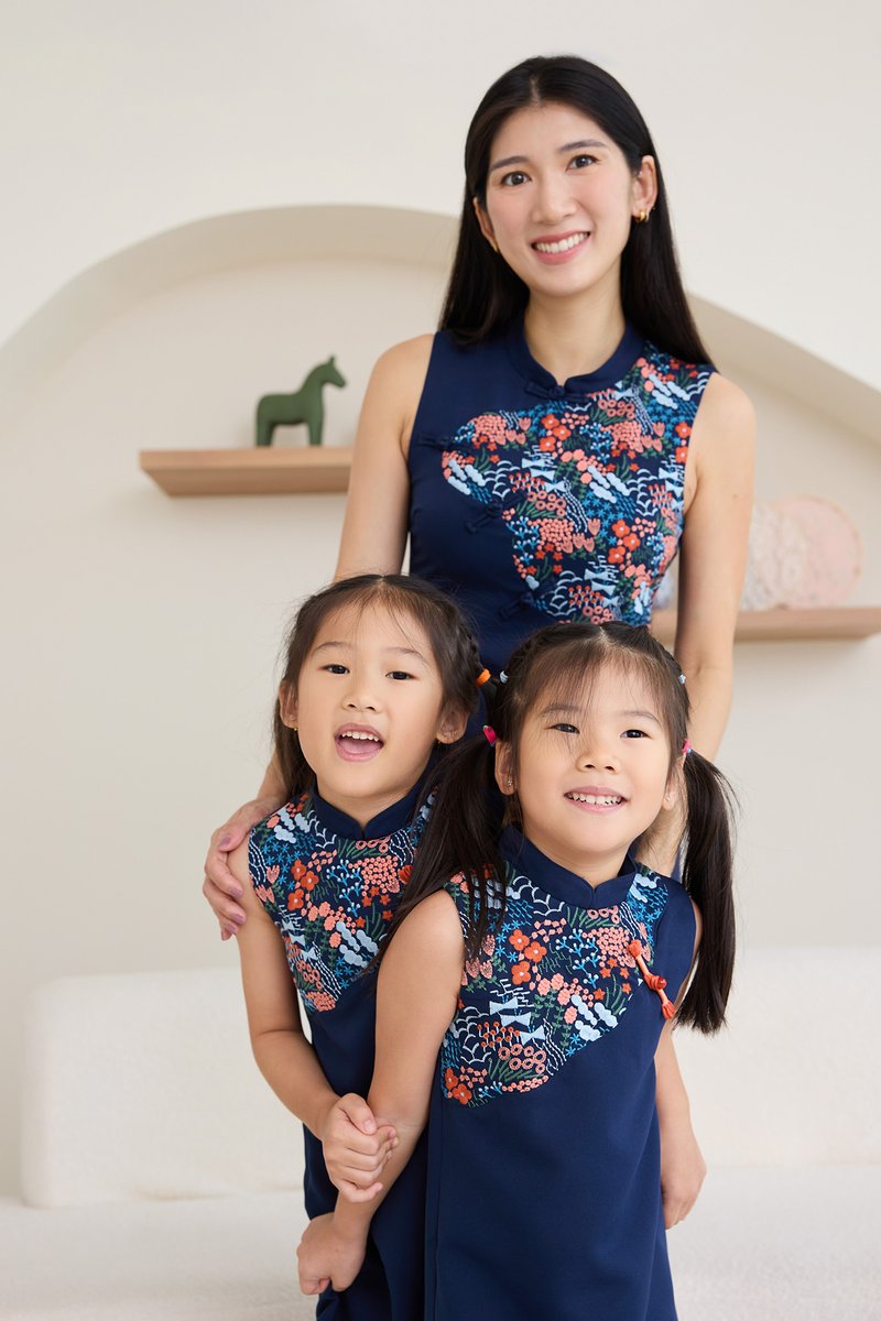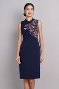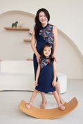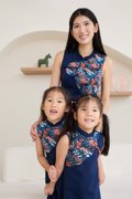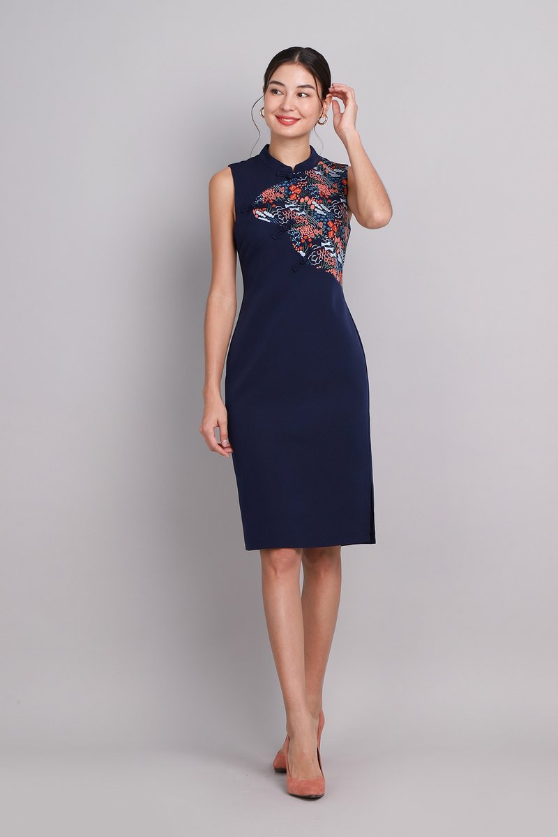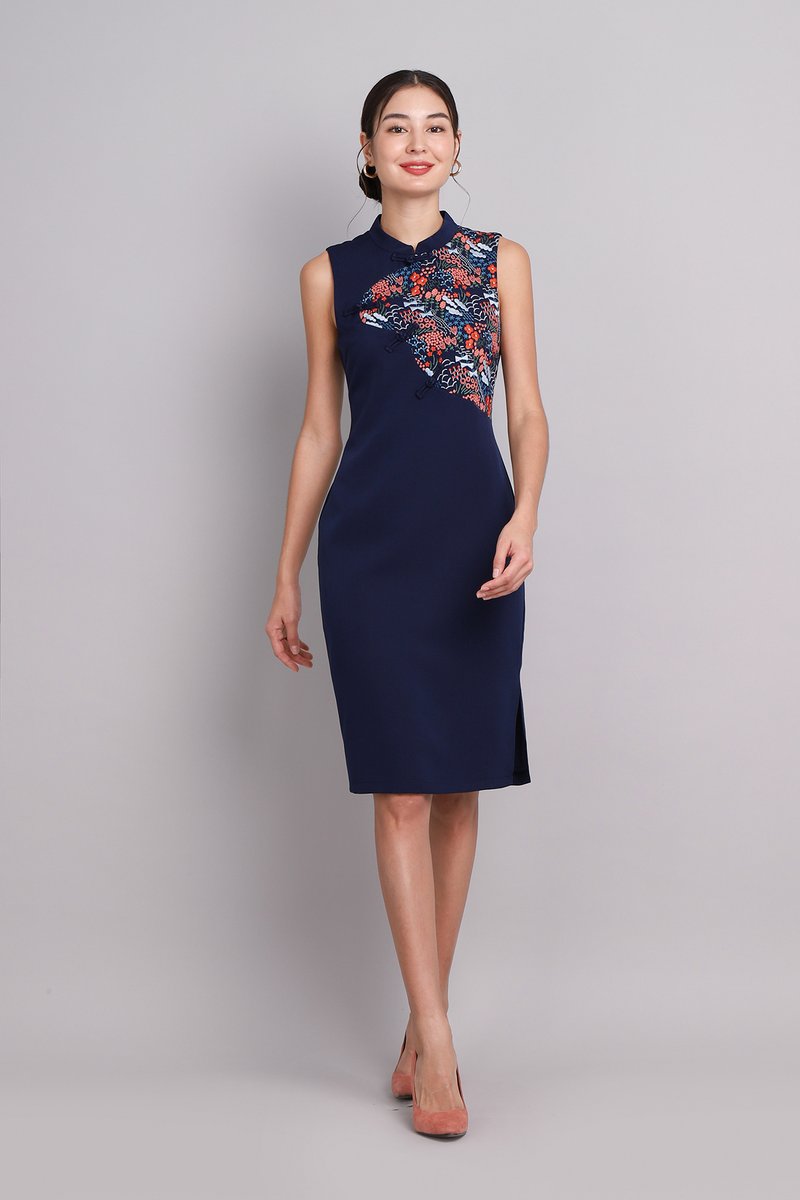 Oriental Tapestry Cheongsam Dress In Navy Blue