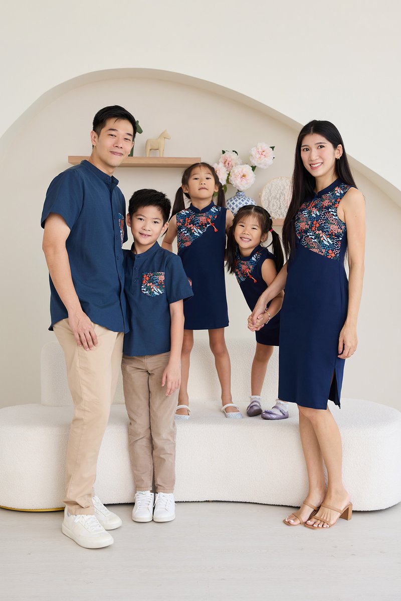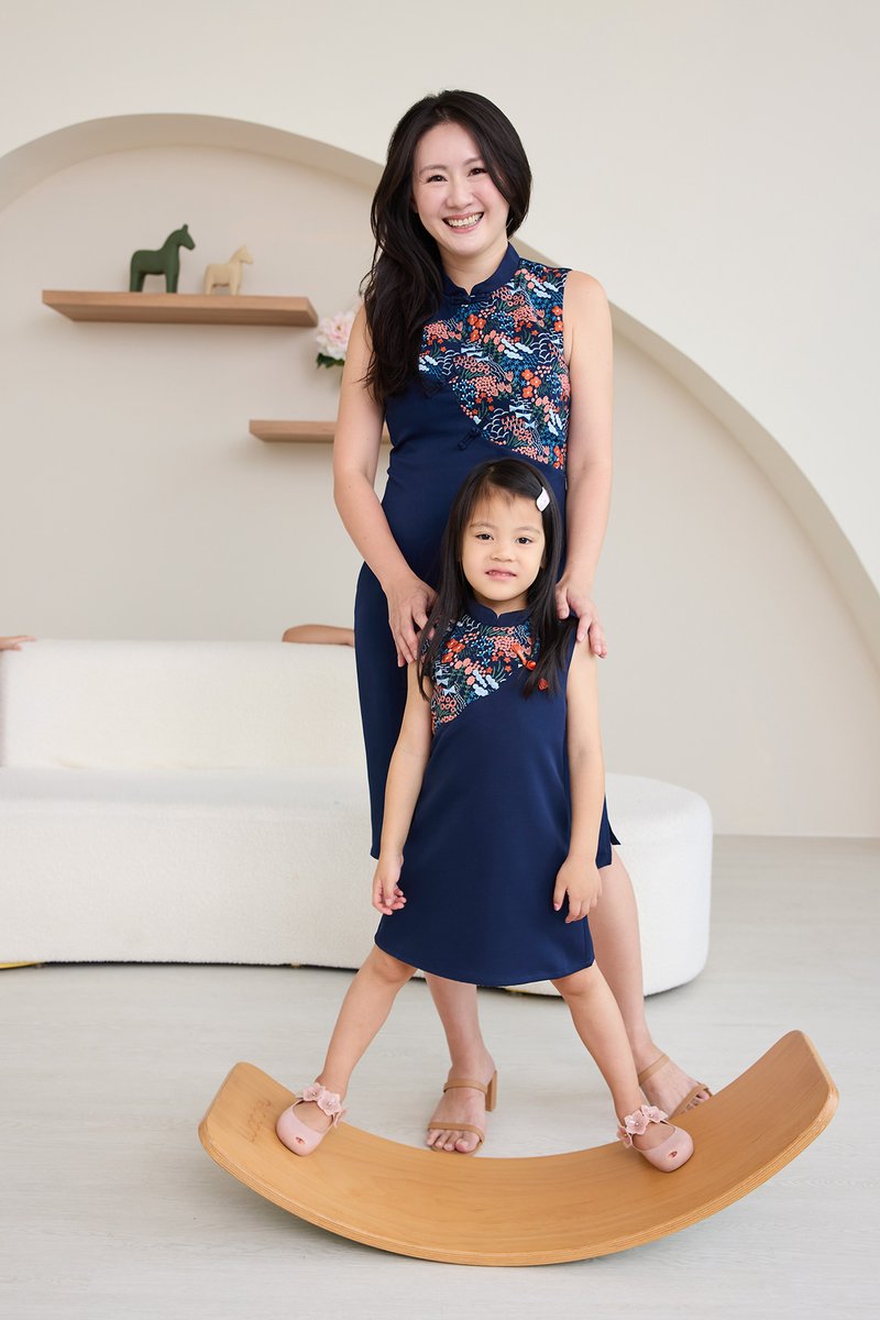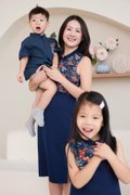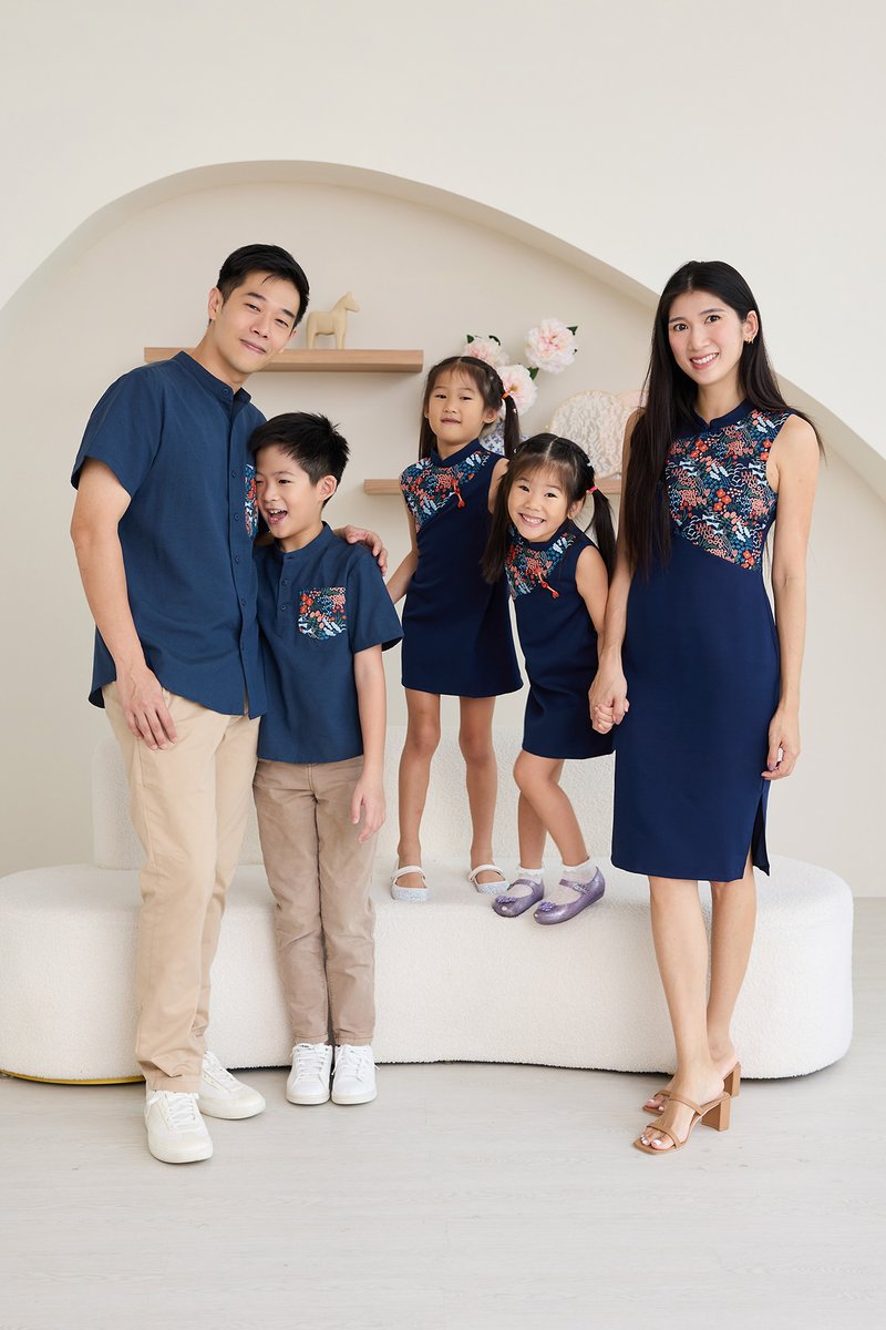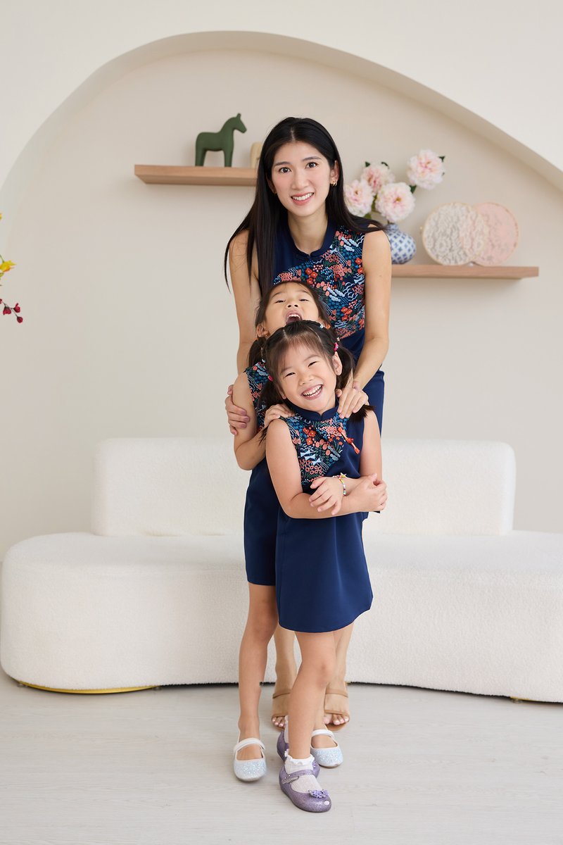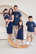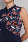 Oriental Tapestry Cheongsam Dress In Navy Blue