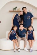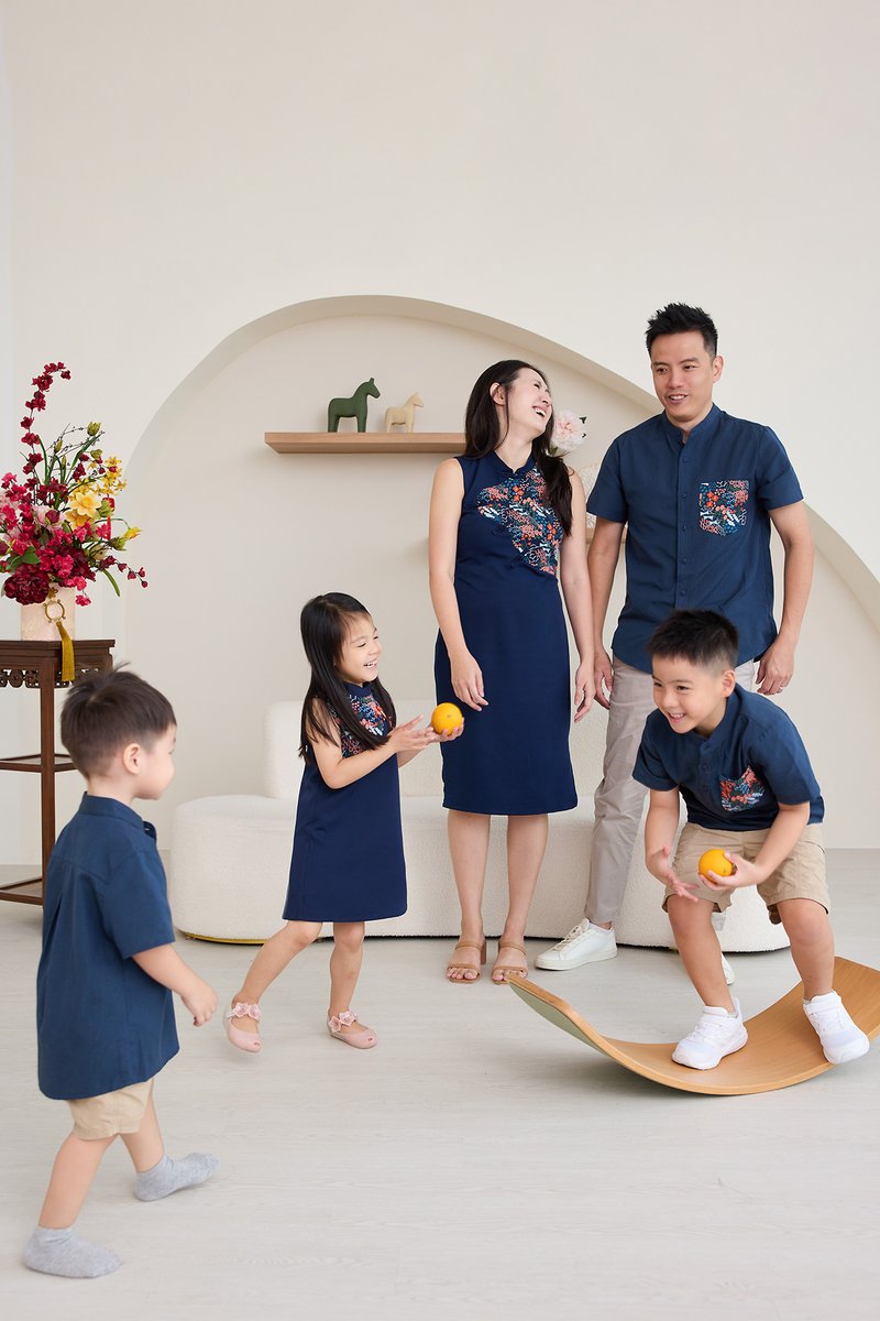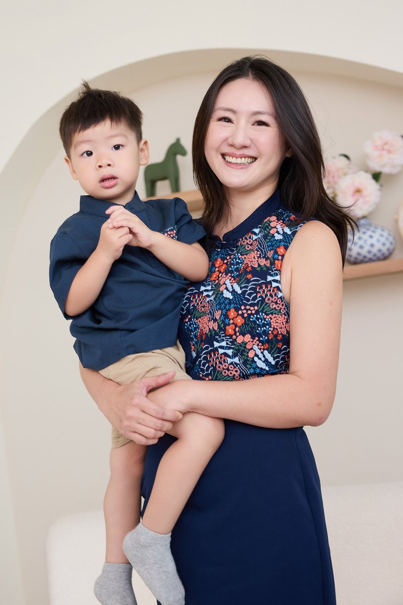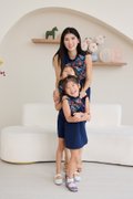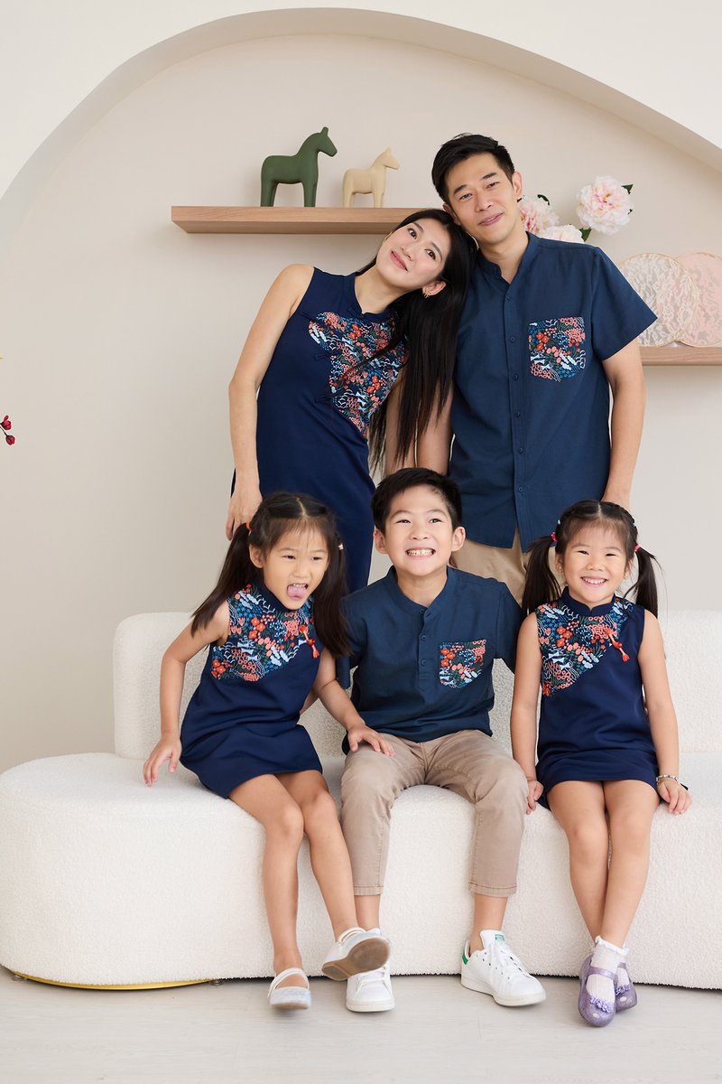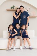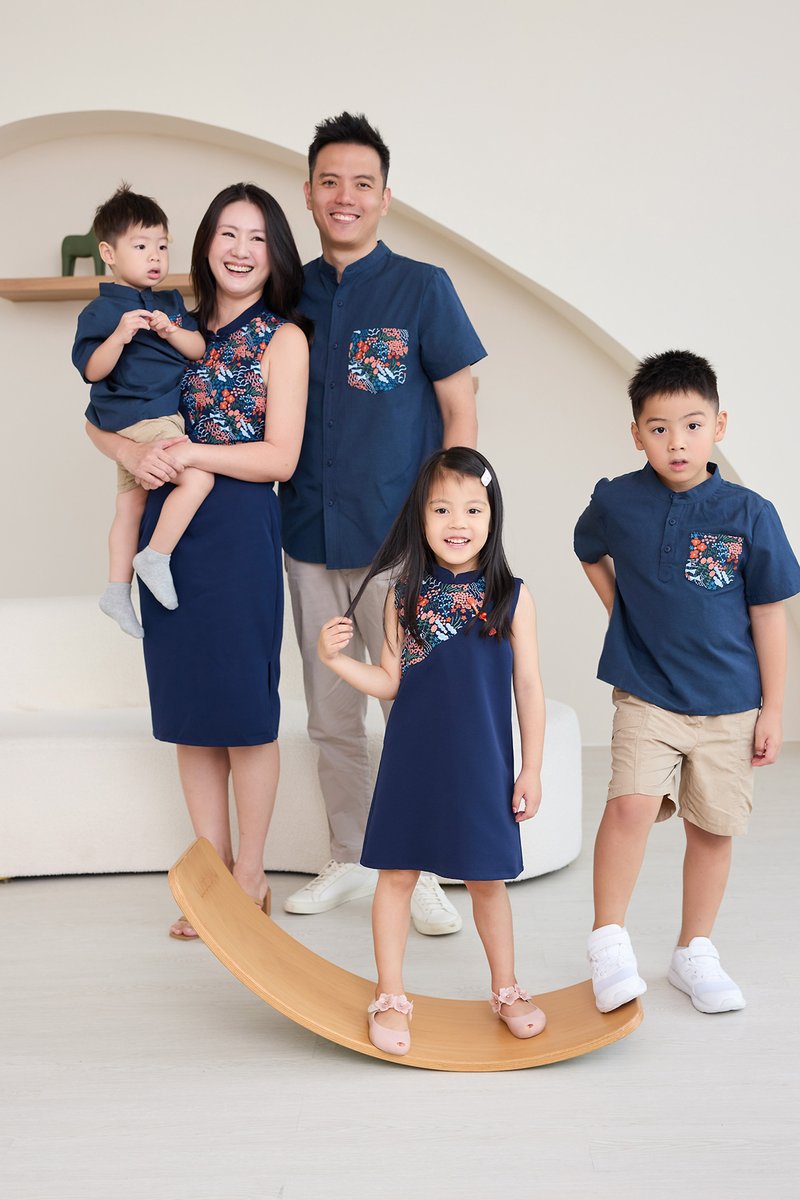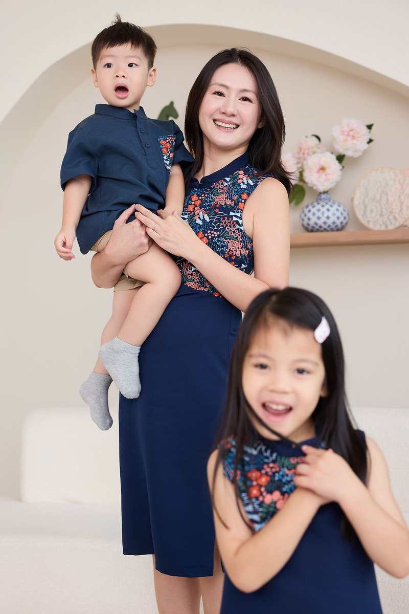 Oriental Tapestry Cheongsam Dress In Navy Blue