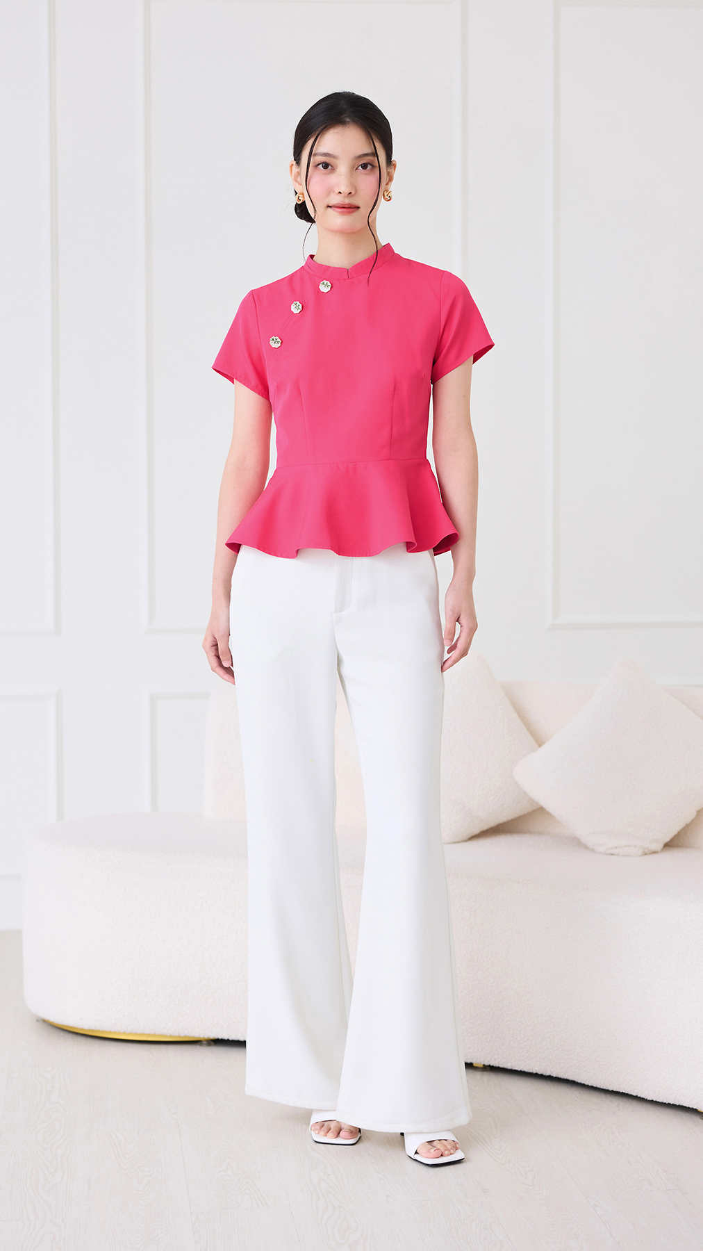Precious Moments Cheongsam Top In Magenta Pink