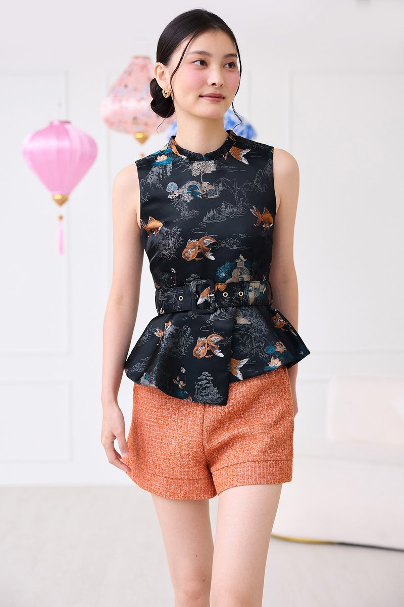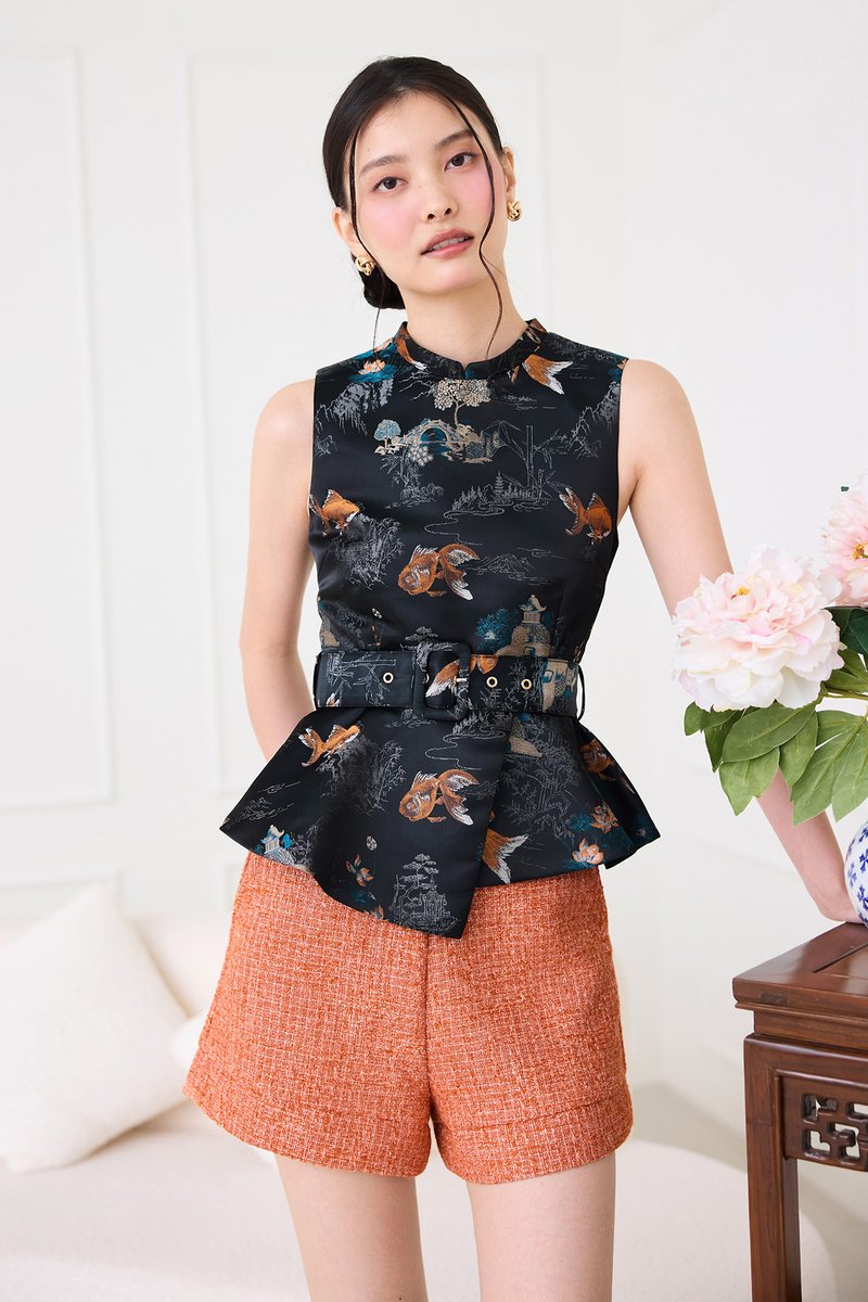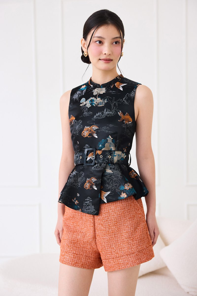 [Preorder] Season Brights Cheongsam Top In Black Prints