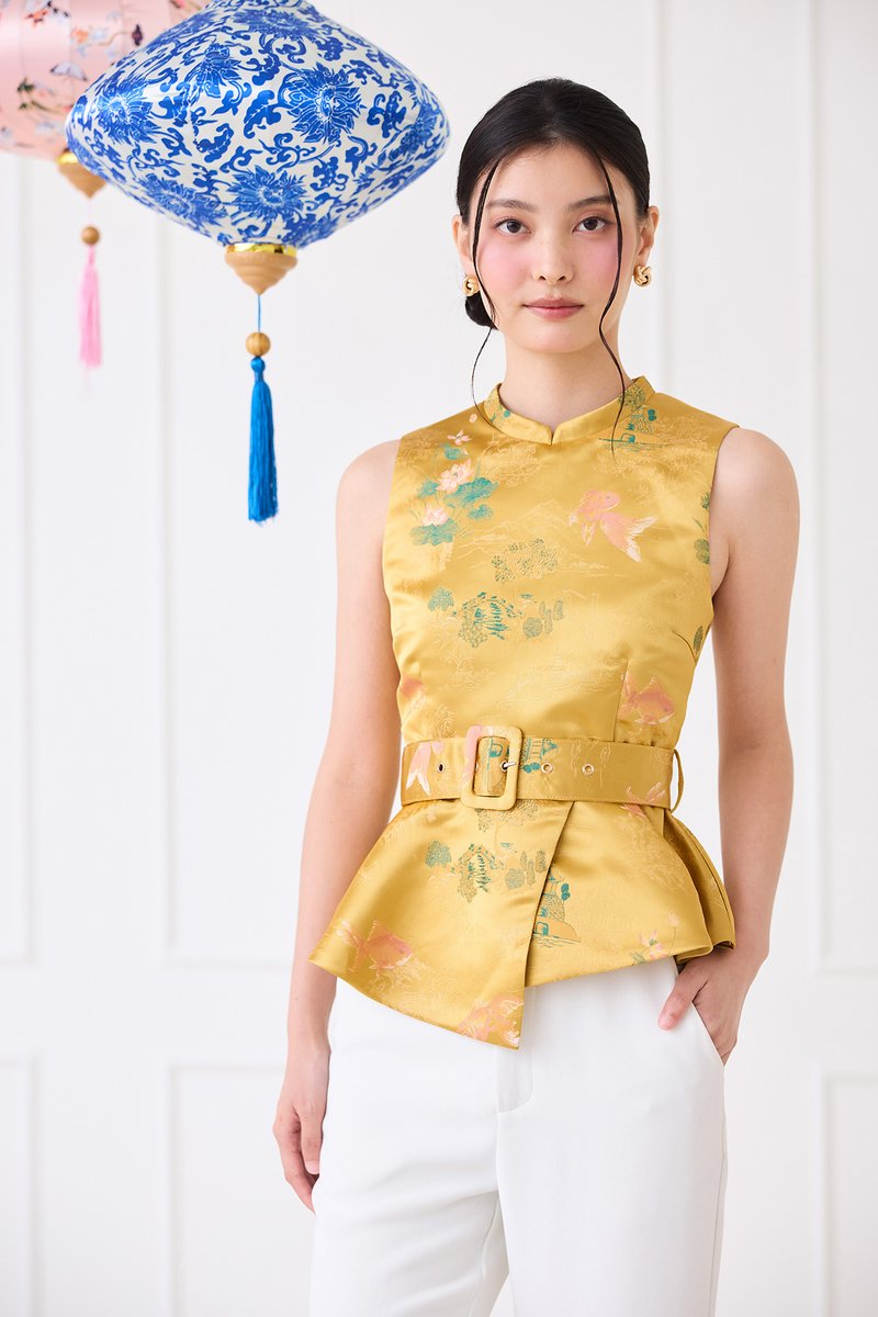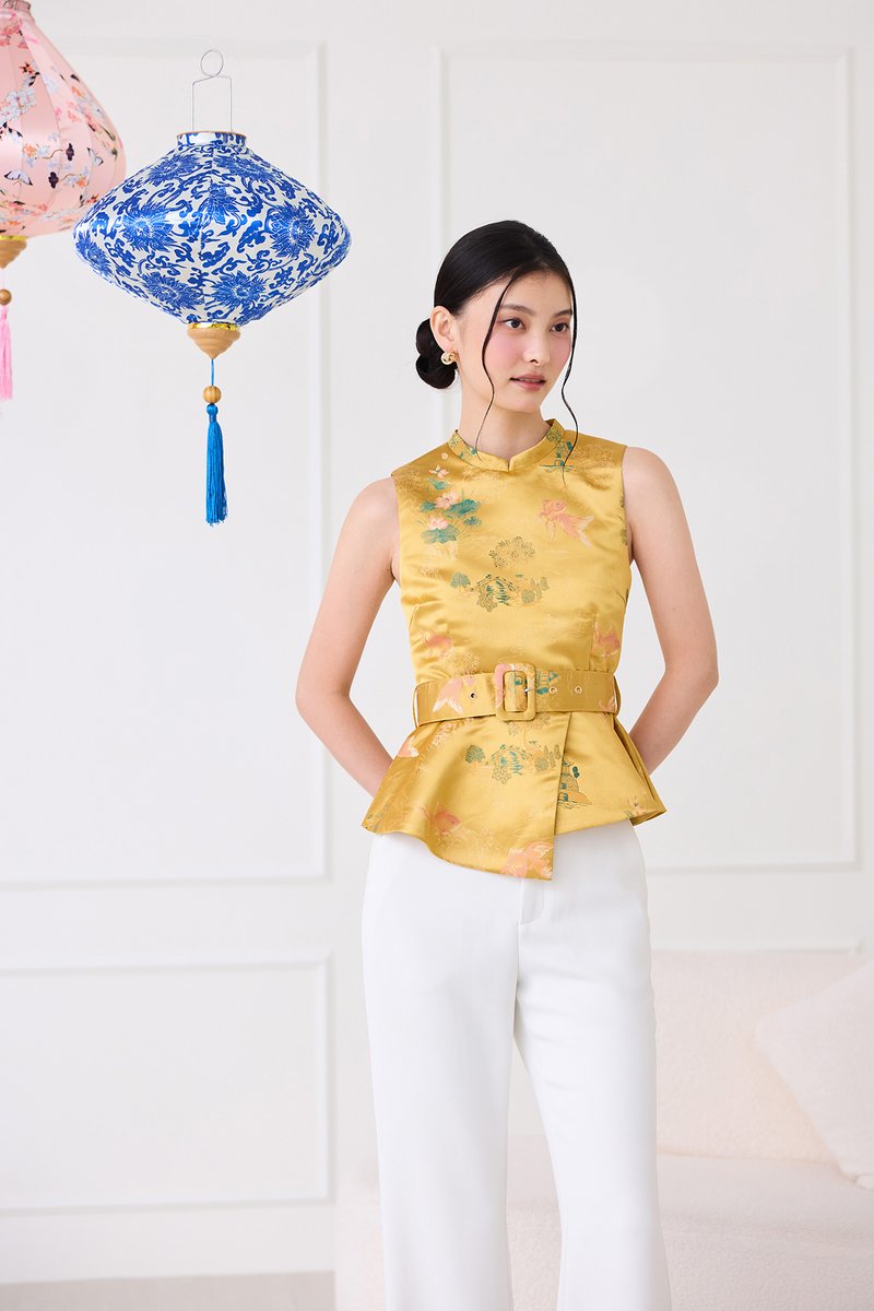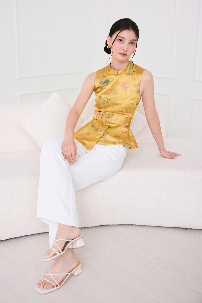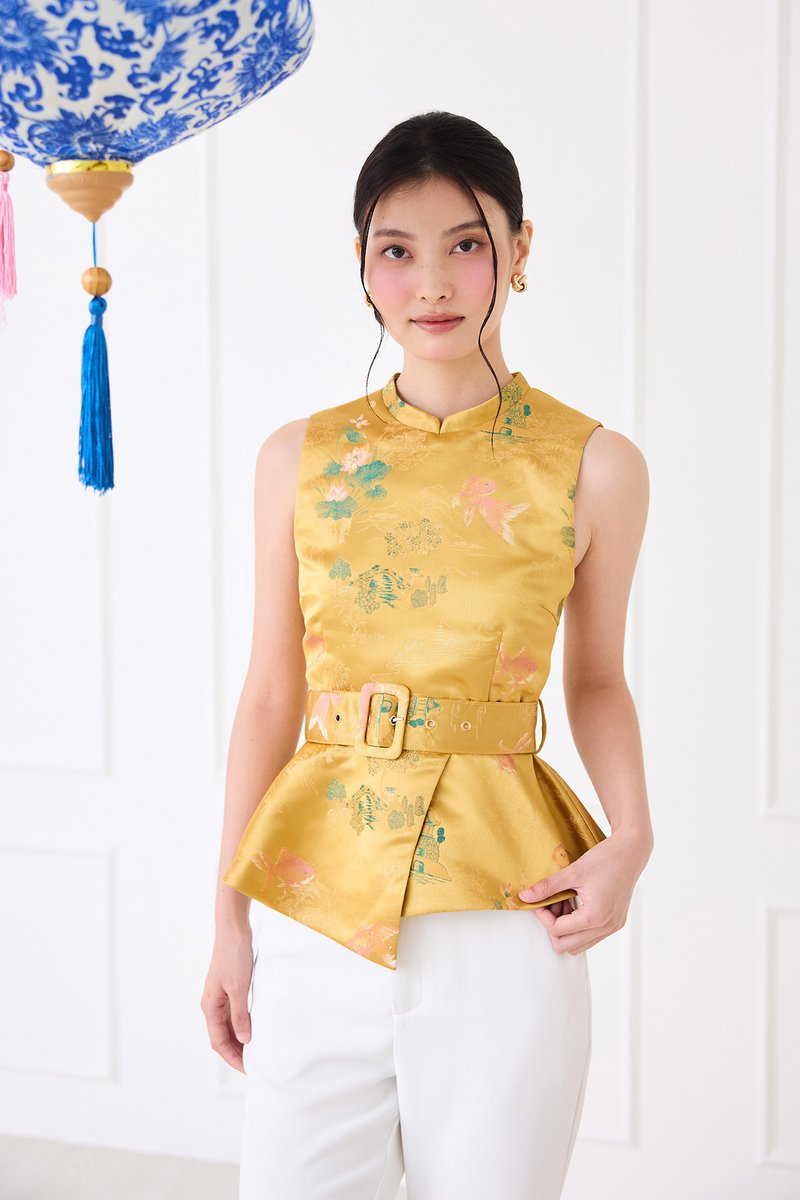 [Preorder] Season Brights Cheongsam Top In Gold Prints