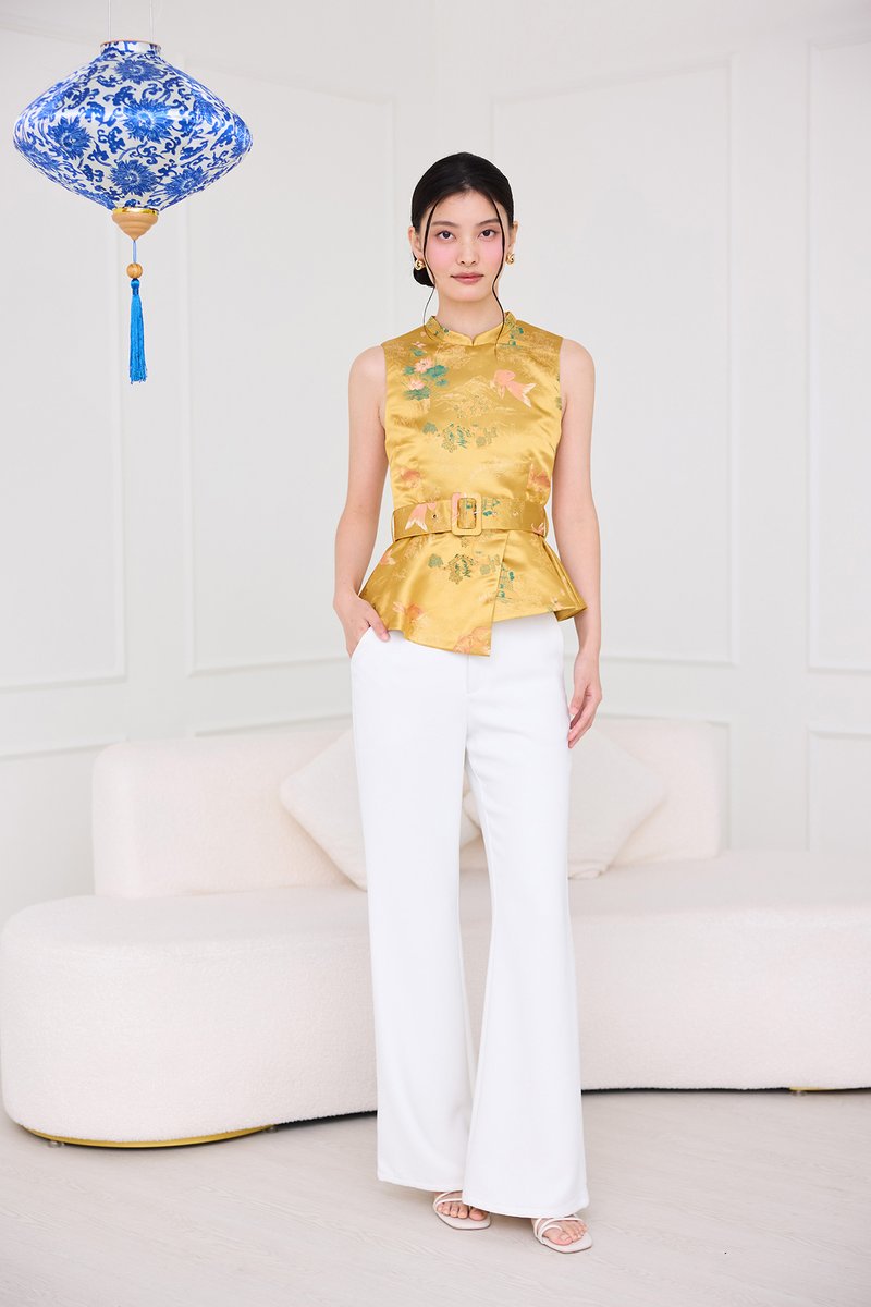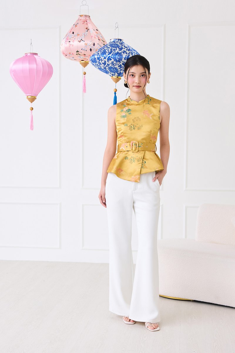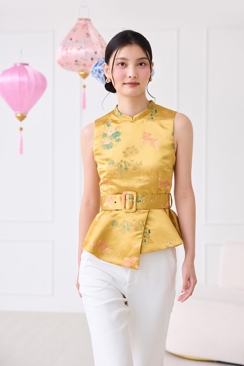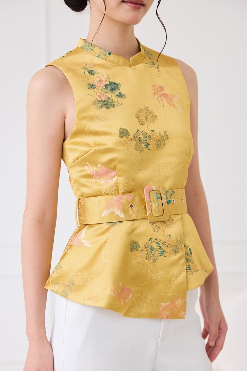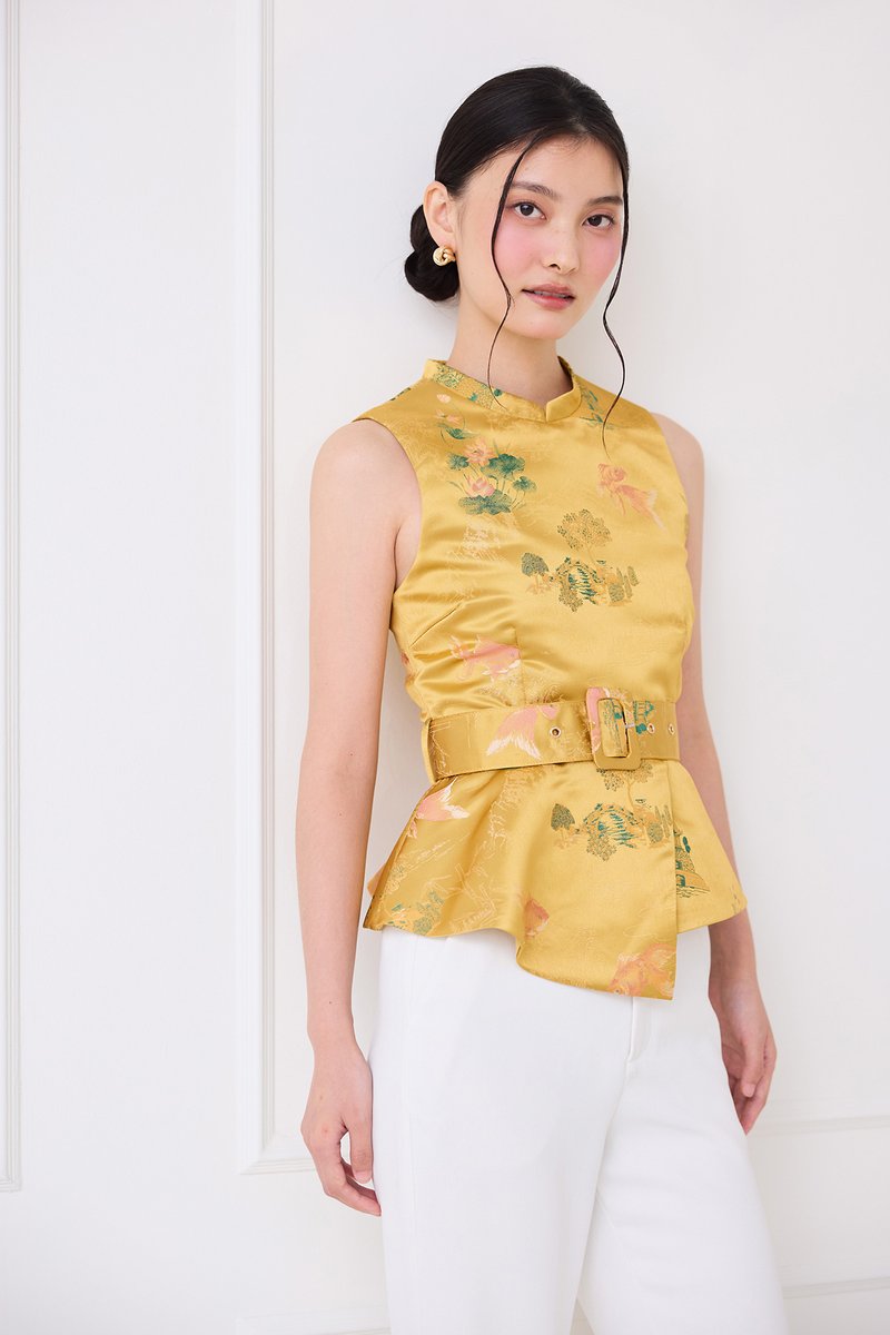 [Preorder] Season Brights Cheongsam Top In Gold Prints