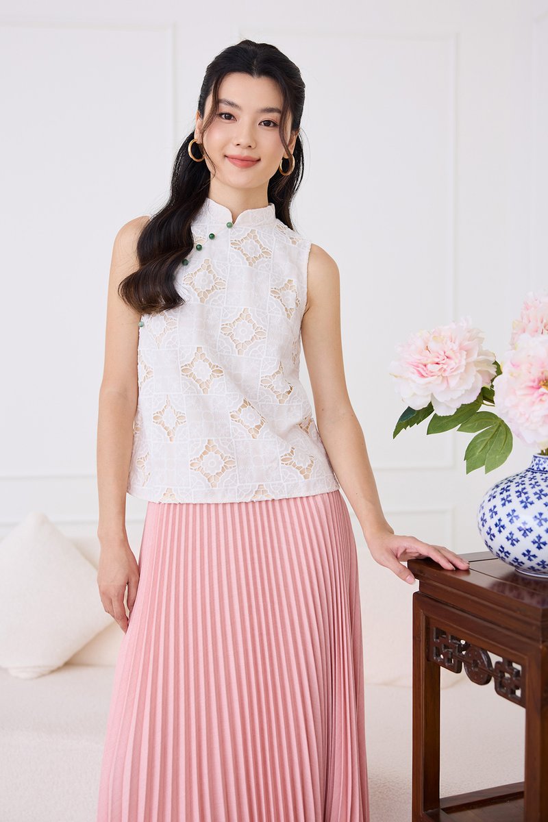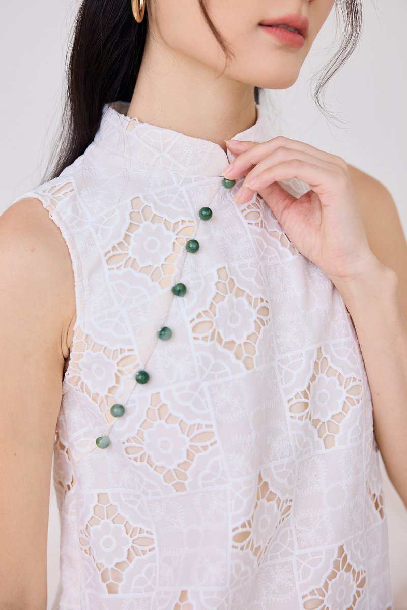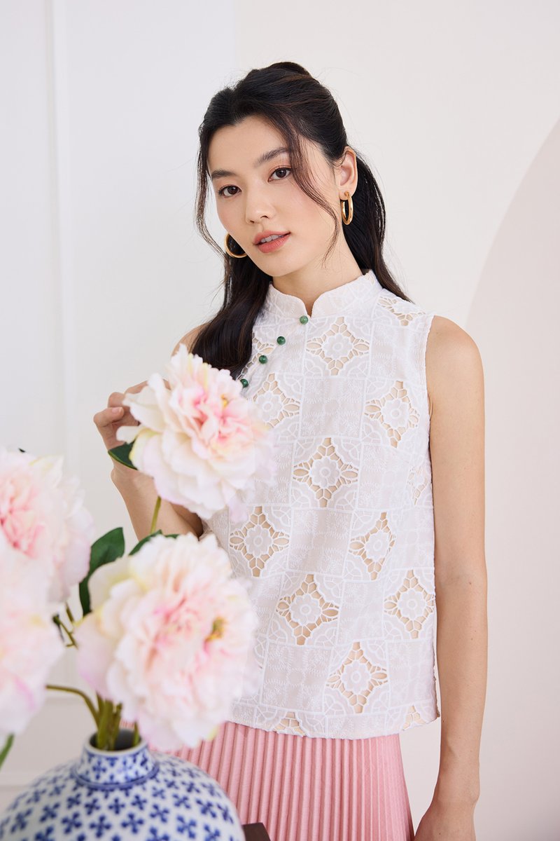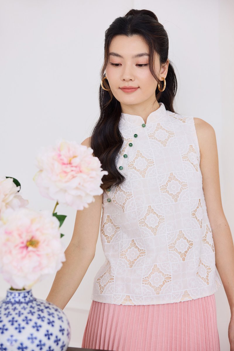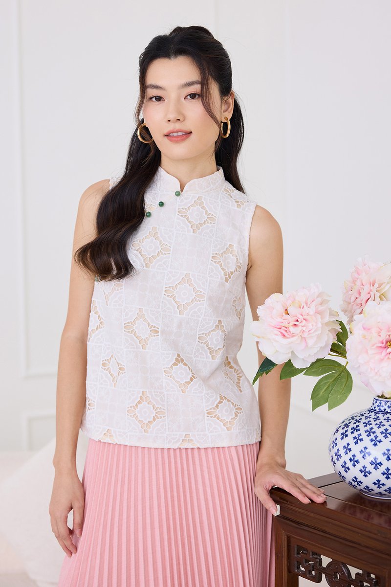 Quiet Finesse Cheongsam Top In Classic White