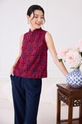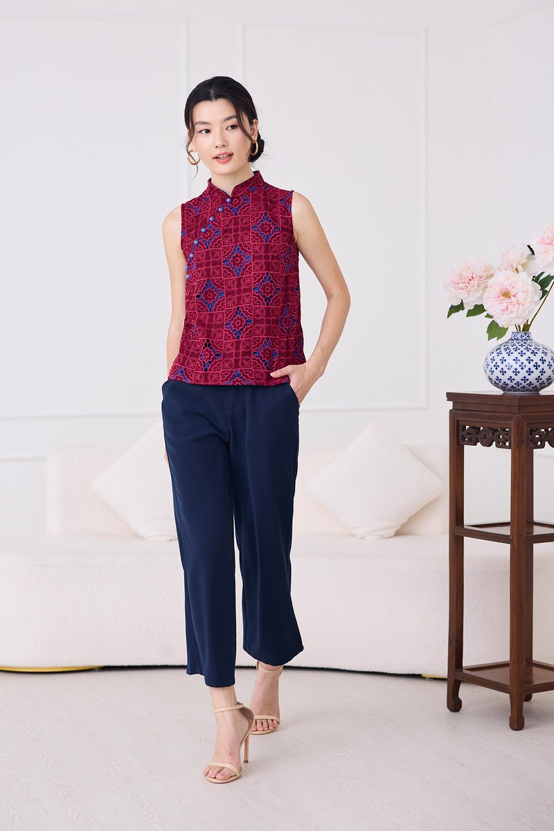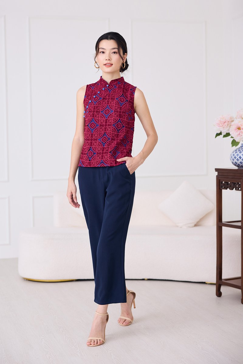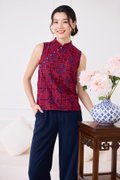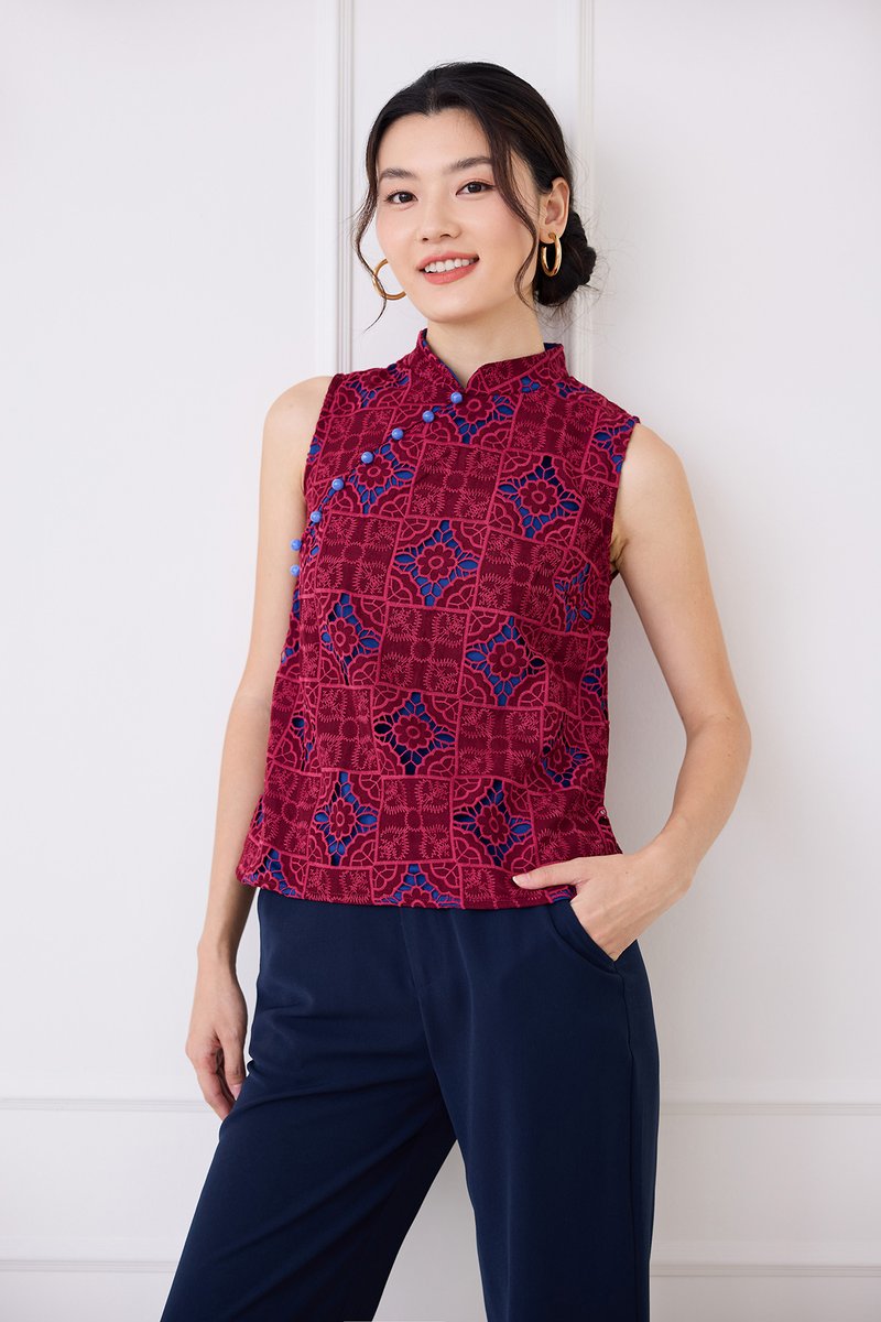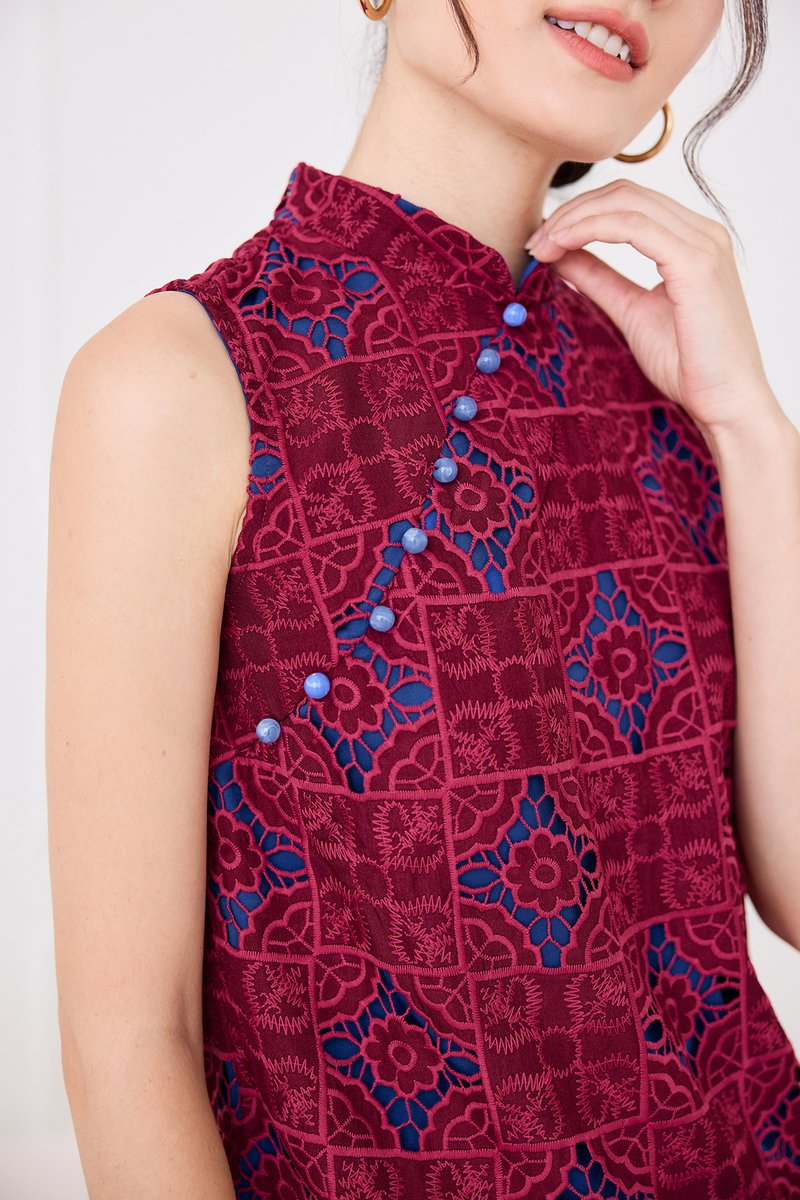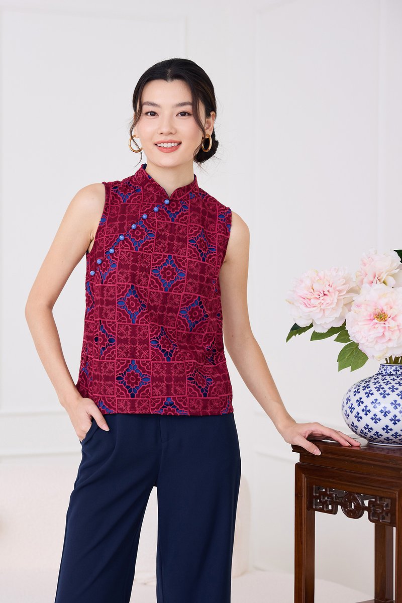 Quiet Finesse Cheongsam Top In Wine Red
