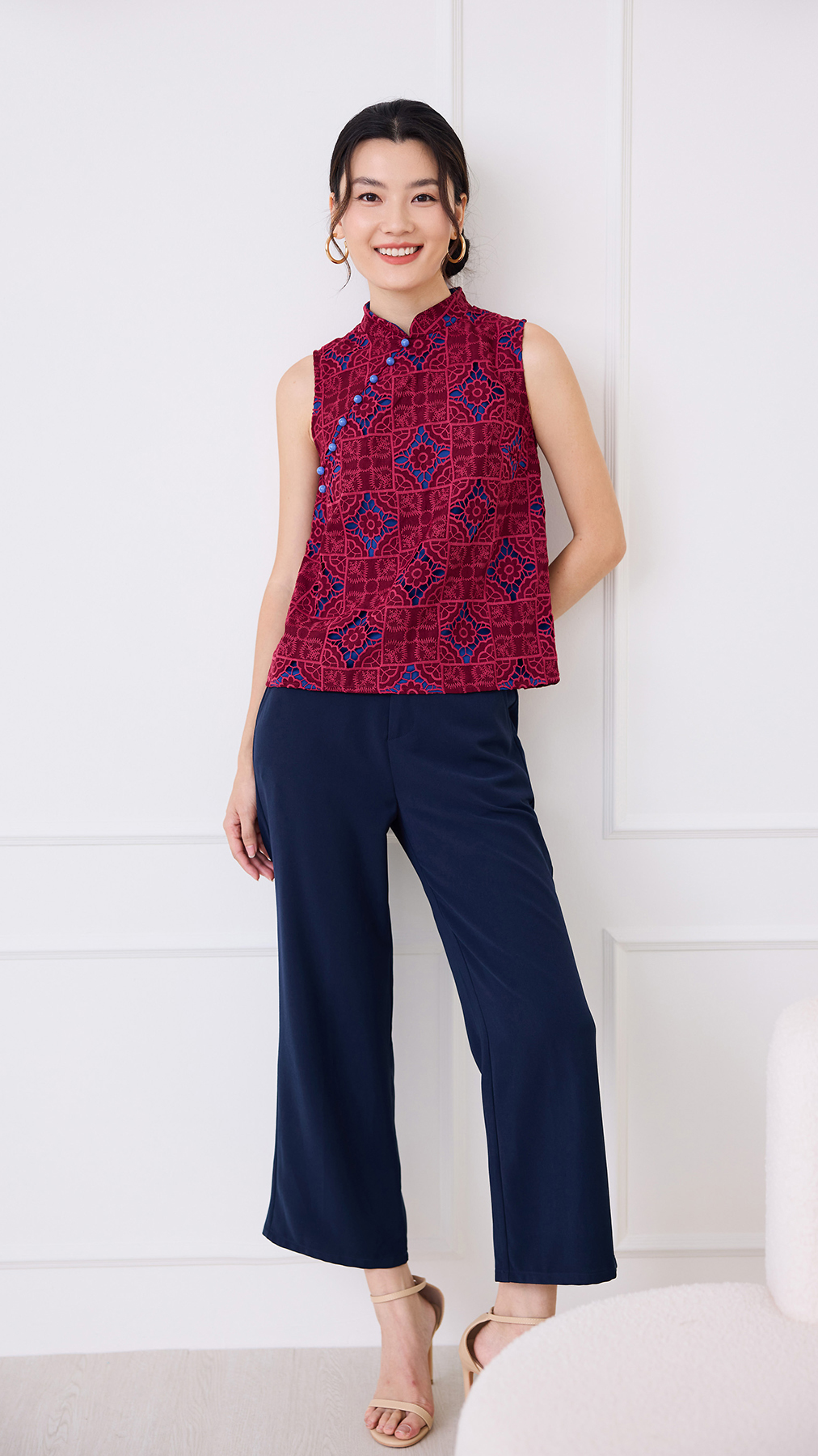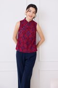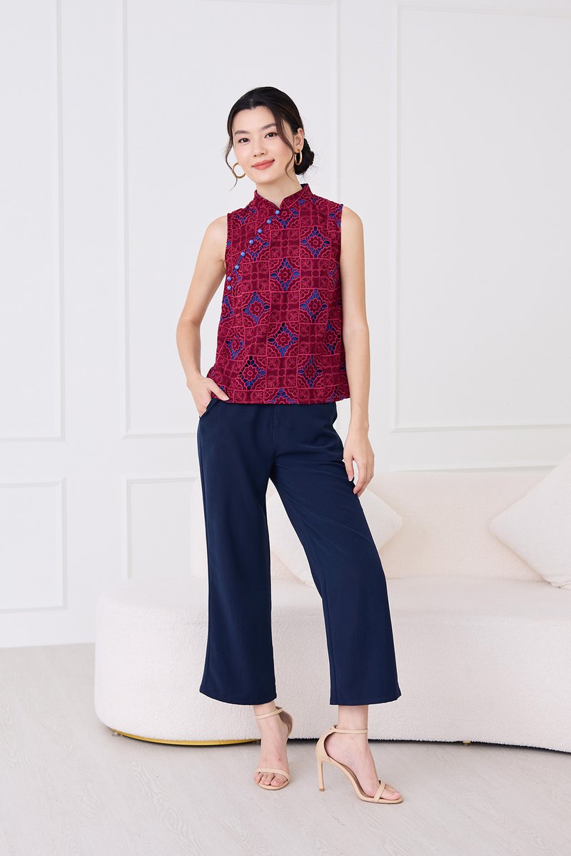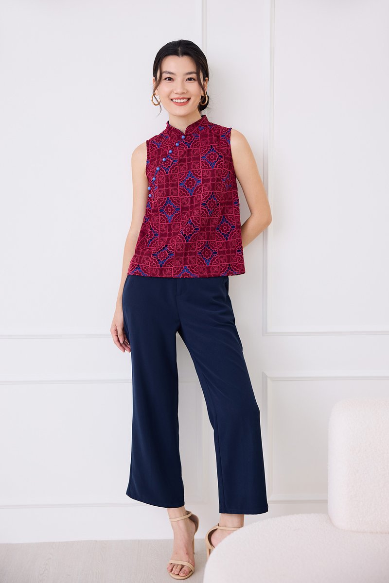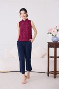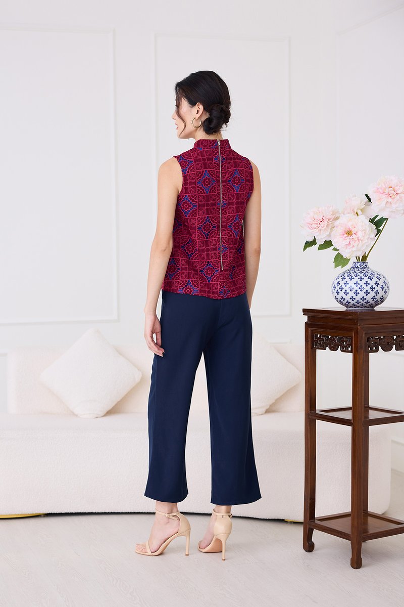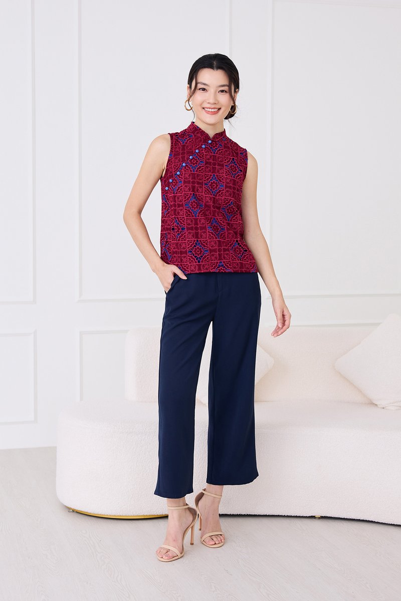 Quiet Finesse Cheongsam Top In Wine Red