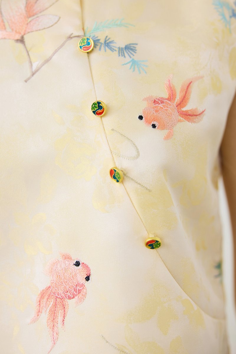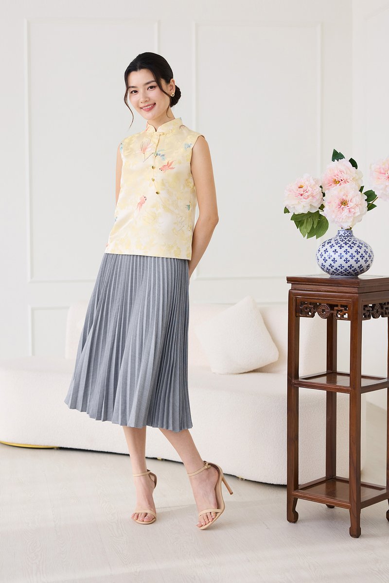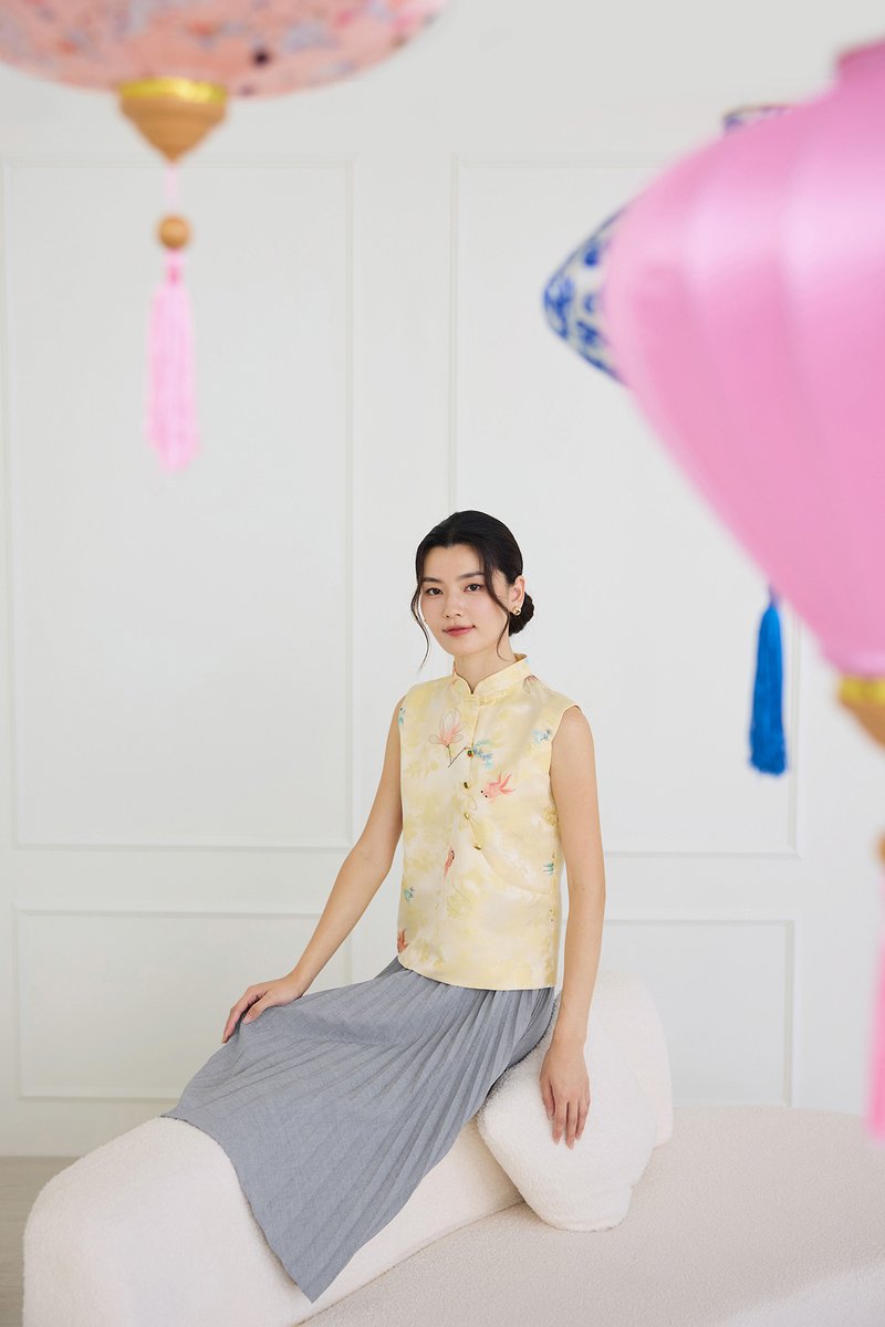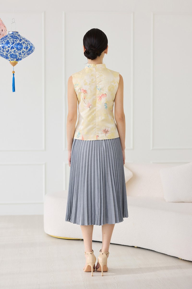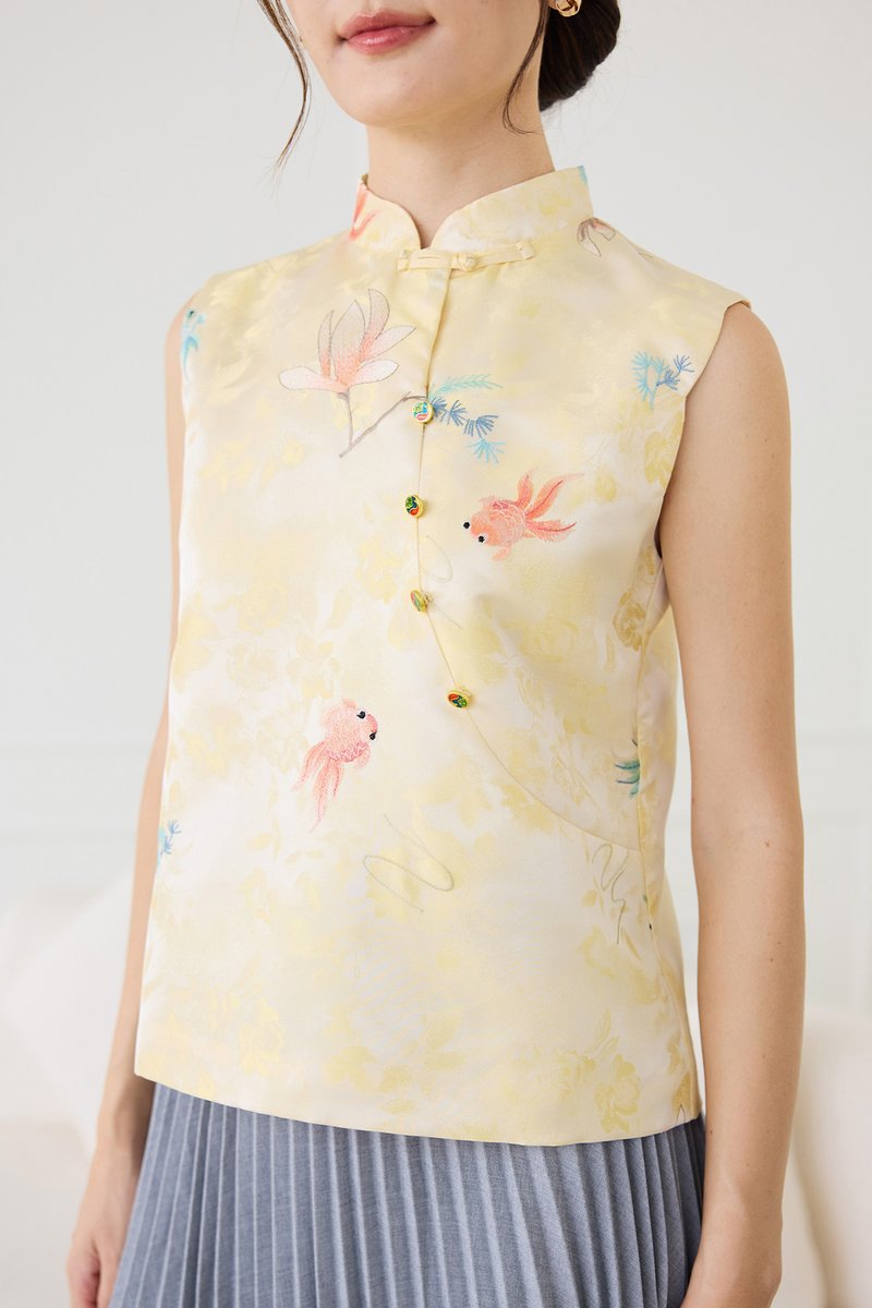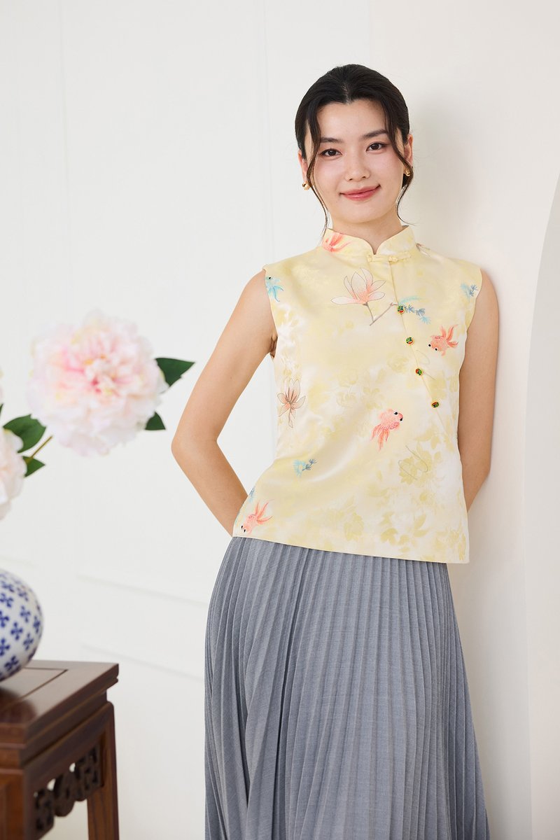 Rising Fortunes Cheongsam Top In Yellow Goldfish Prints