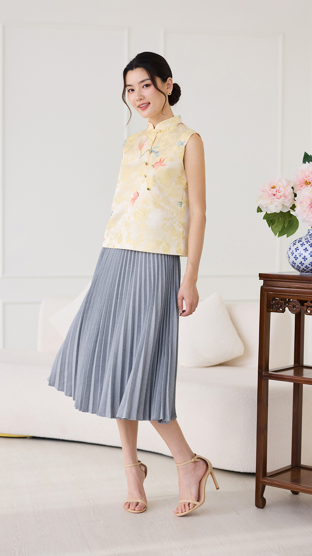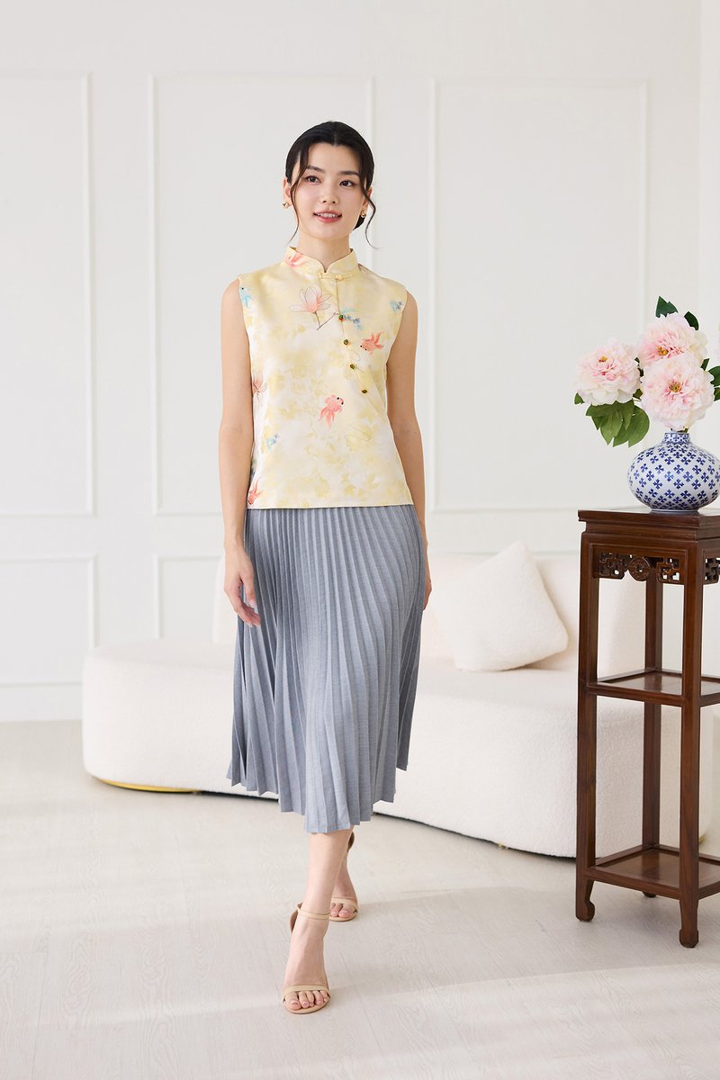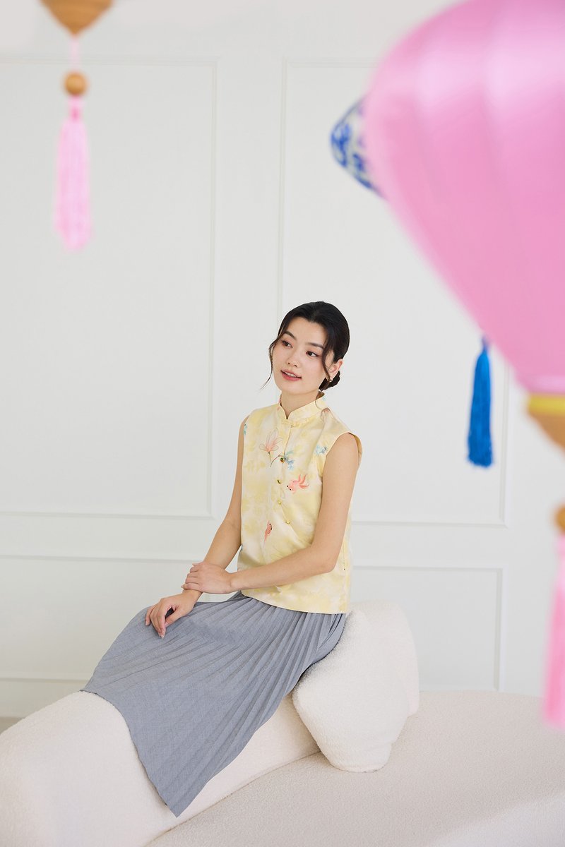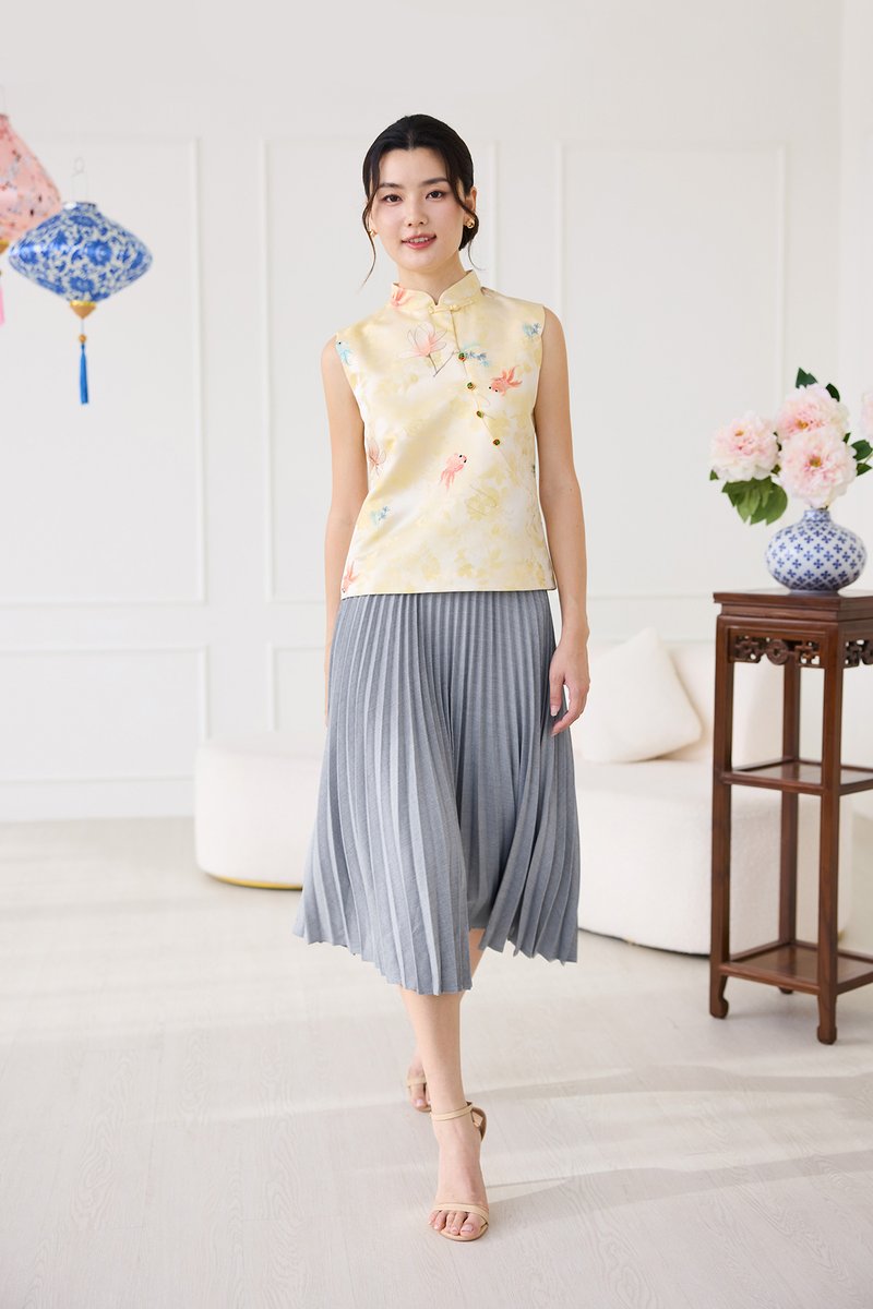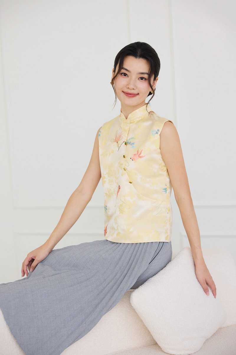 Rising Fortunes Cheongsam Top In Yellow Goldfish Prints