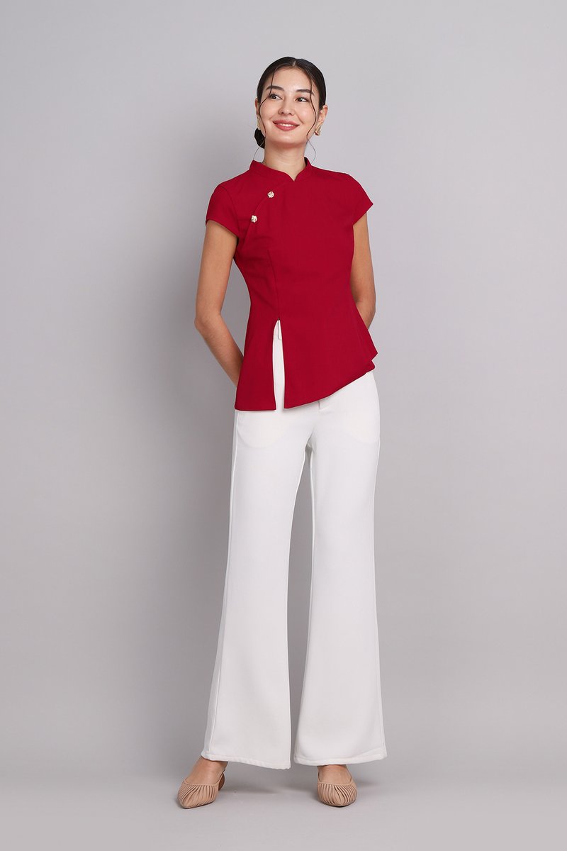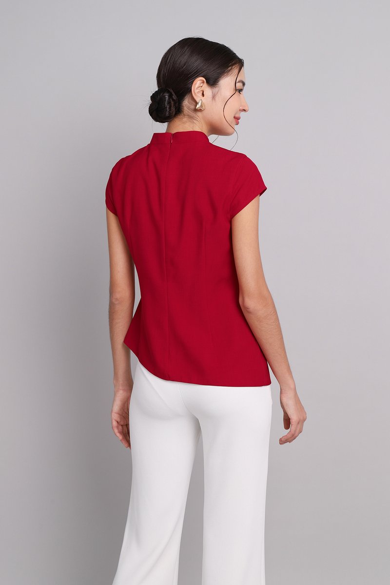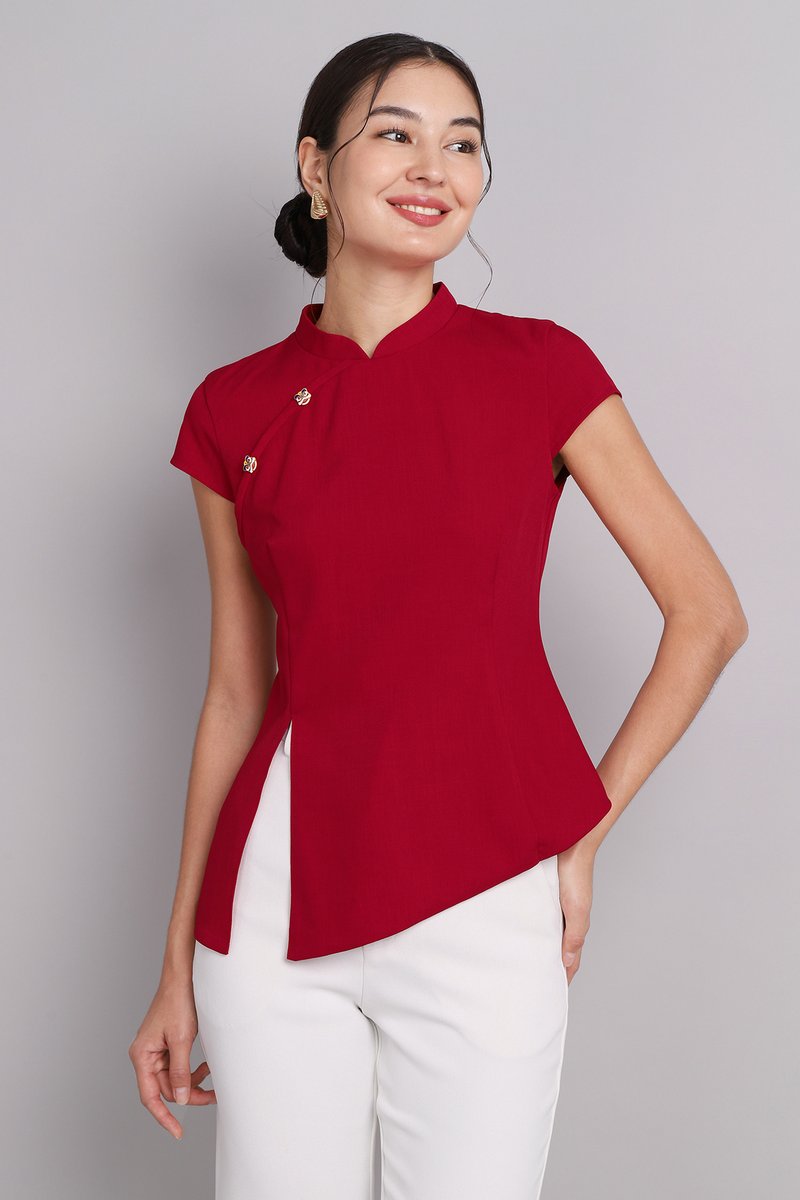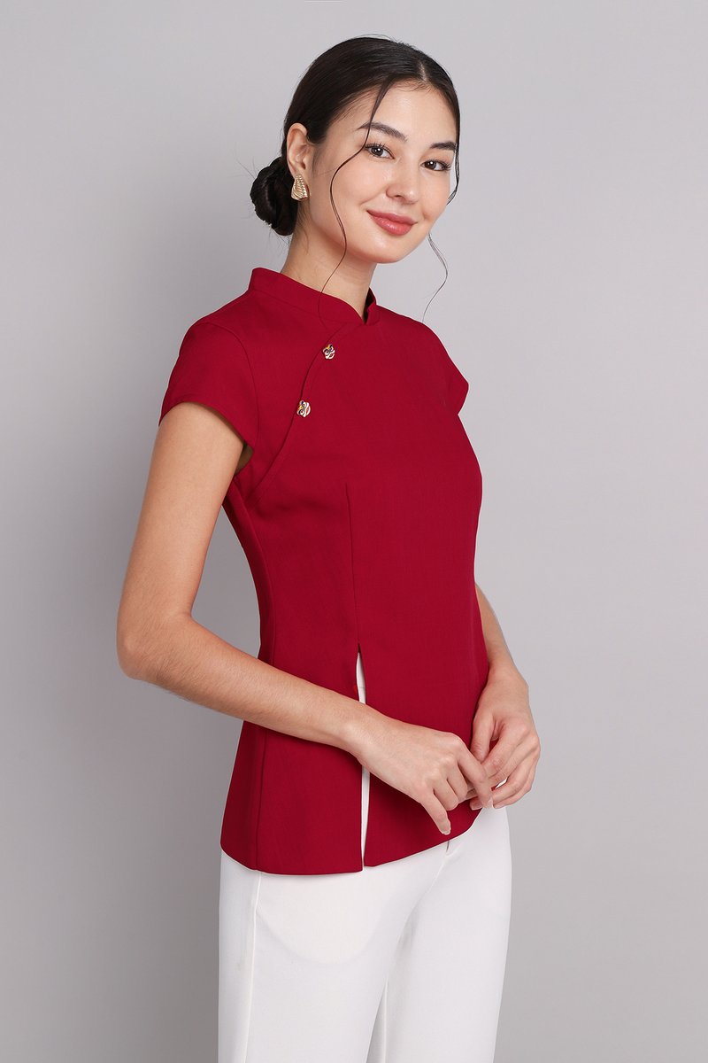 Roaring Good Times Cheongsam Top In Deep Red
