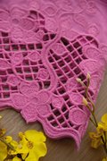 cotton linen blend material with crochet lace, slightly stretchable