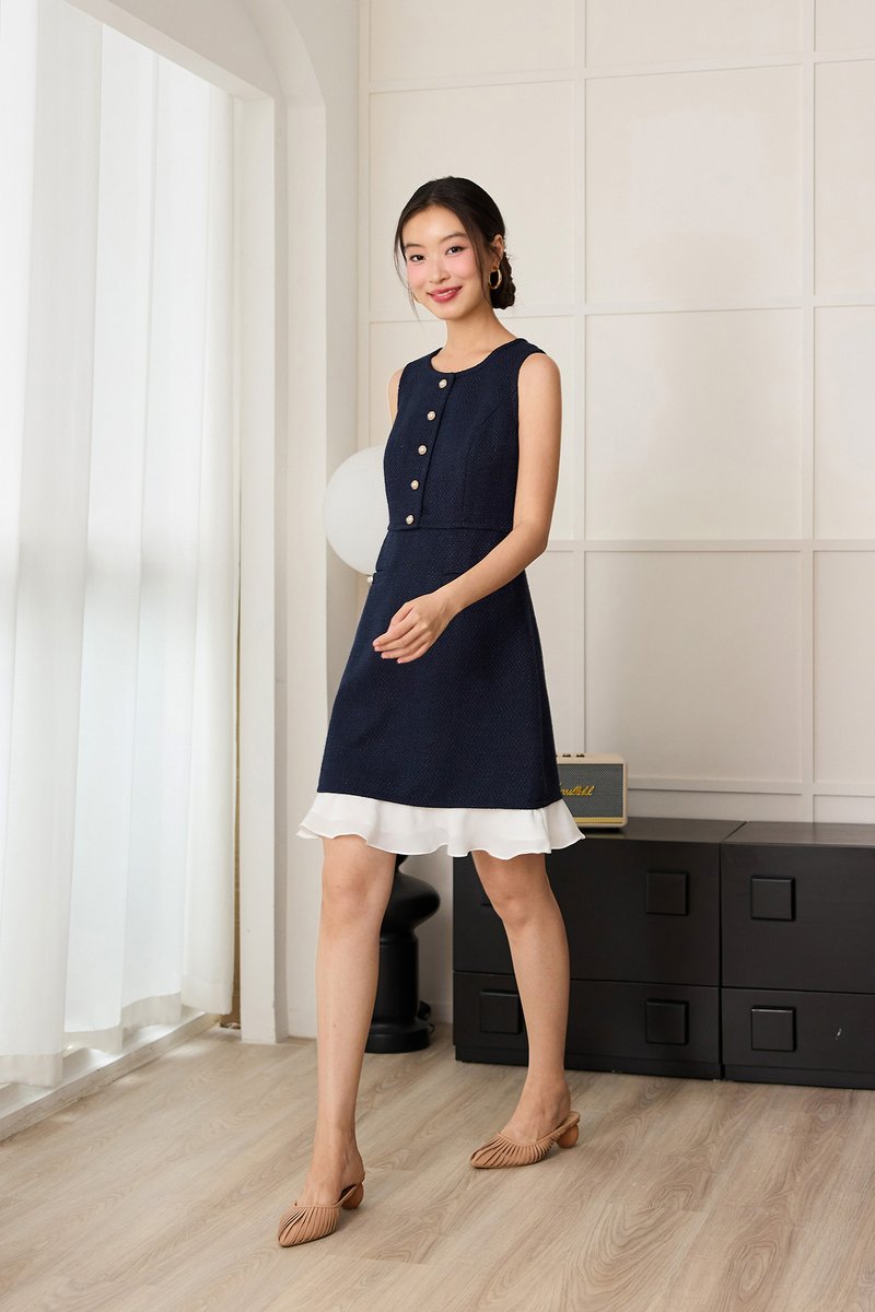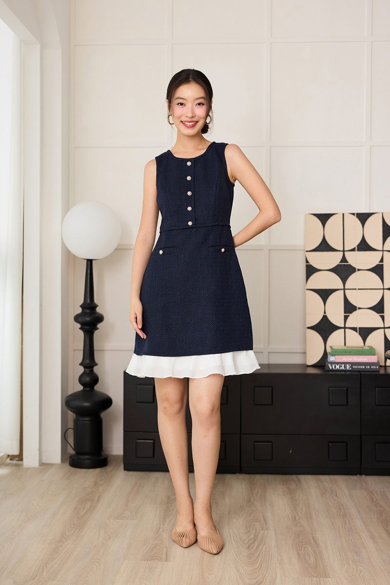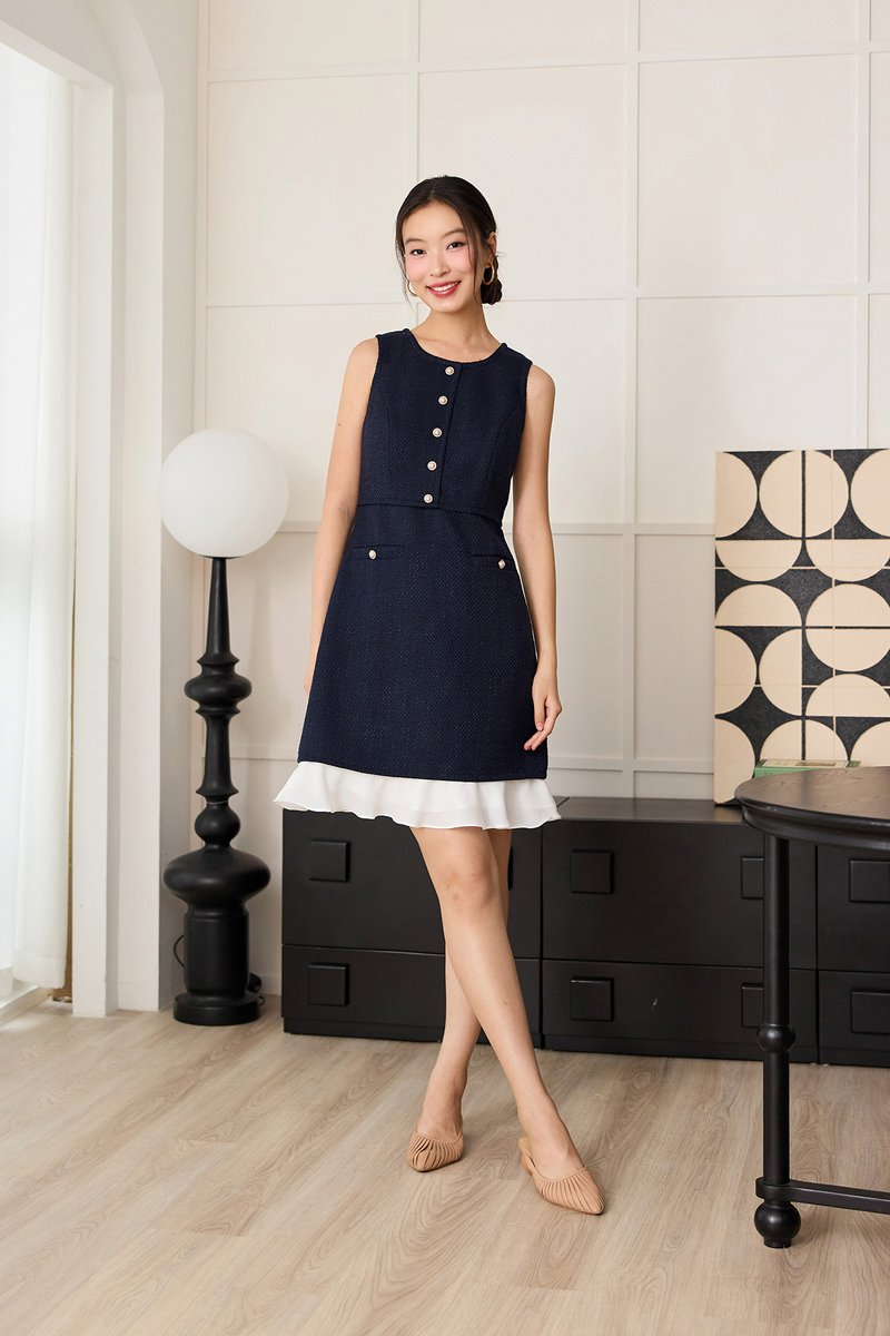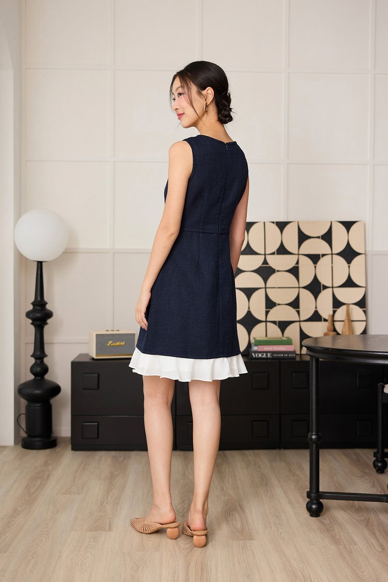 Serena Dress In Navy Tweed