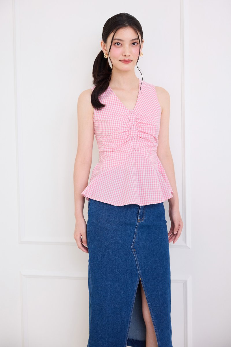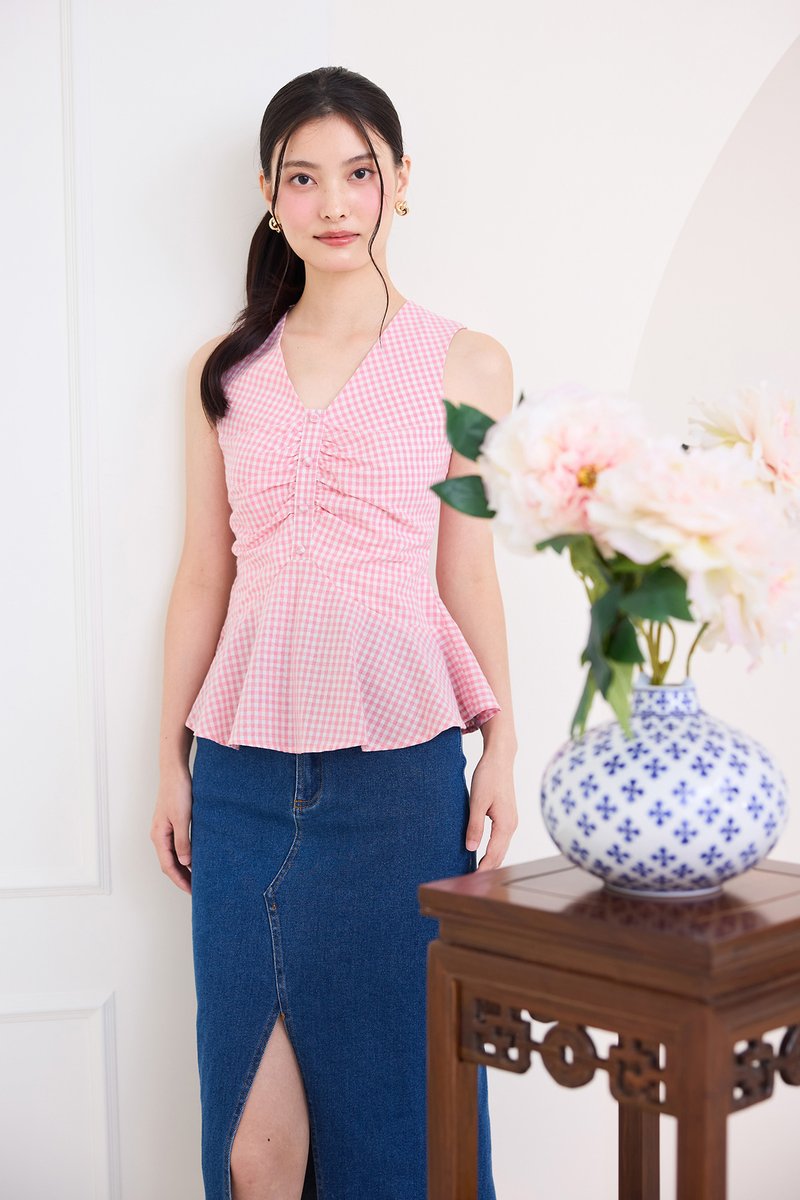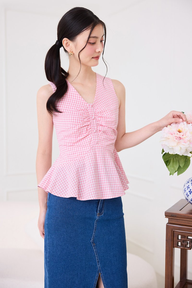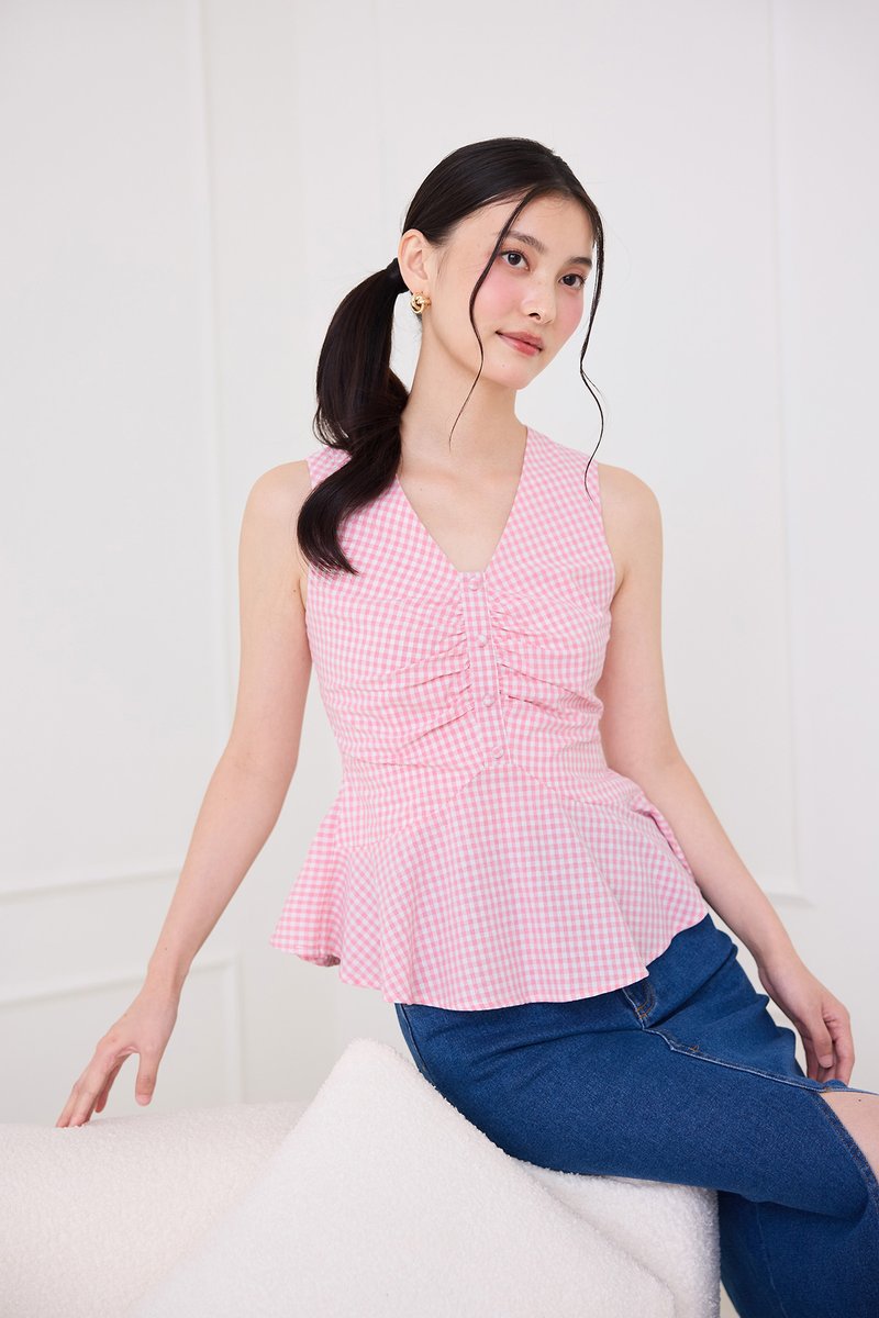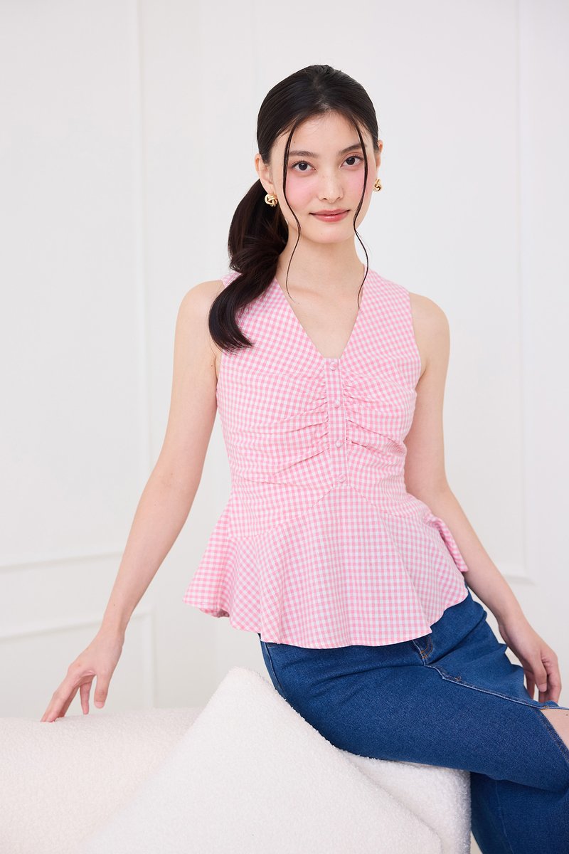Sonja Top In Pink Checks