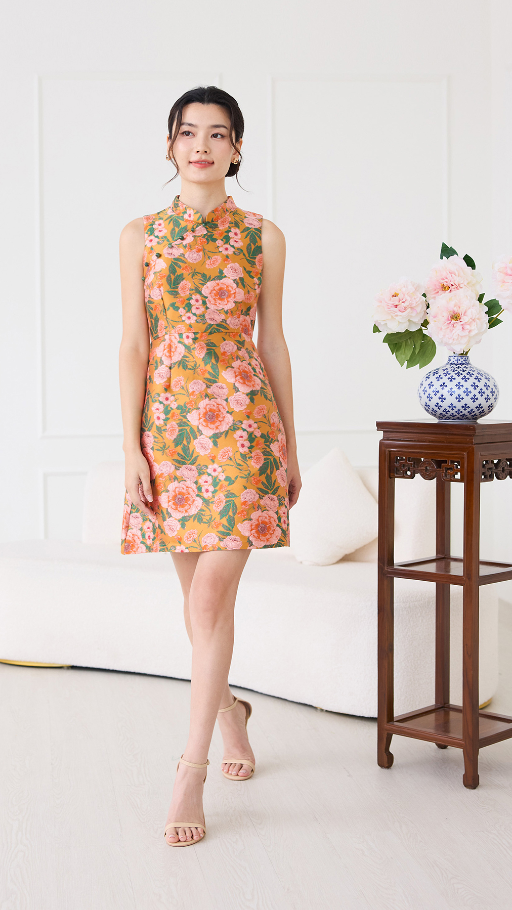 Spring Floret Cheongsam Dress In Festive Blooms