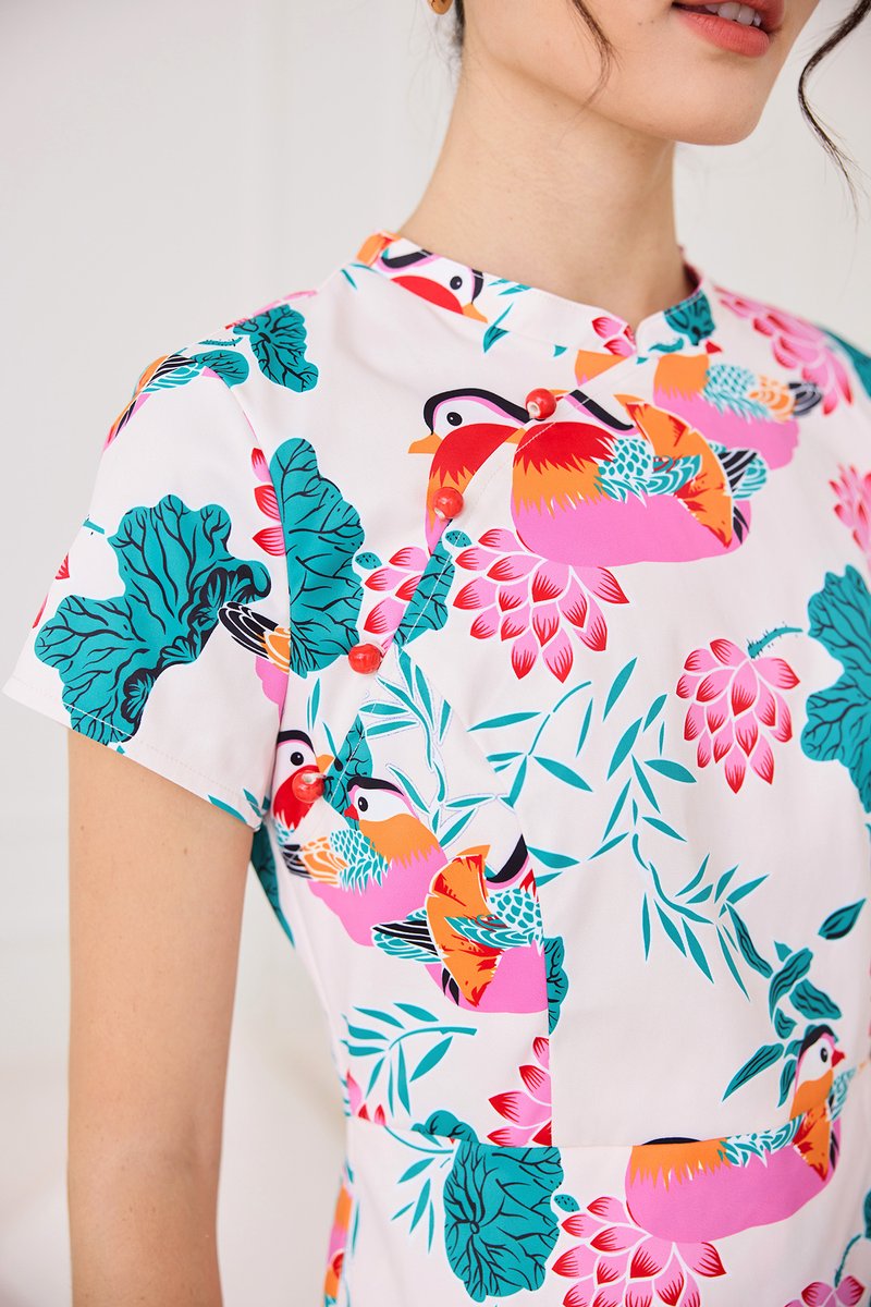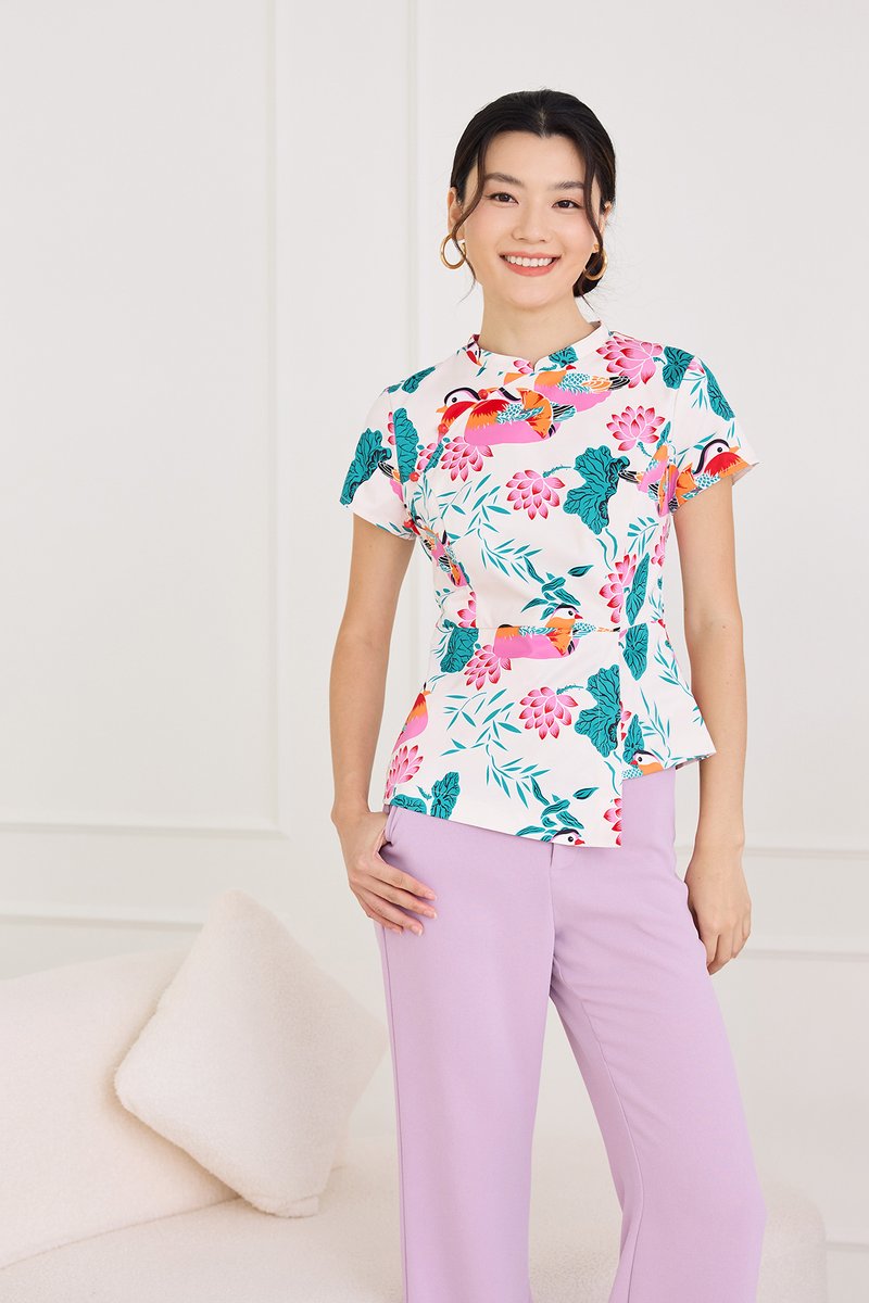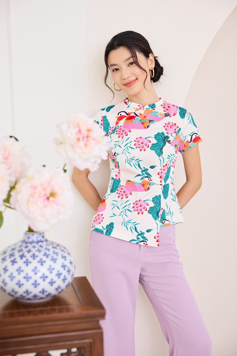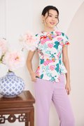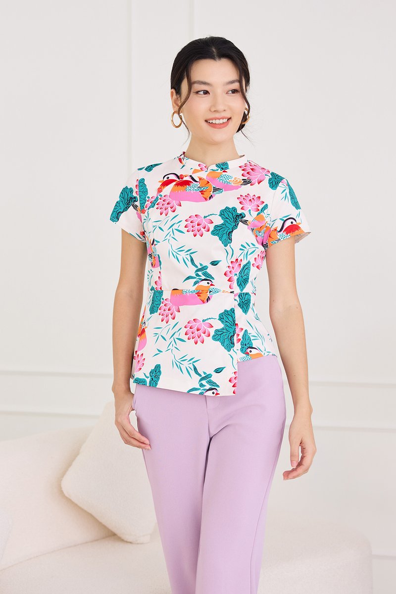 Spring Sights Cheongsam Top In Ivory Prints