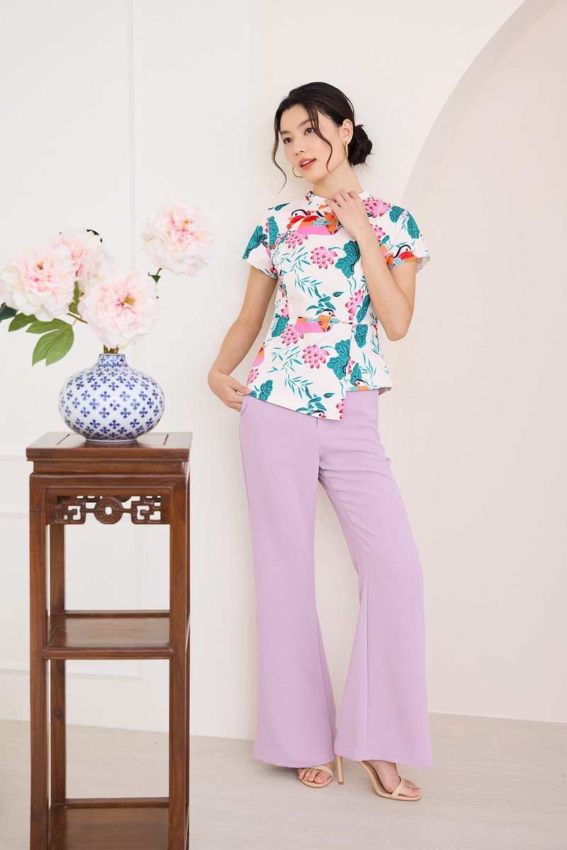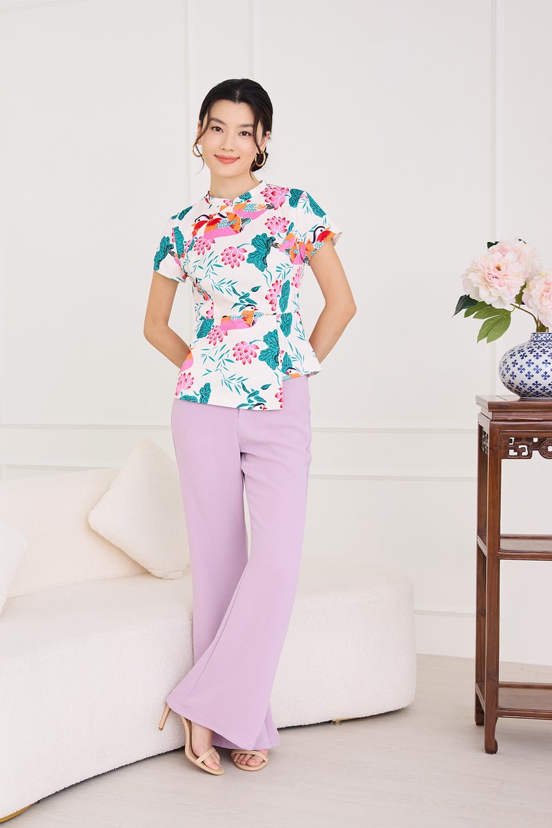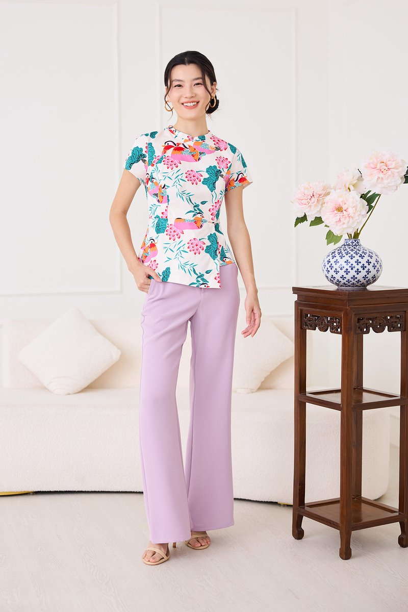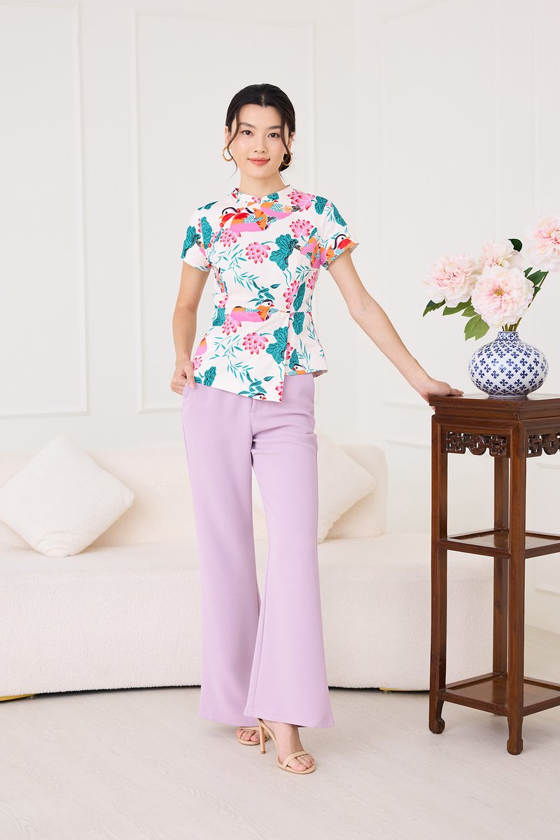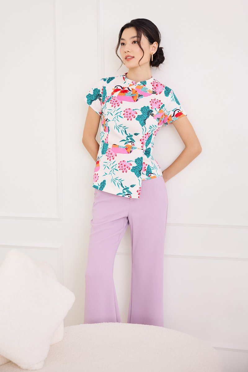 Spring Sights Cheongsam Top In Ivory Prints
