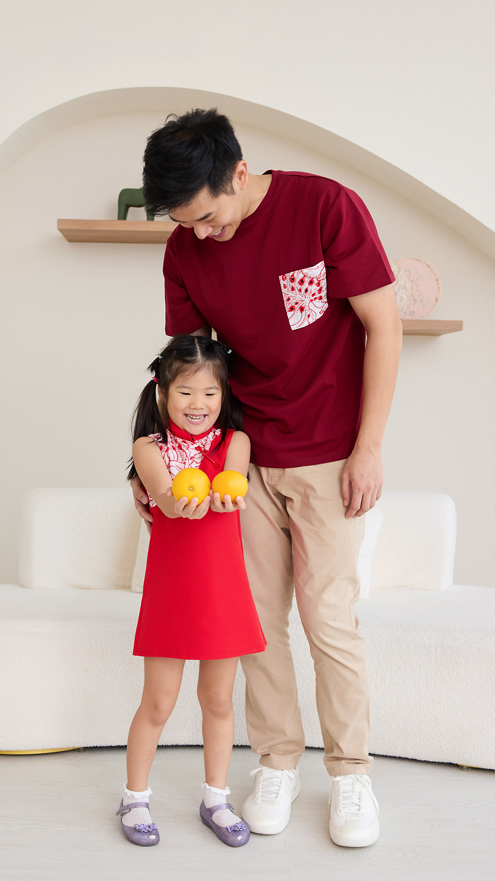Spring Waves Girl Cheongsam Dress In Eyelet Red