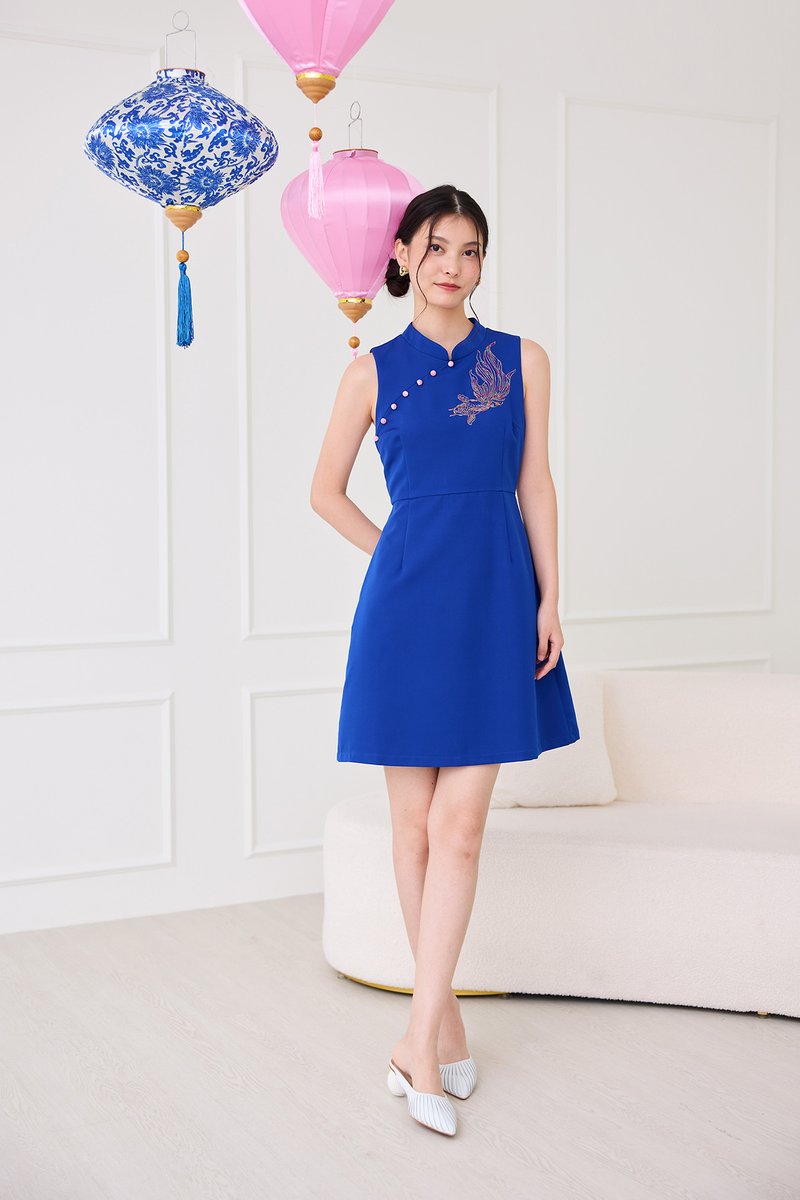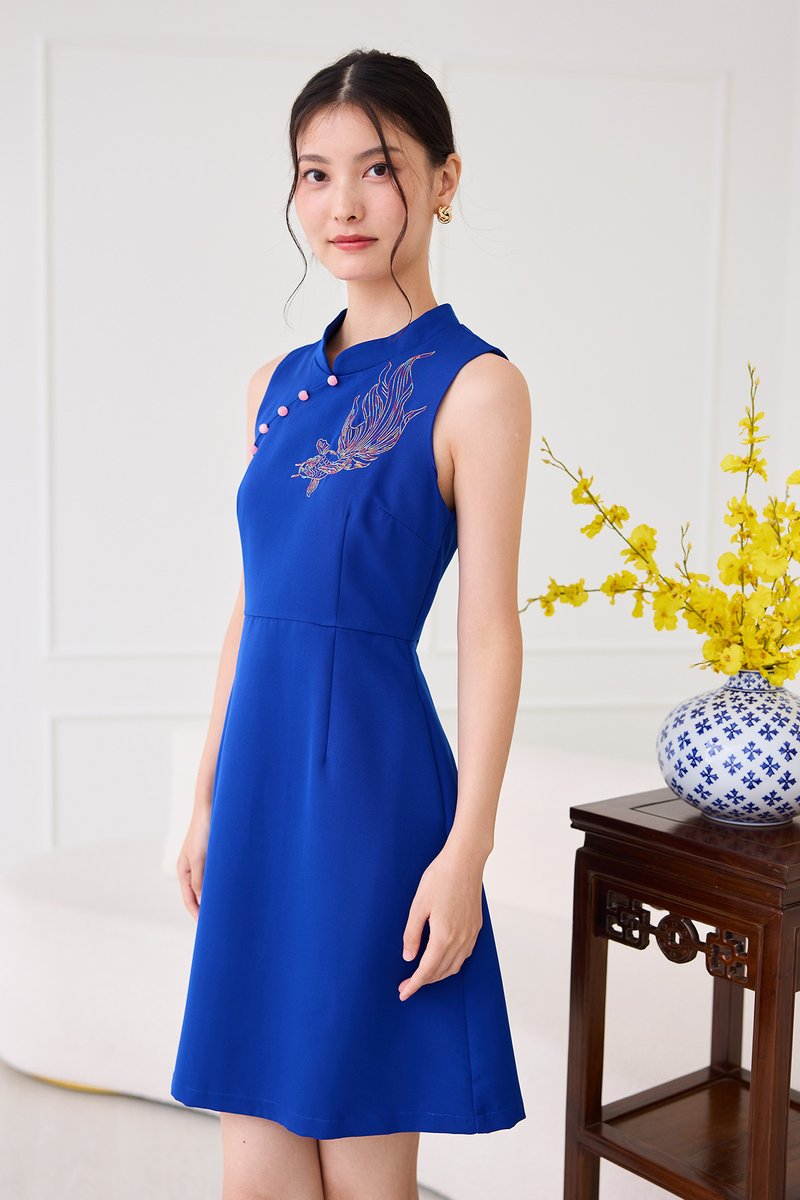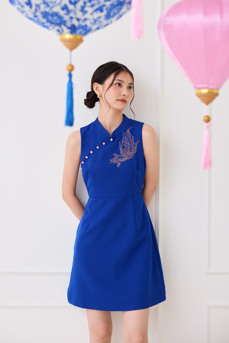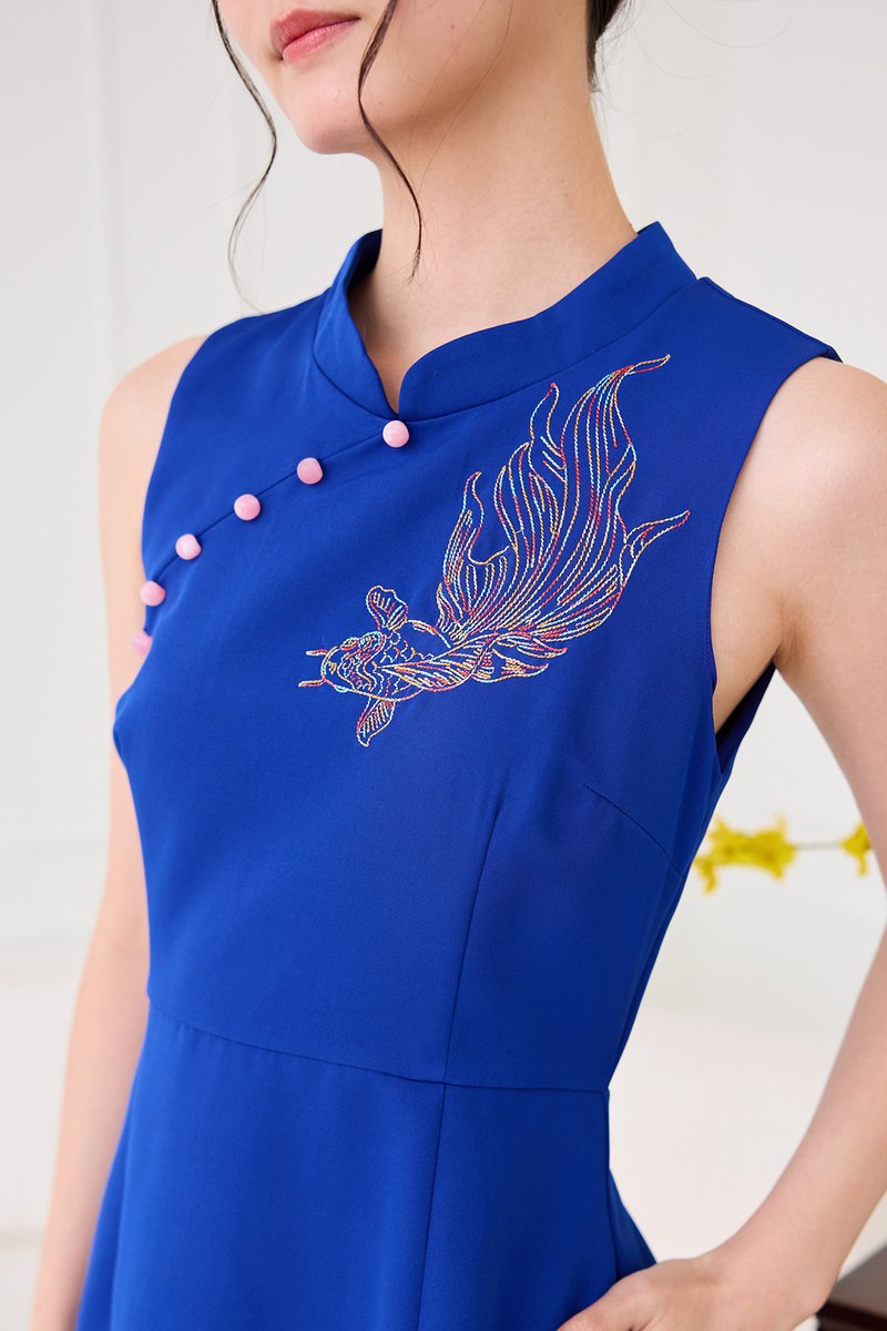 Swimmingly Fun Cheongsam Dress In Cobalt Blue