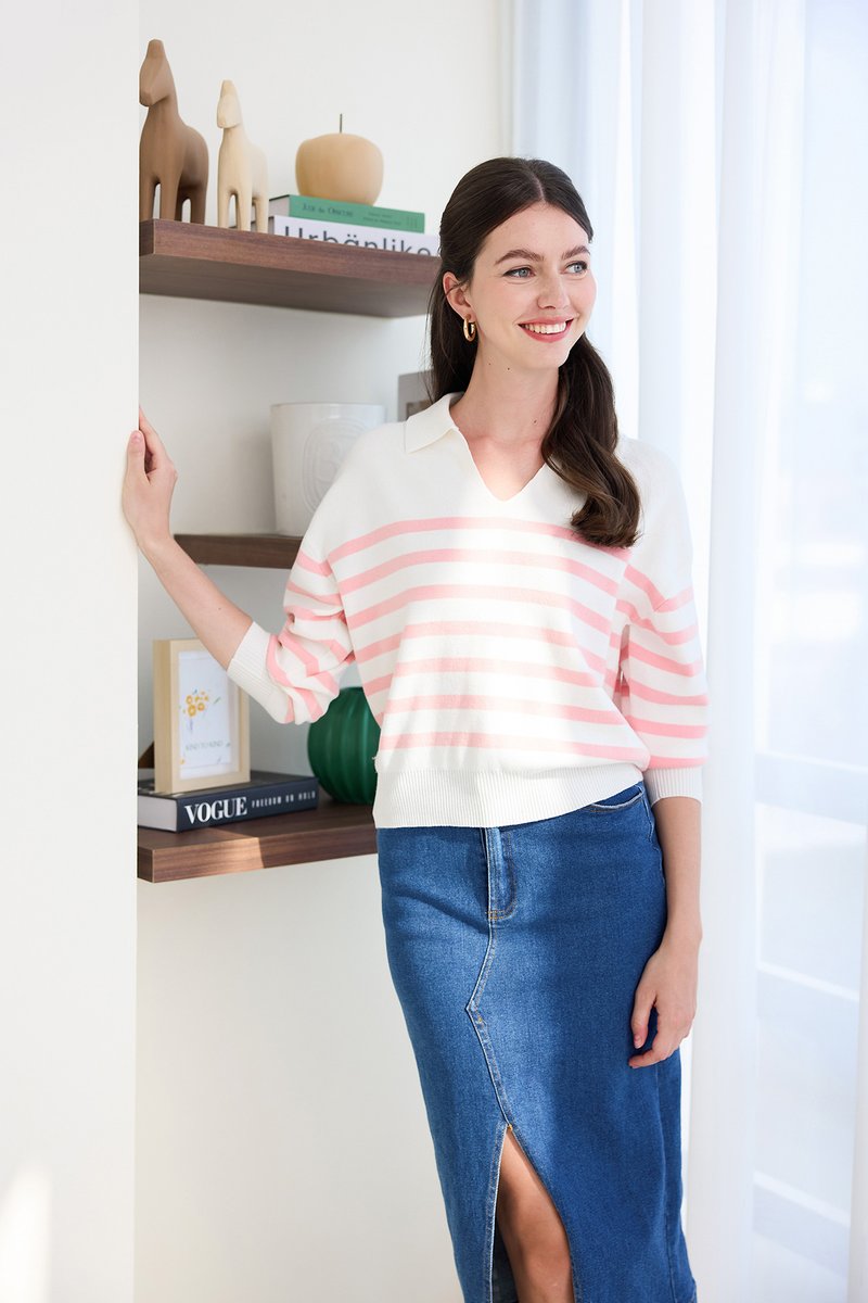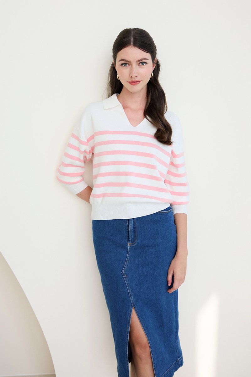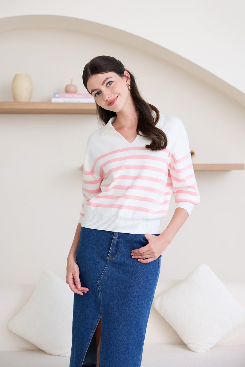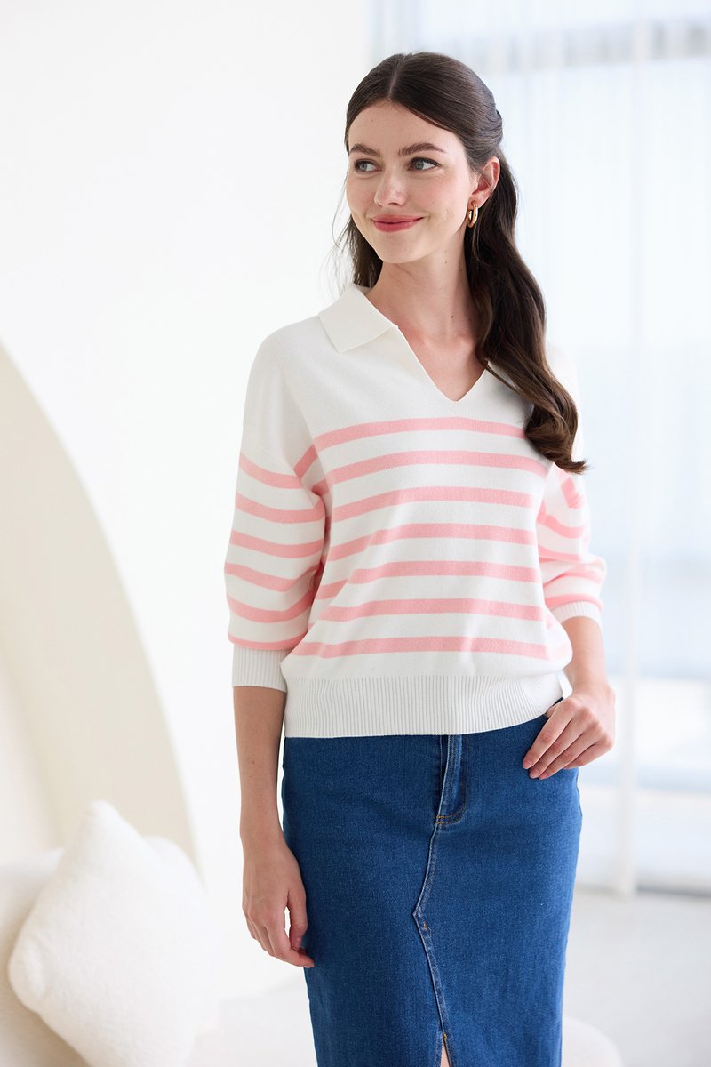 Teddy Pullover In Pink Stripes